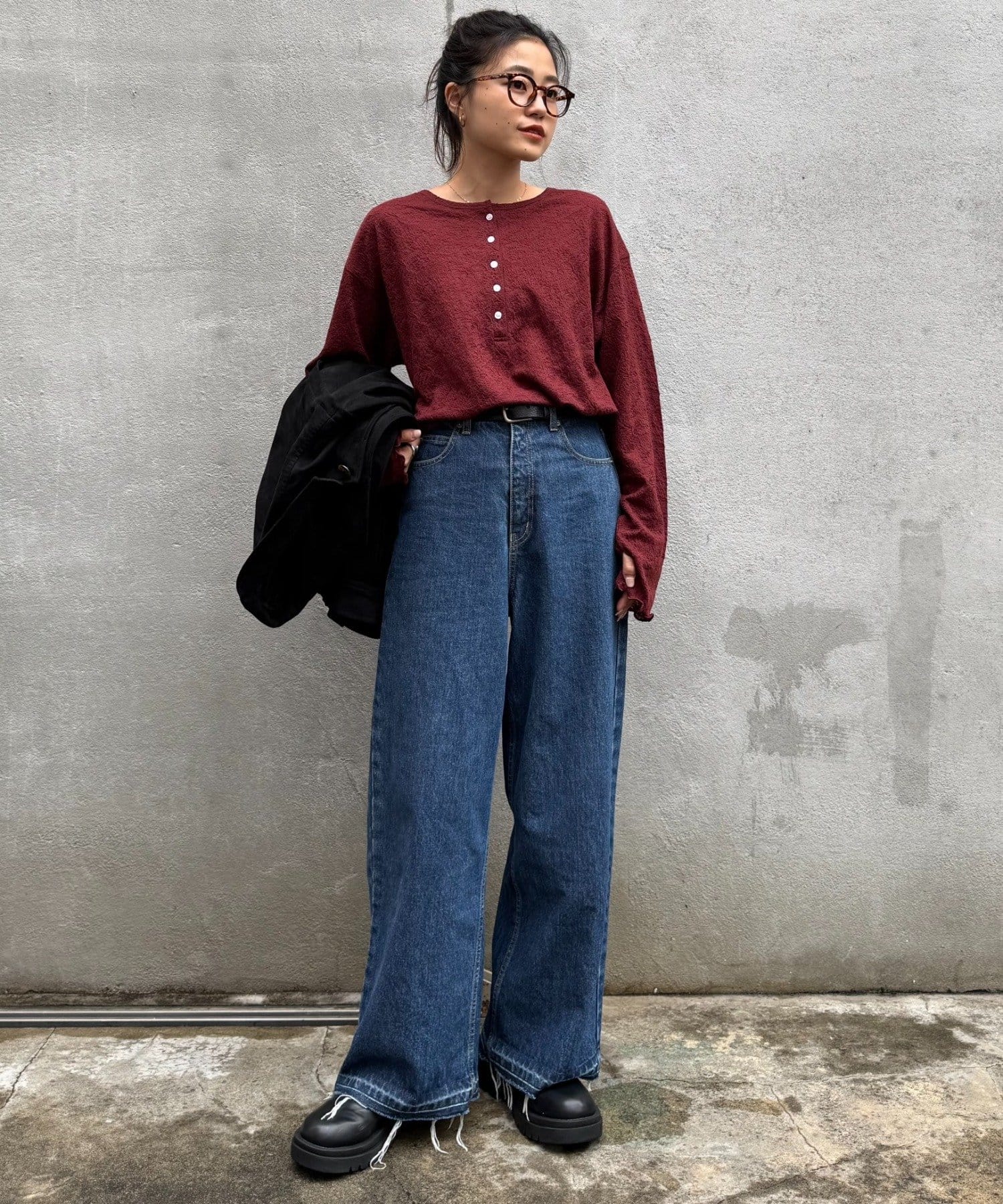 ボタンを開けて抜け感を演出したりなど、着回せるのも嬉しいポイント♩