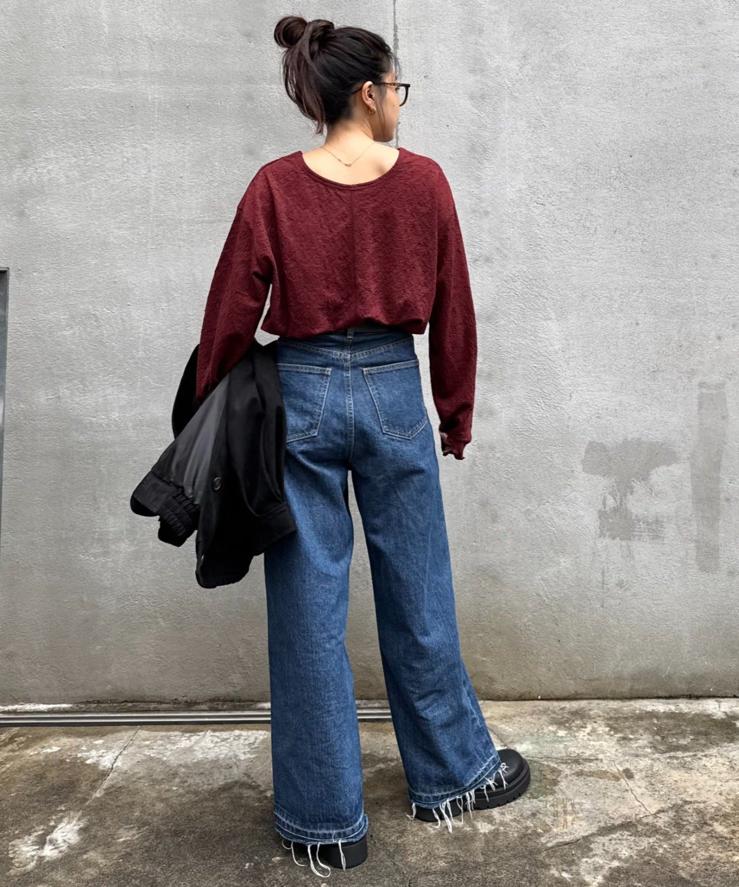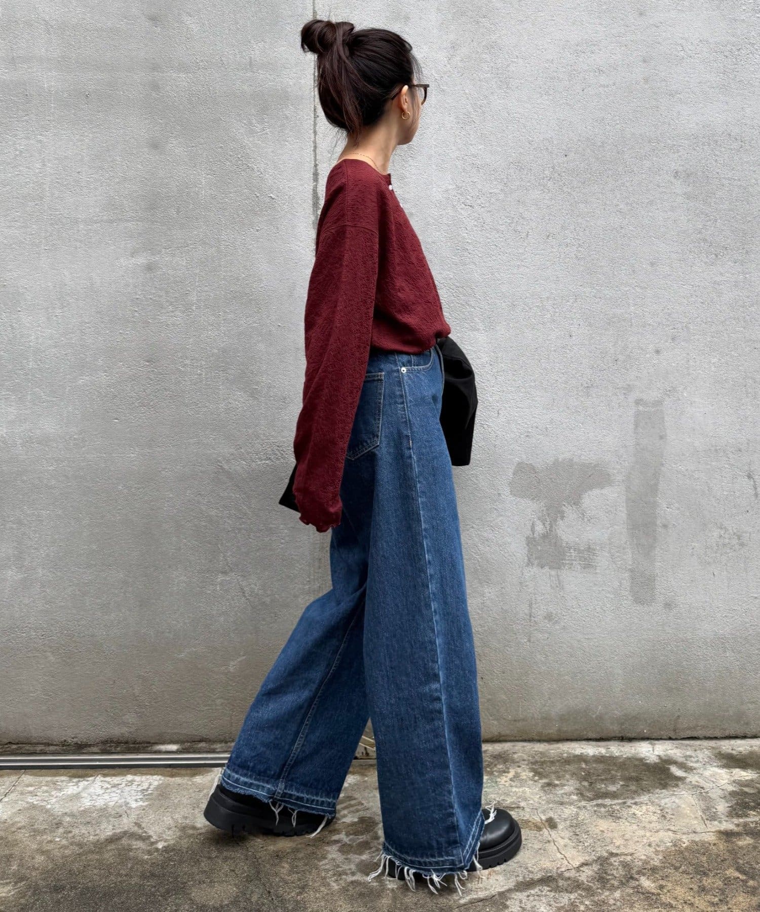 メローな裾が可愛いのでそのままでデニムやフレアパンツと合わせるのも映えます!