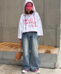 ゆるっとしたシルエットと、目を引くロゴがポイント。