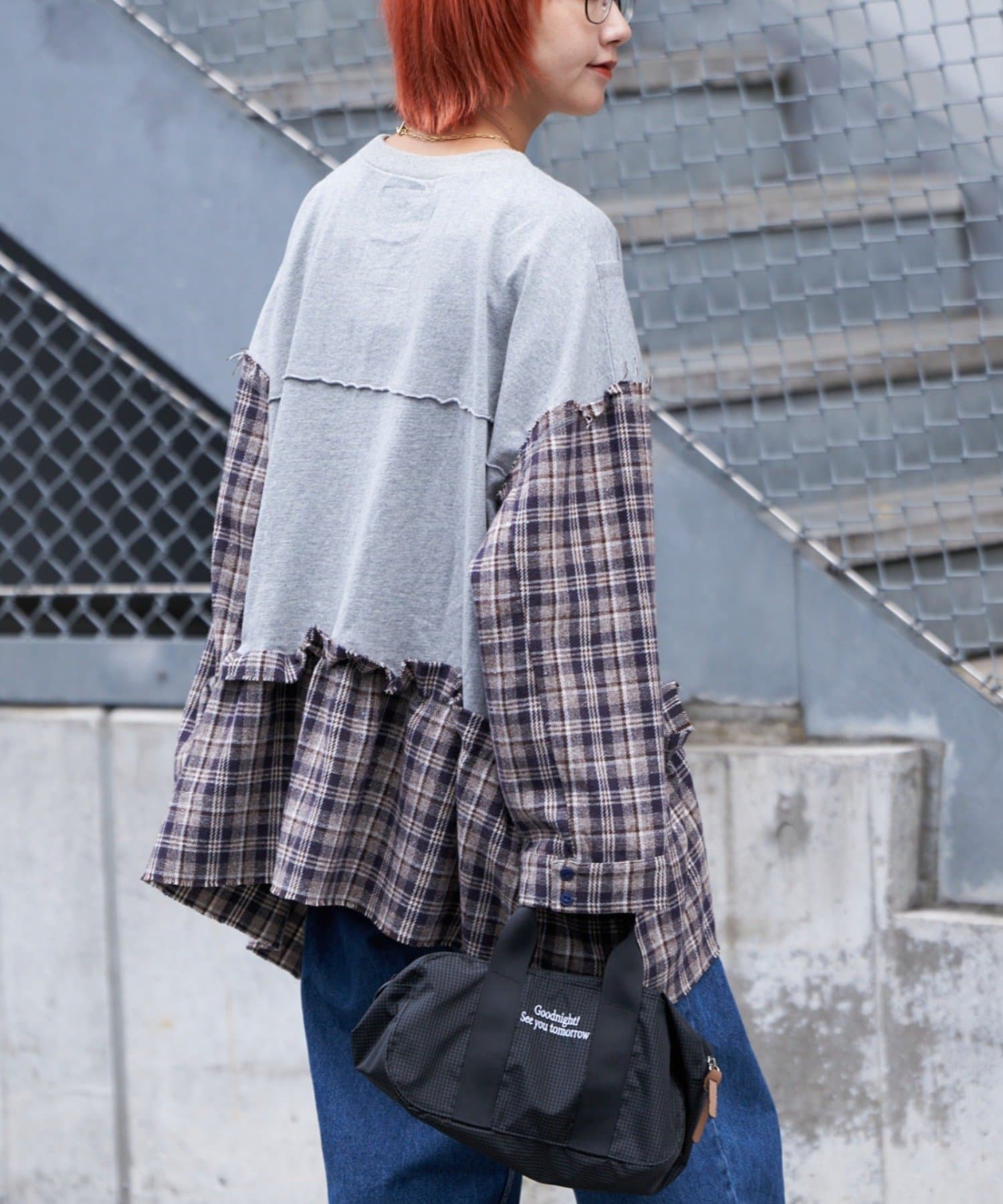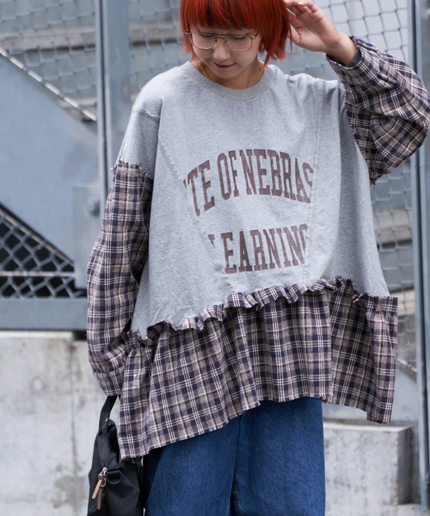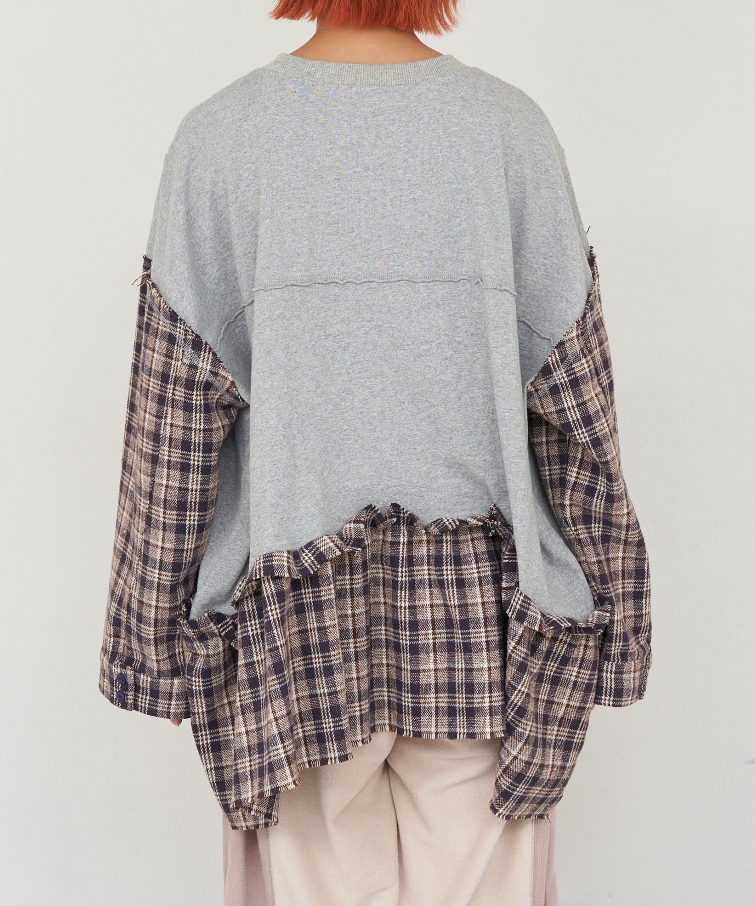【etsinta/エシンタ】リメイクチェックフリルtee