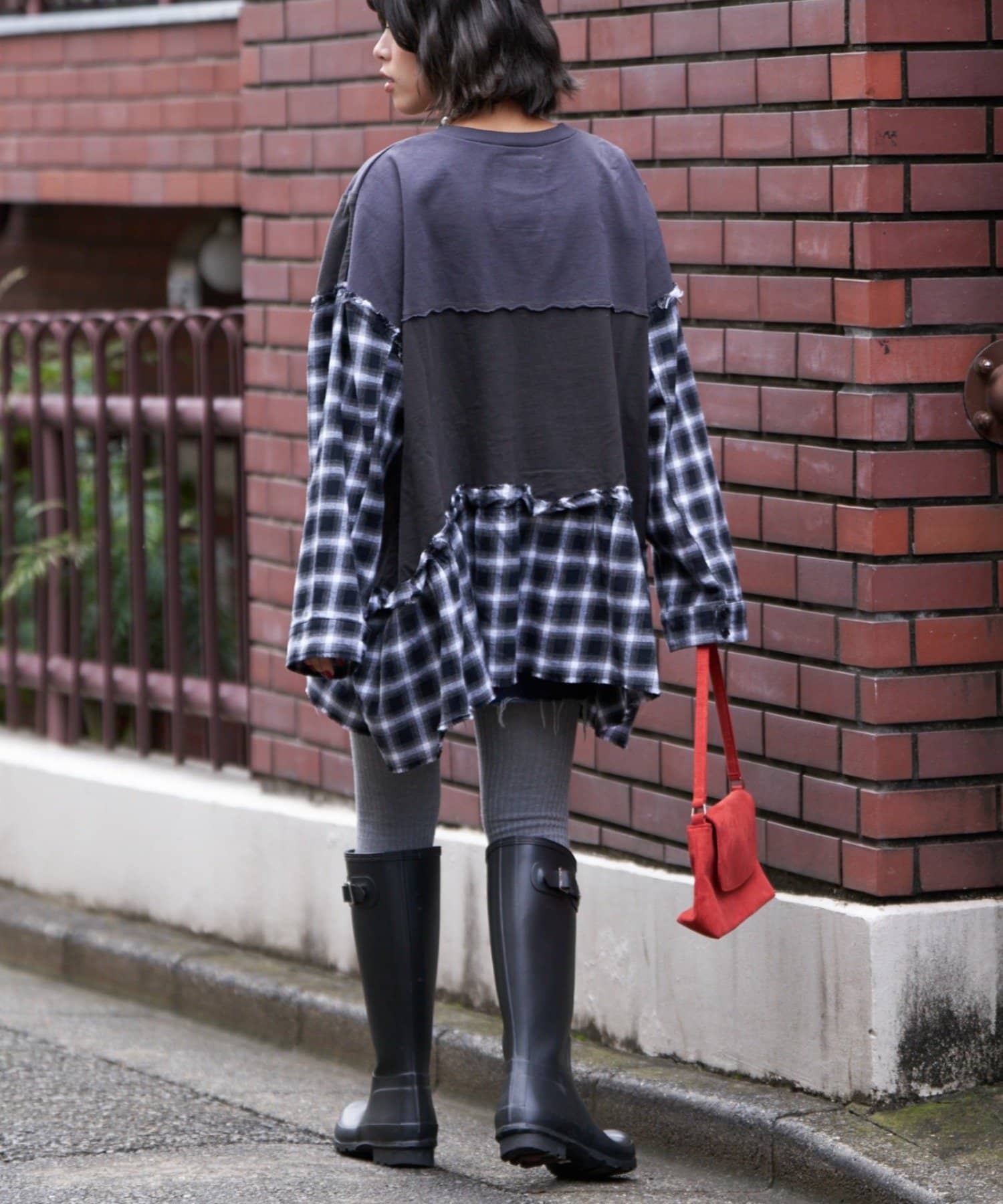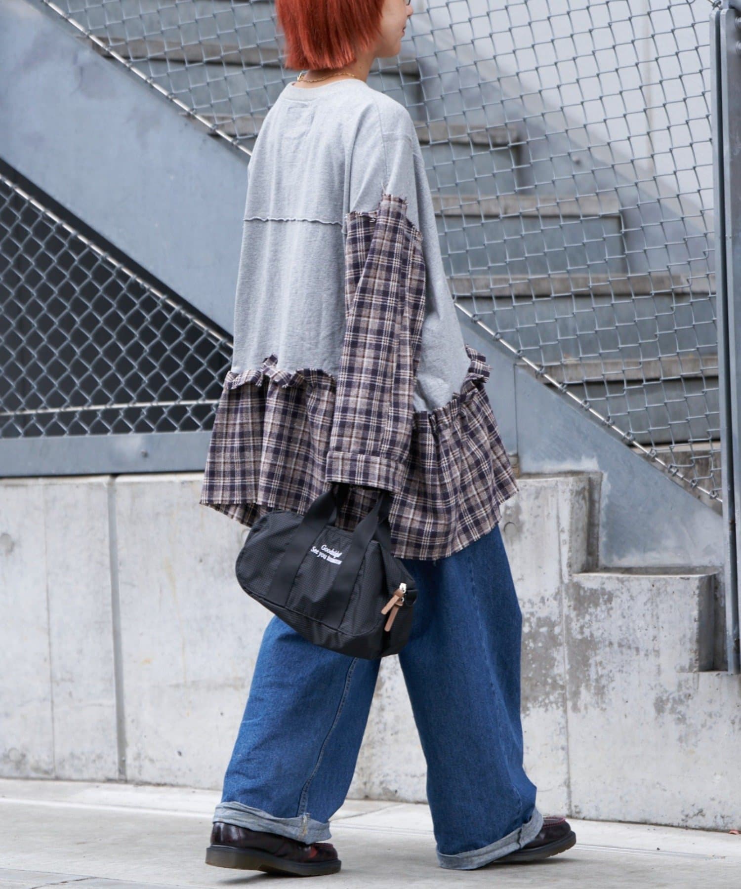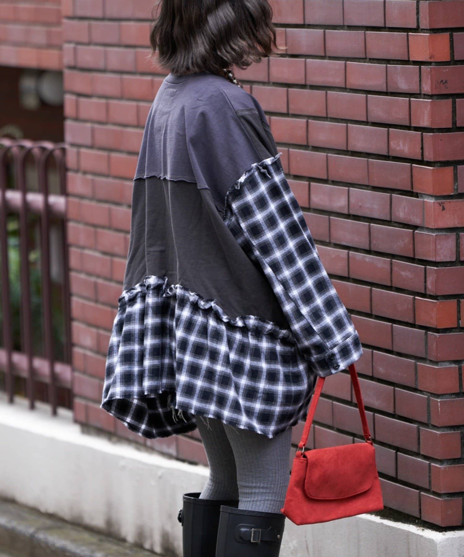 【etsinta/エシンタ】リメイクチェックフリルtee