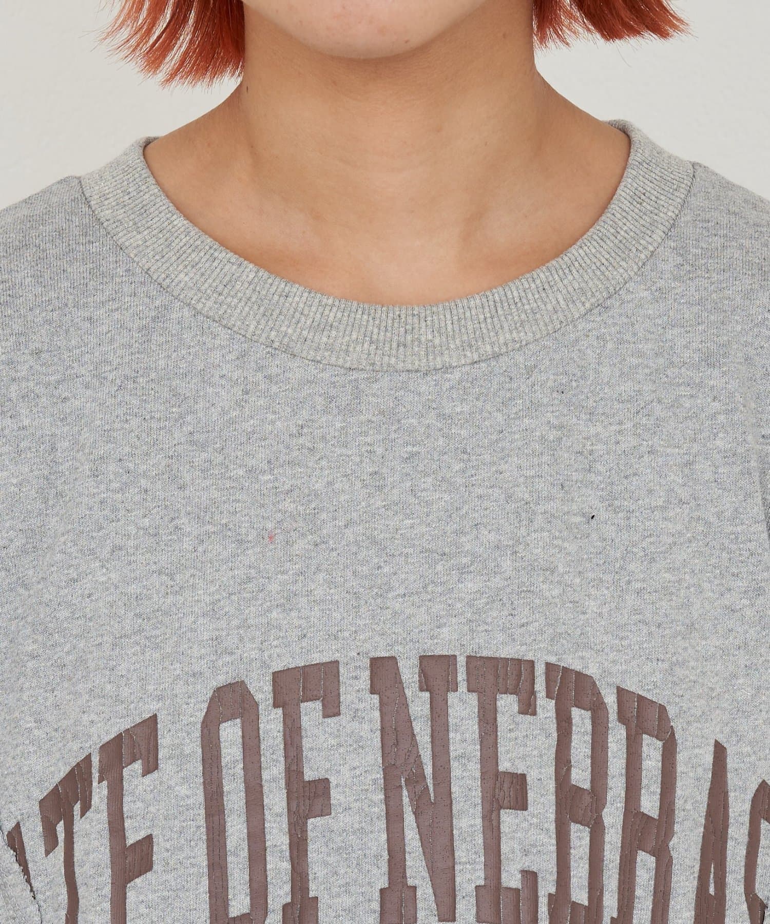 ビンテージ感のある風合いと、大胆なリメイクが光るデザイントップス。