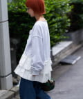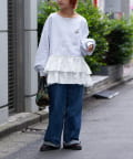 カジュアルなスウェットに、ふんわりと広がるフリルの切り替えがドッキングされた、遊び心あふれるデザイントップスです。