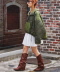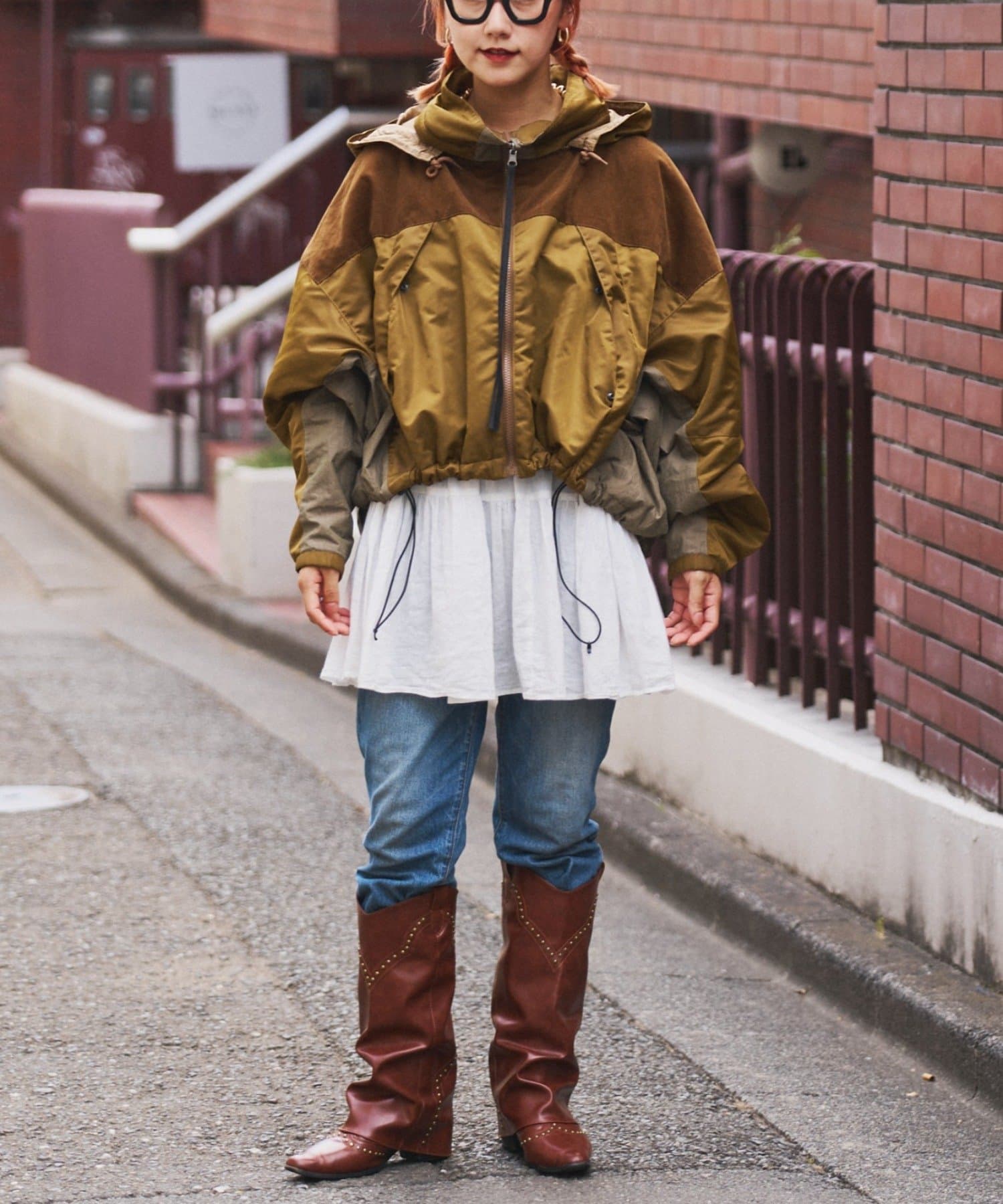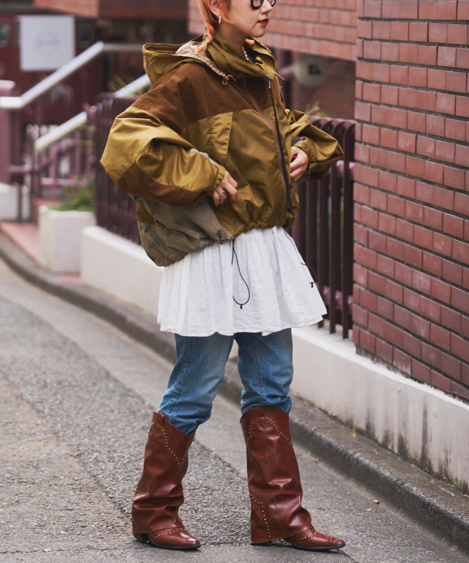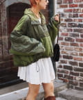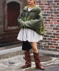 ワンピースやスカートと合わせたミックススタイルで、女性らしさをプラス。