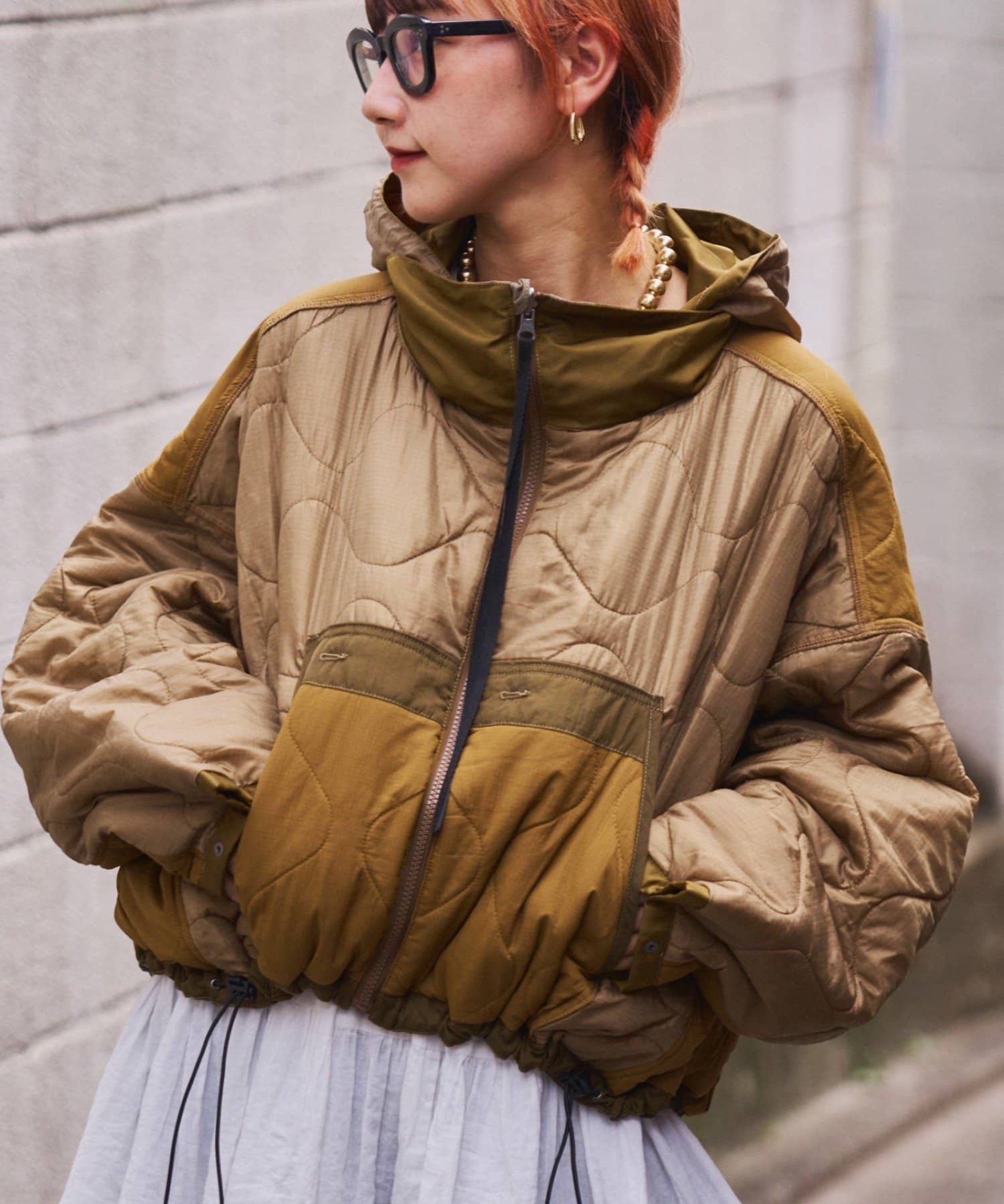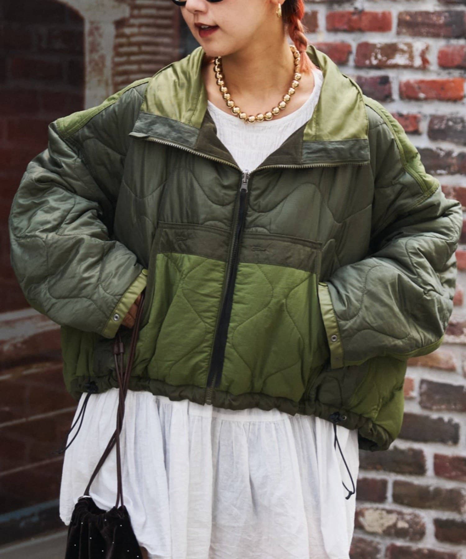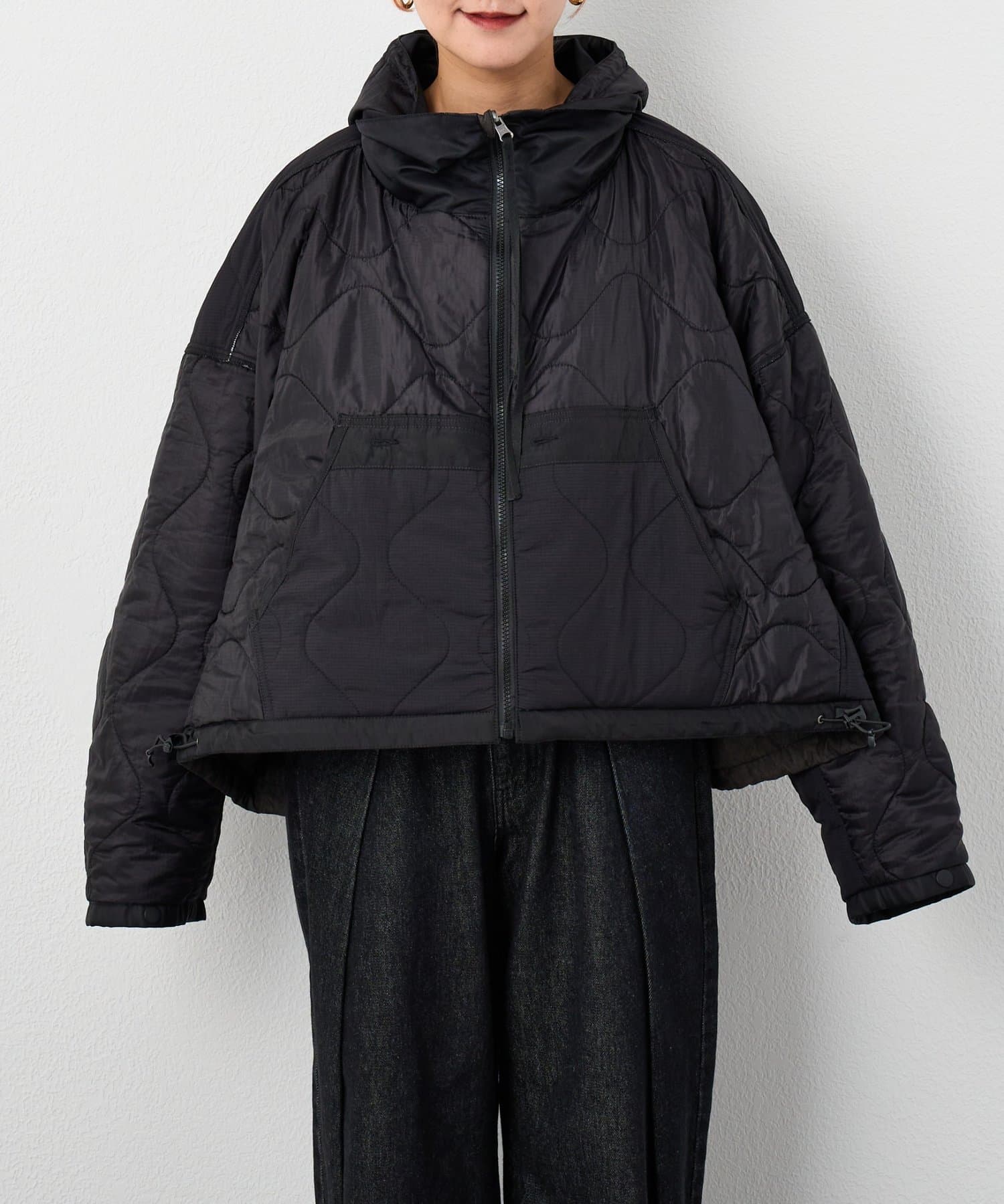 目を惹くキルティングデザインと、短めの丈がバランスの良いシルエットを演出。