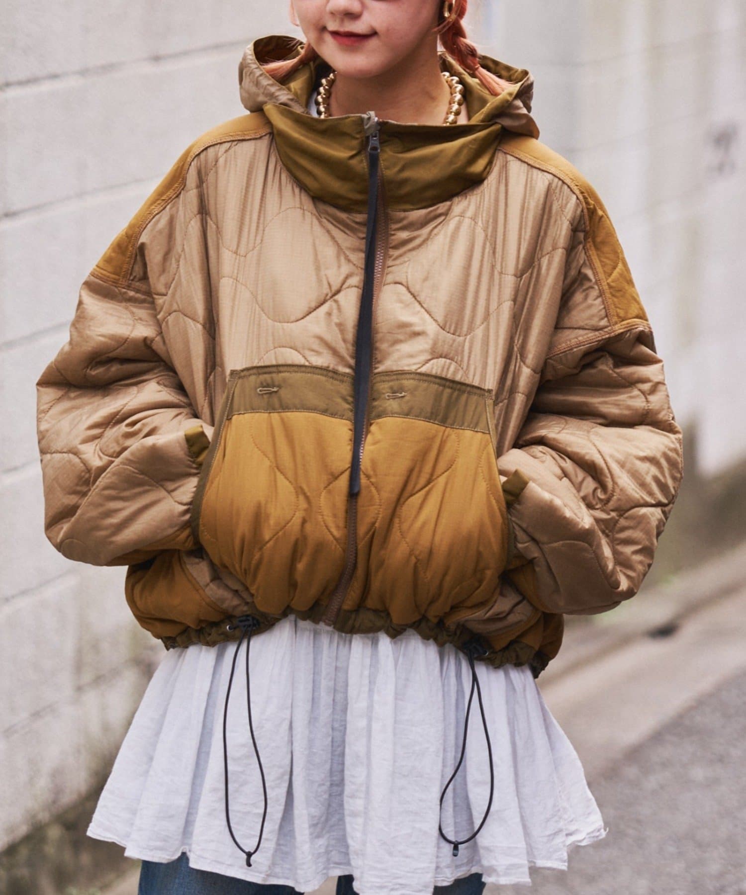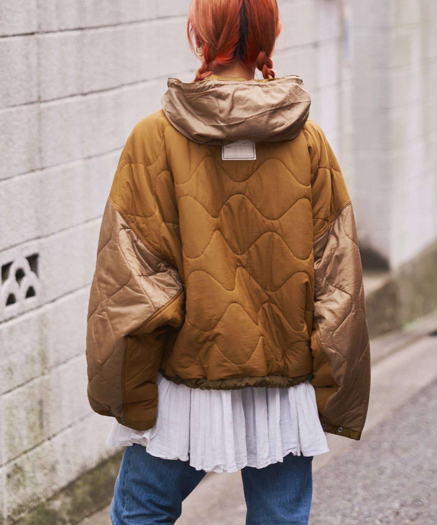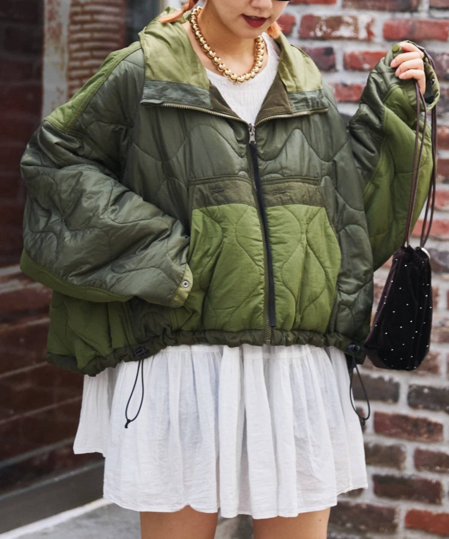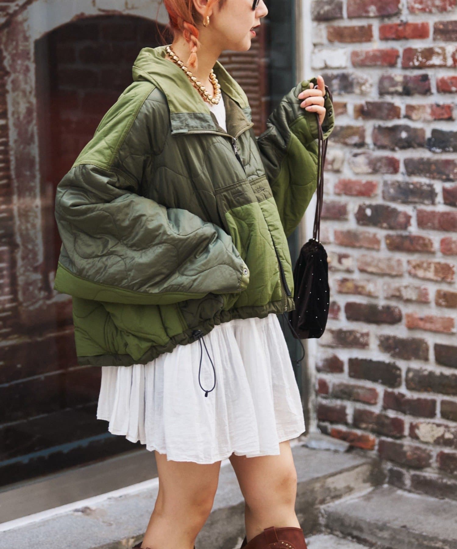 目を惹くキルティングデザインと、短めの丈がバランスの良いシルエットを演出。