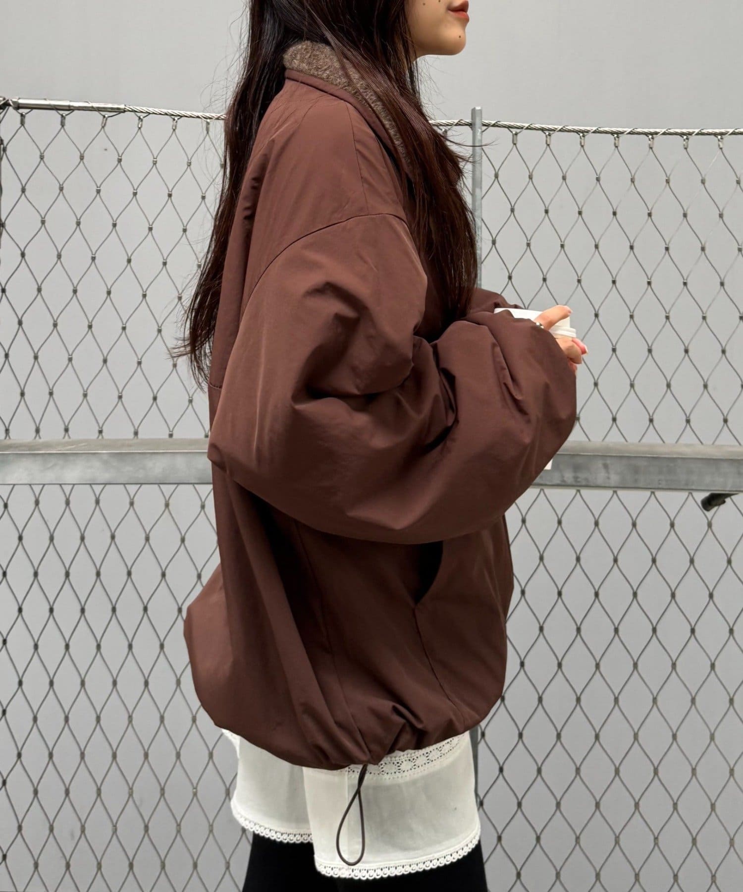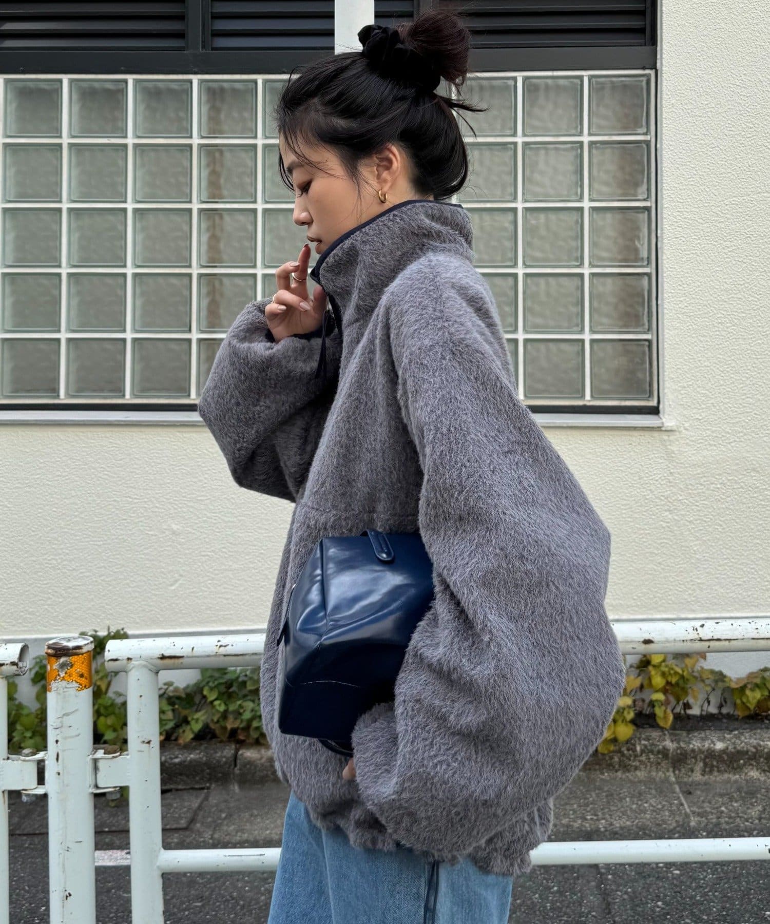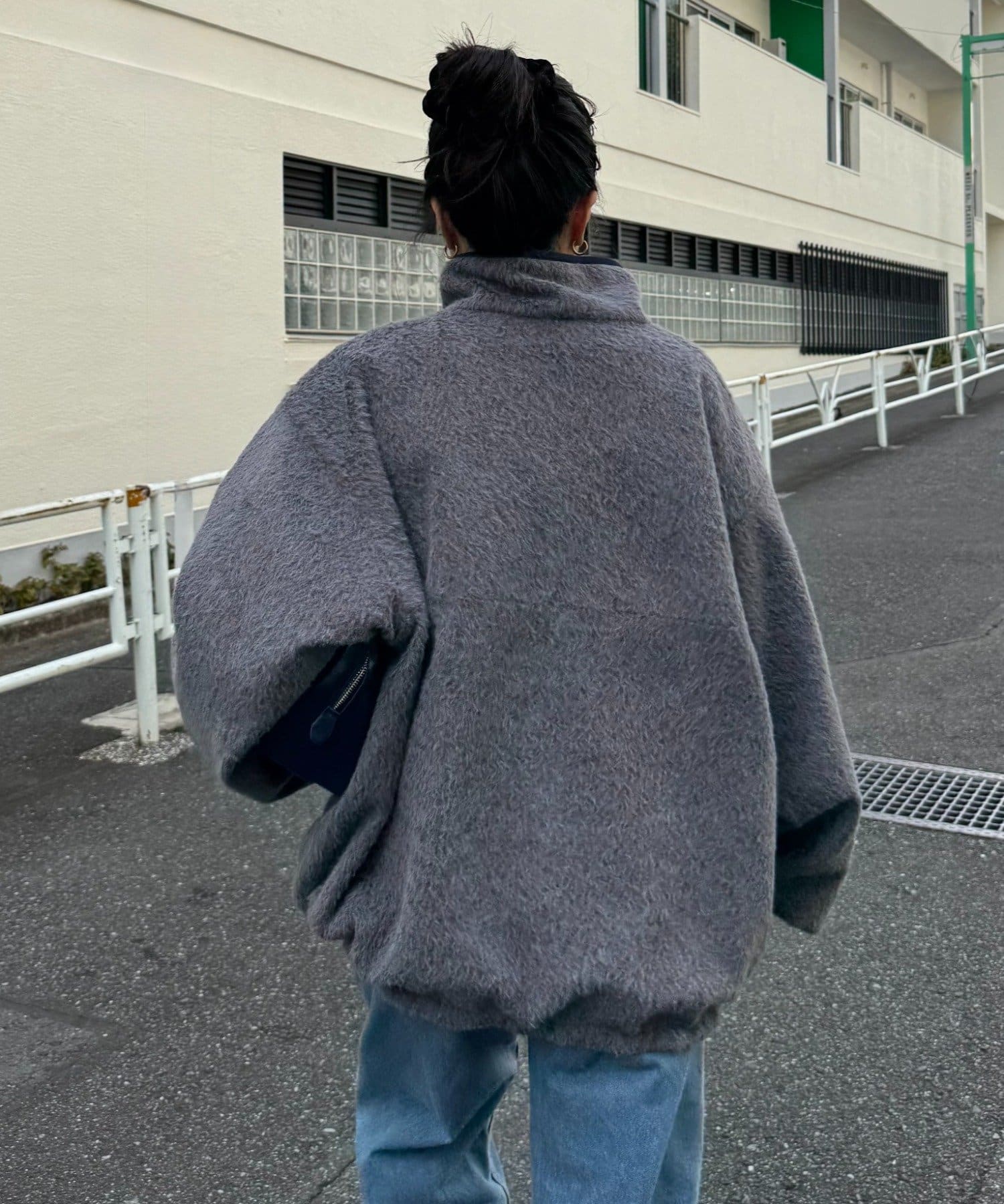 ナイロン面を表にしてストリートっぽく、シャギー面を表にしてふわっと暖かみのある印象に。
