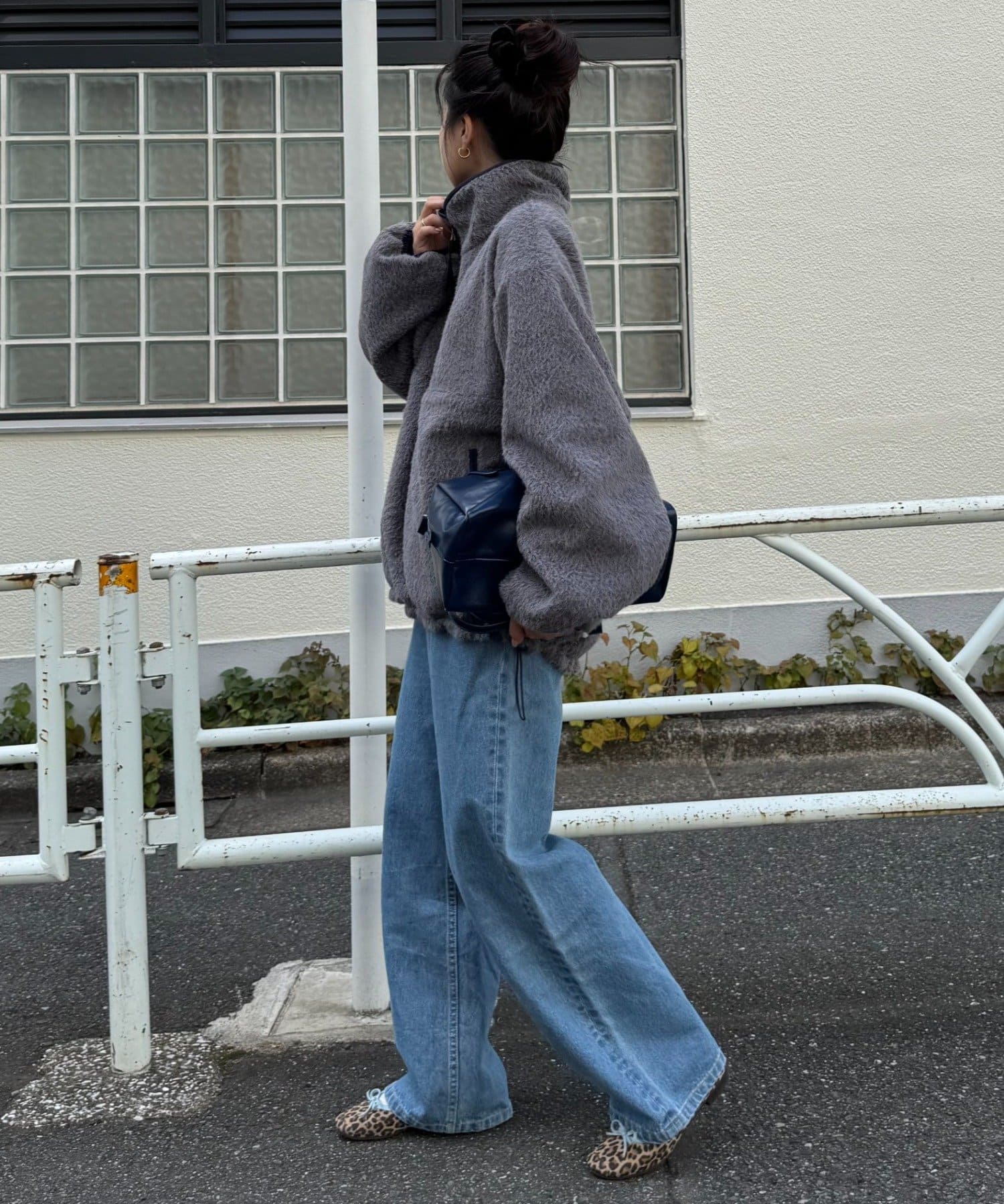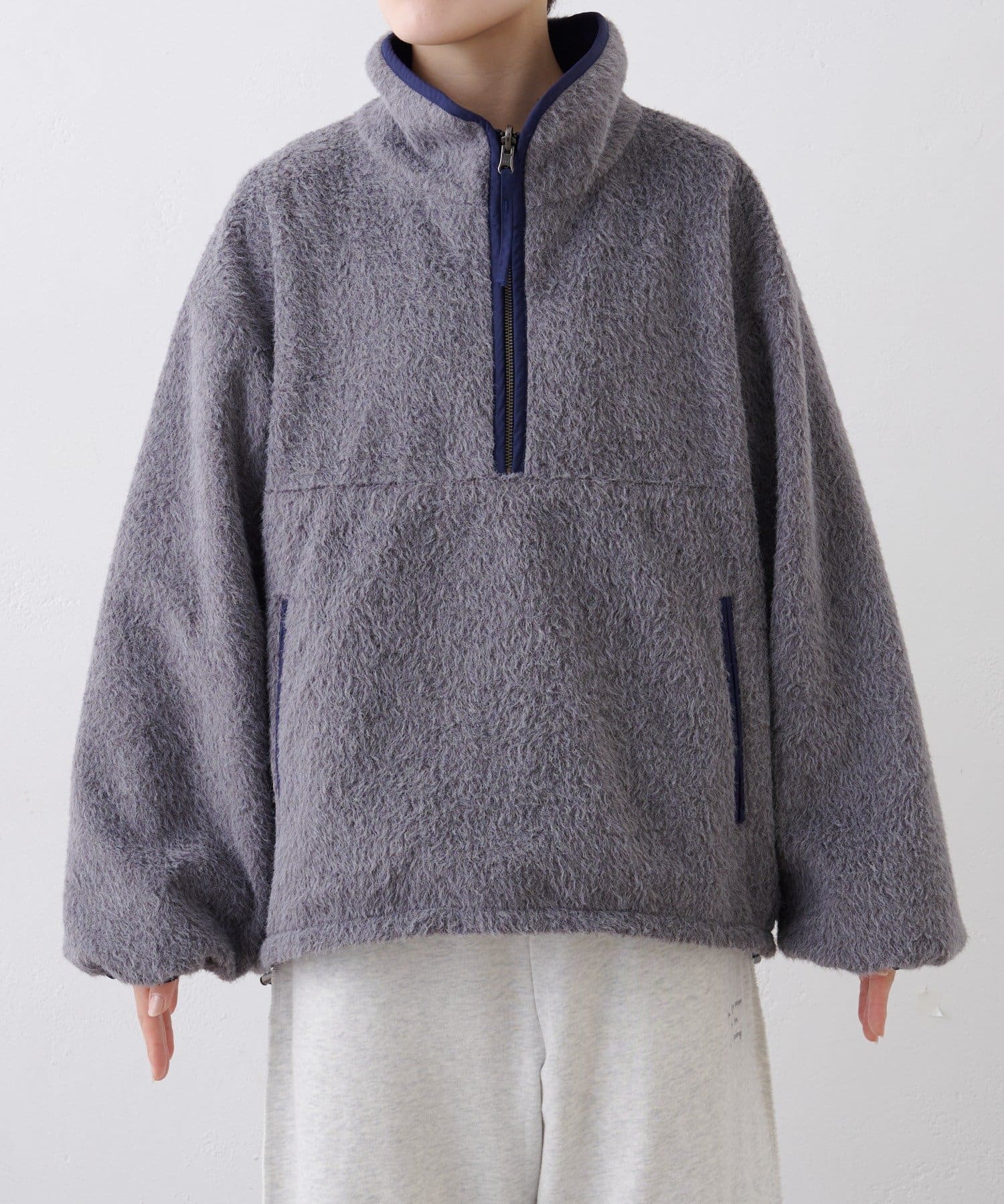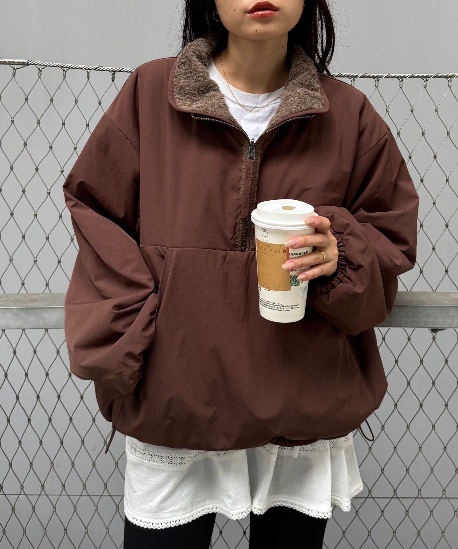 ナイロン面を表にしてストリートっぽく、シャギー面を表にしてふわっと暖かみのある印象に。