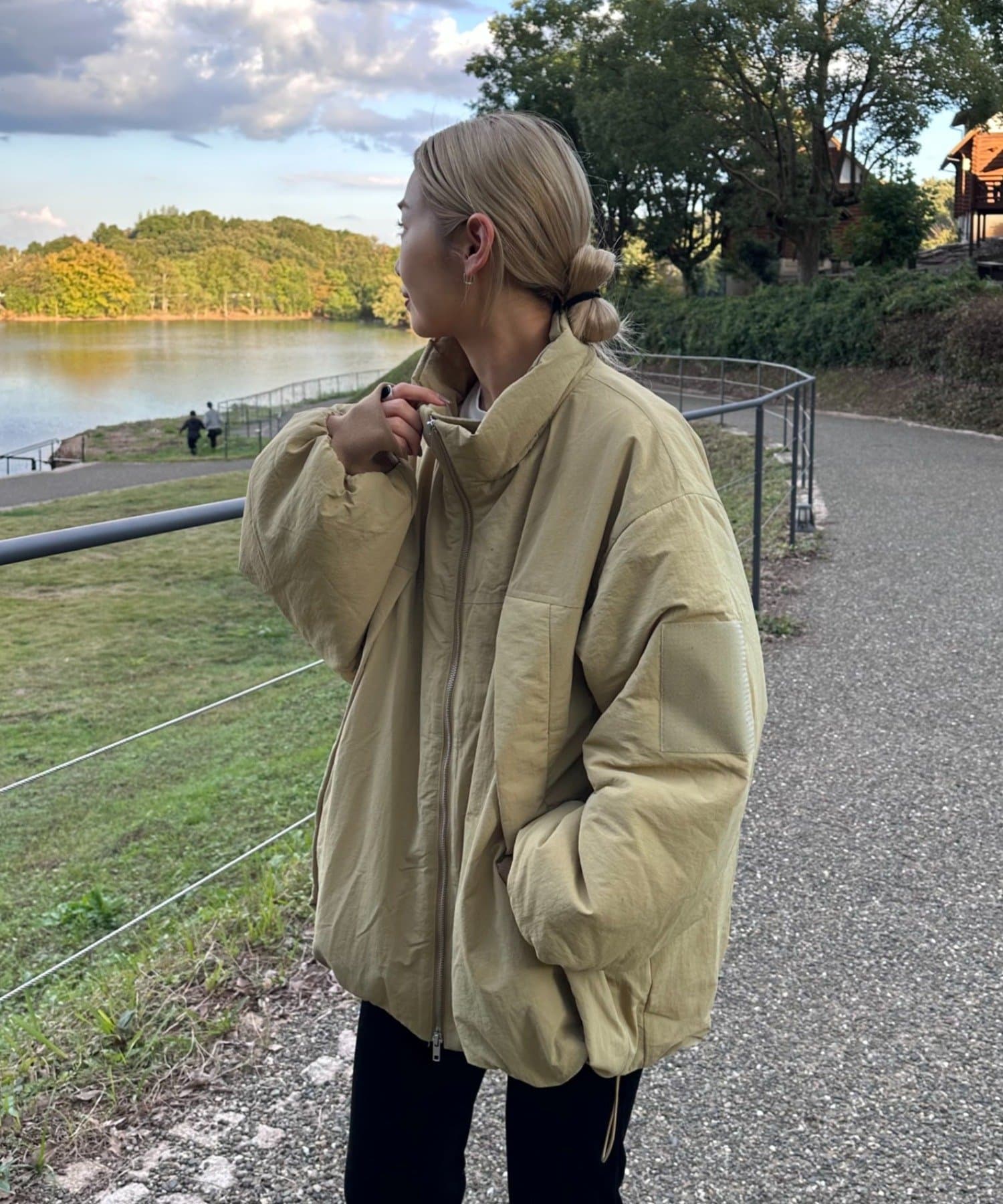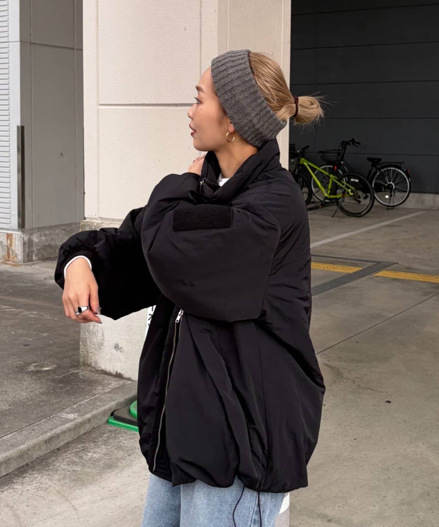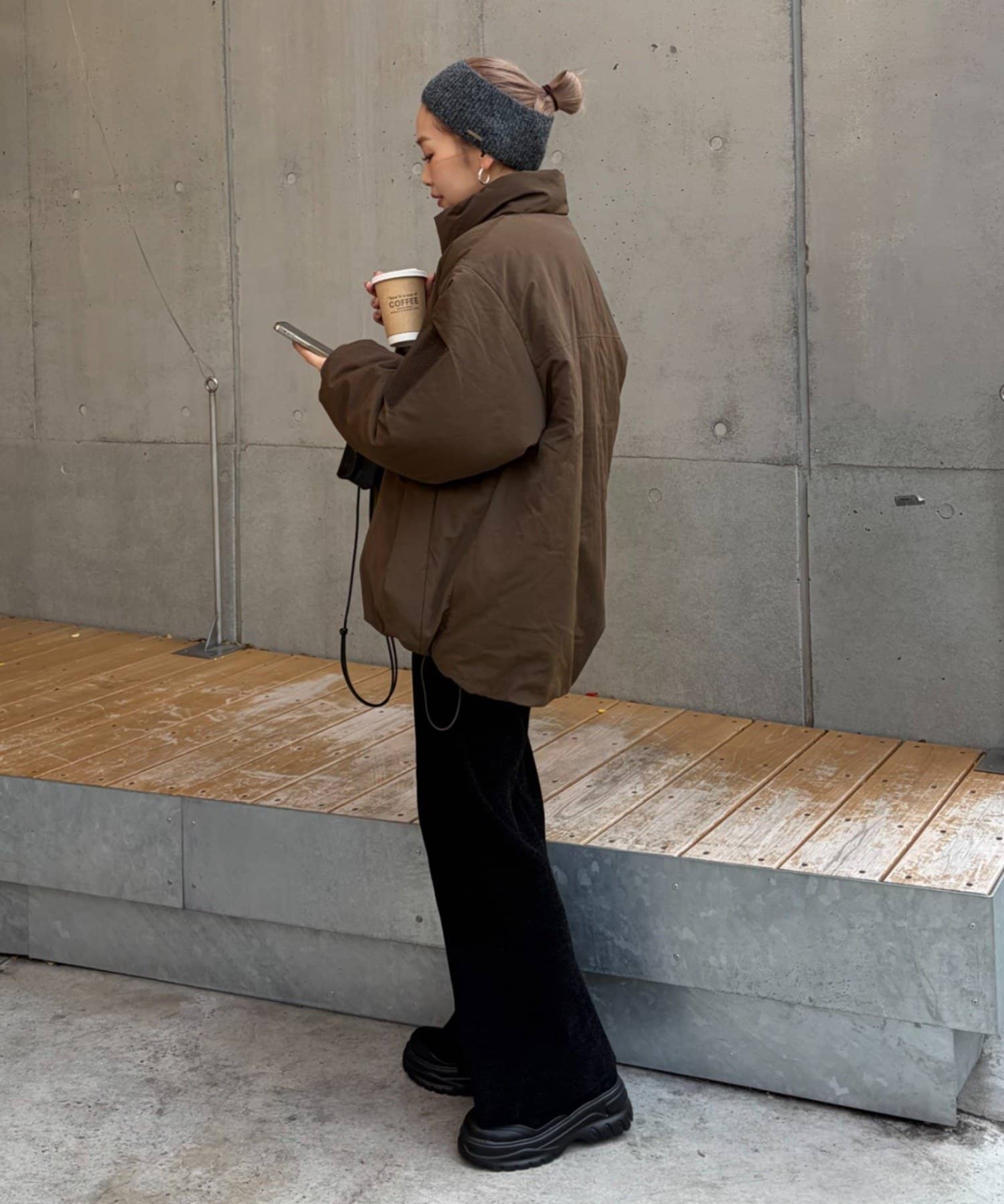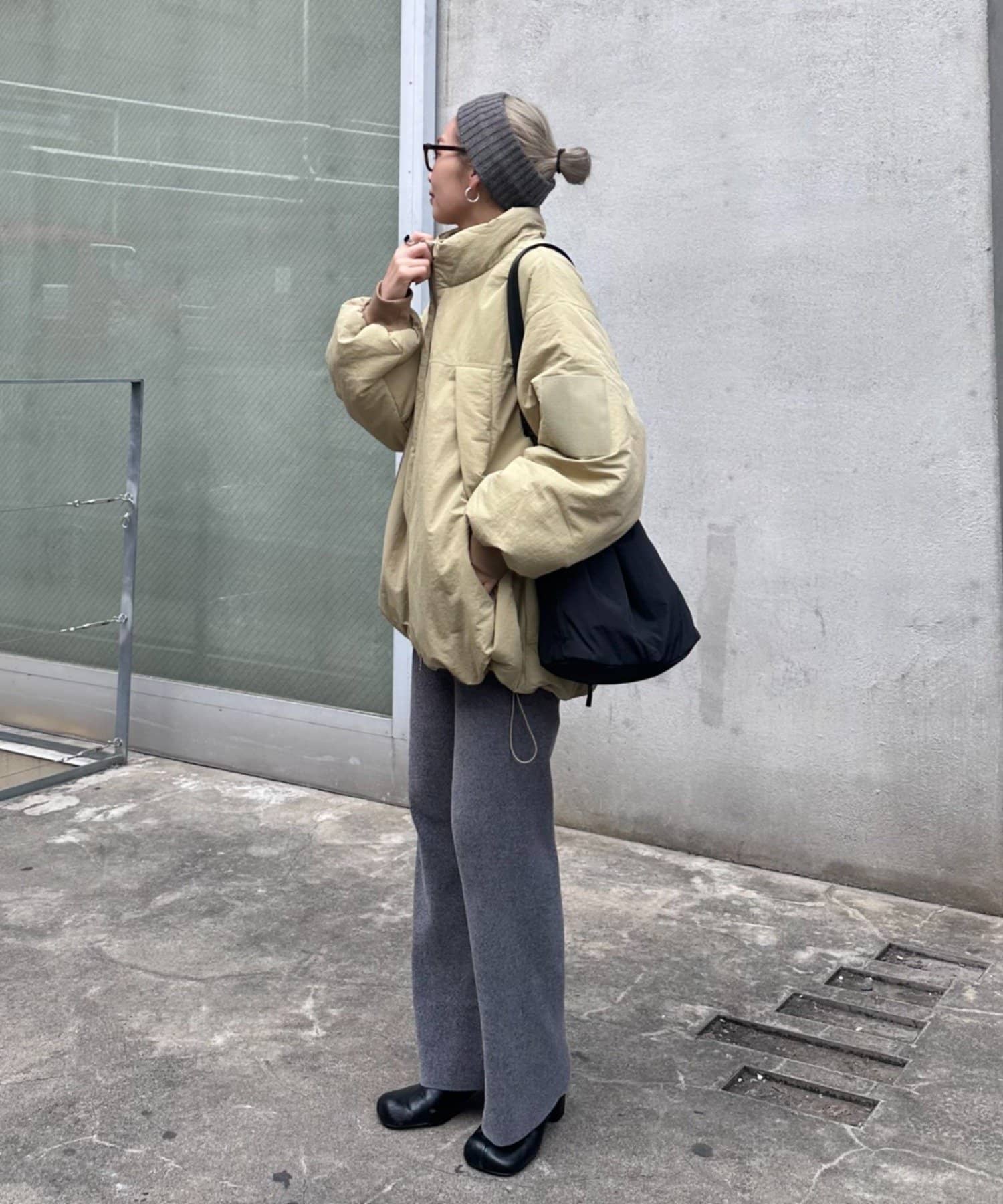 コーデのバランスを崩さずスタイリングできる中綿アウターを実現しました◎