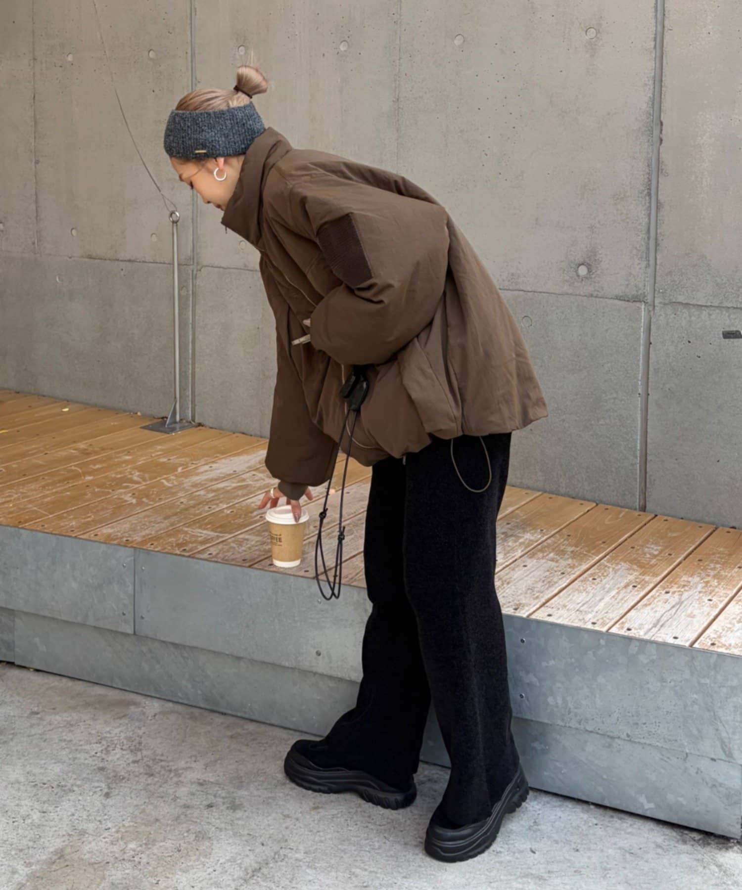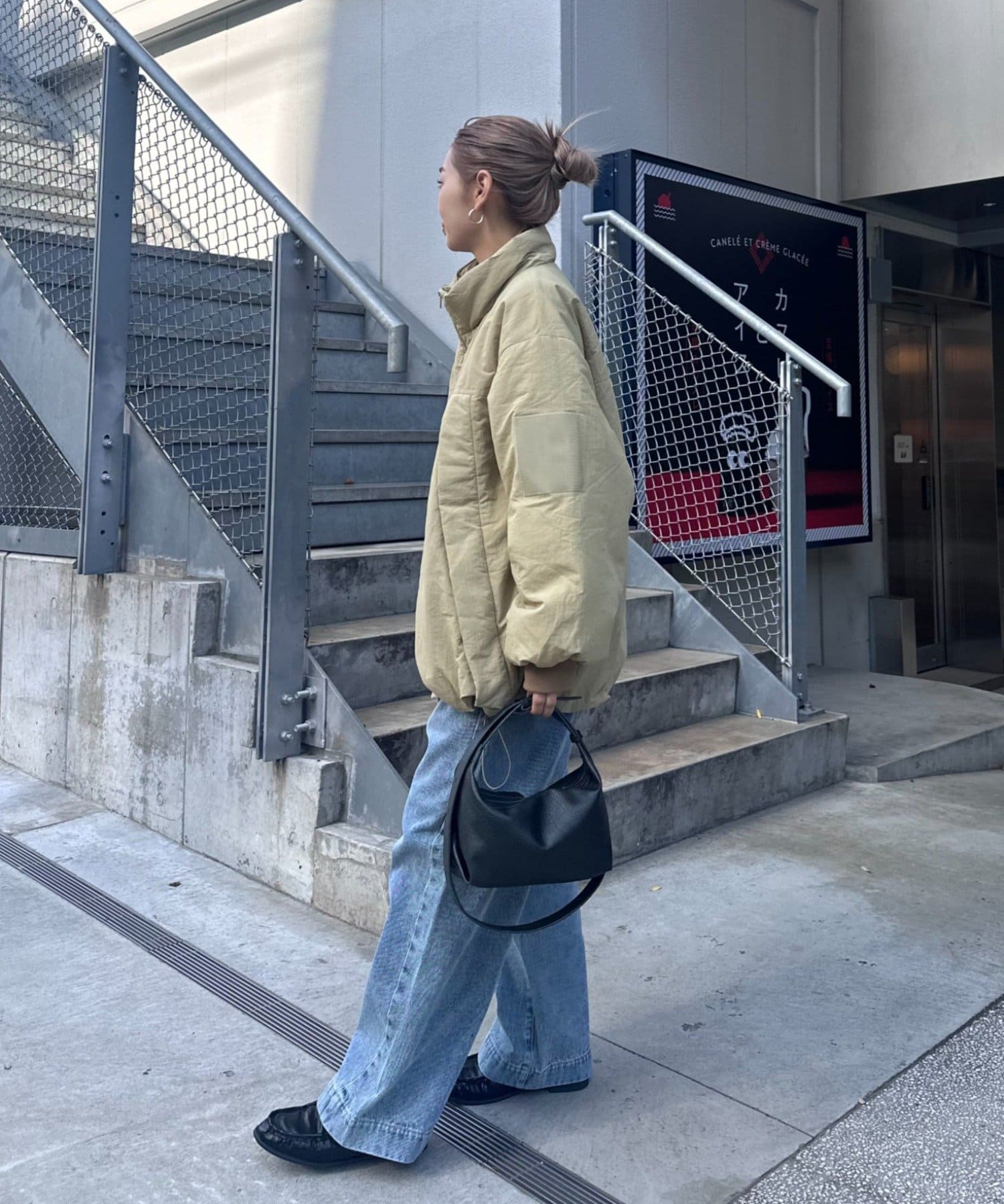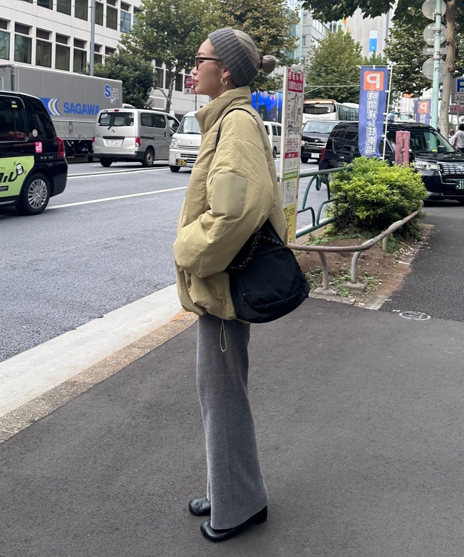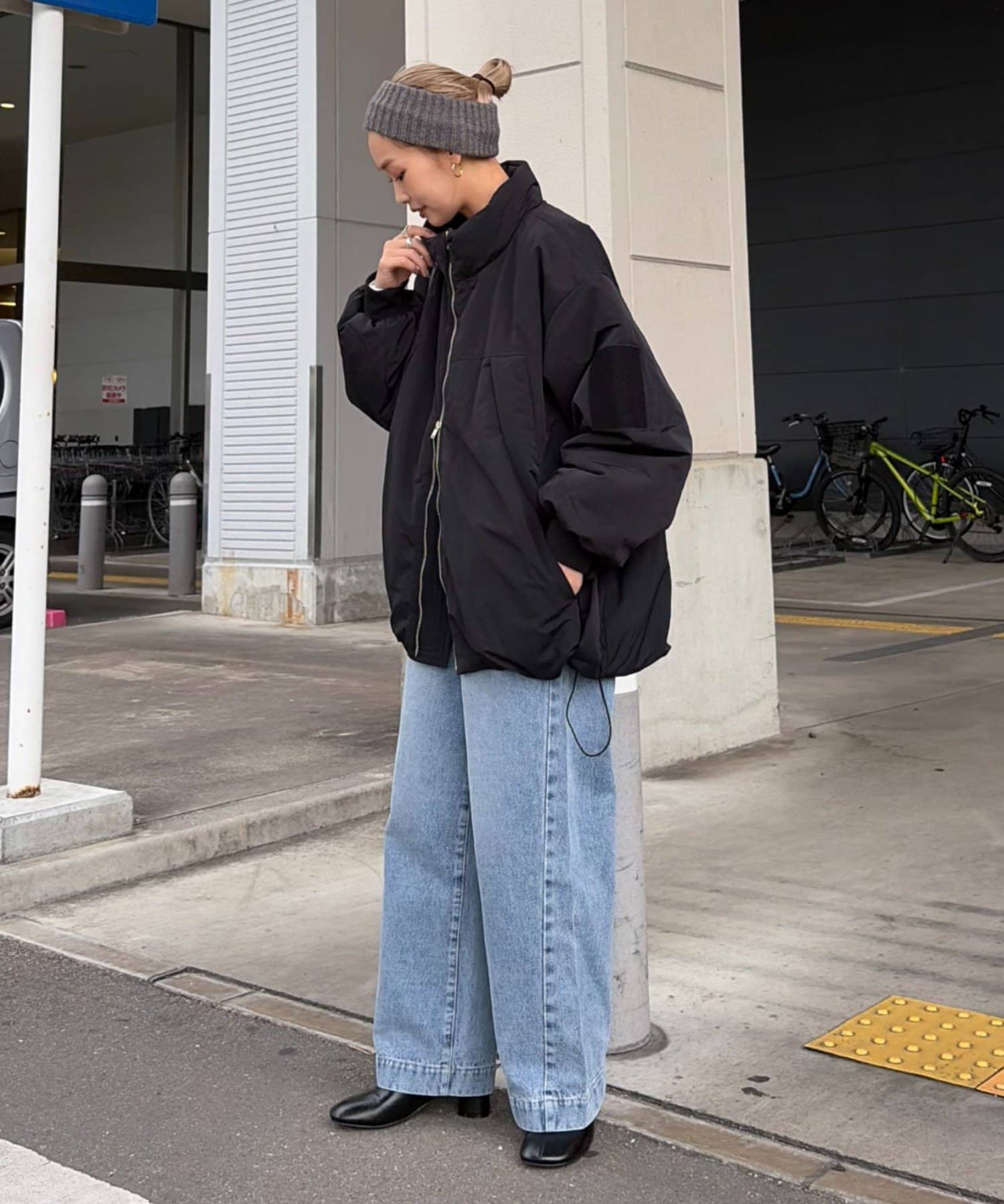 コーデのバランスを崩さずスタイリングできる中綿アウターを実現しました◎