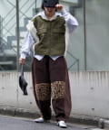 シャツやジャケットと合わせて、大人カジュアルな着こなしにも。