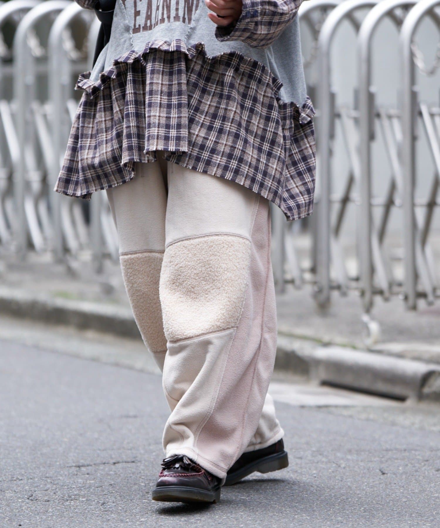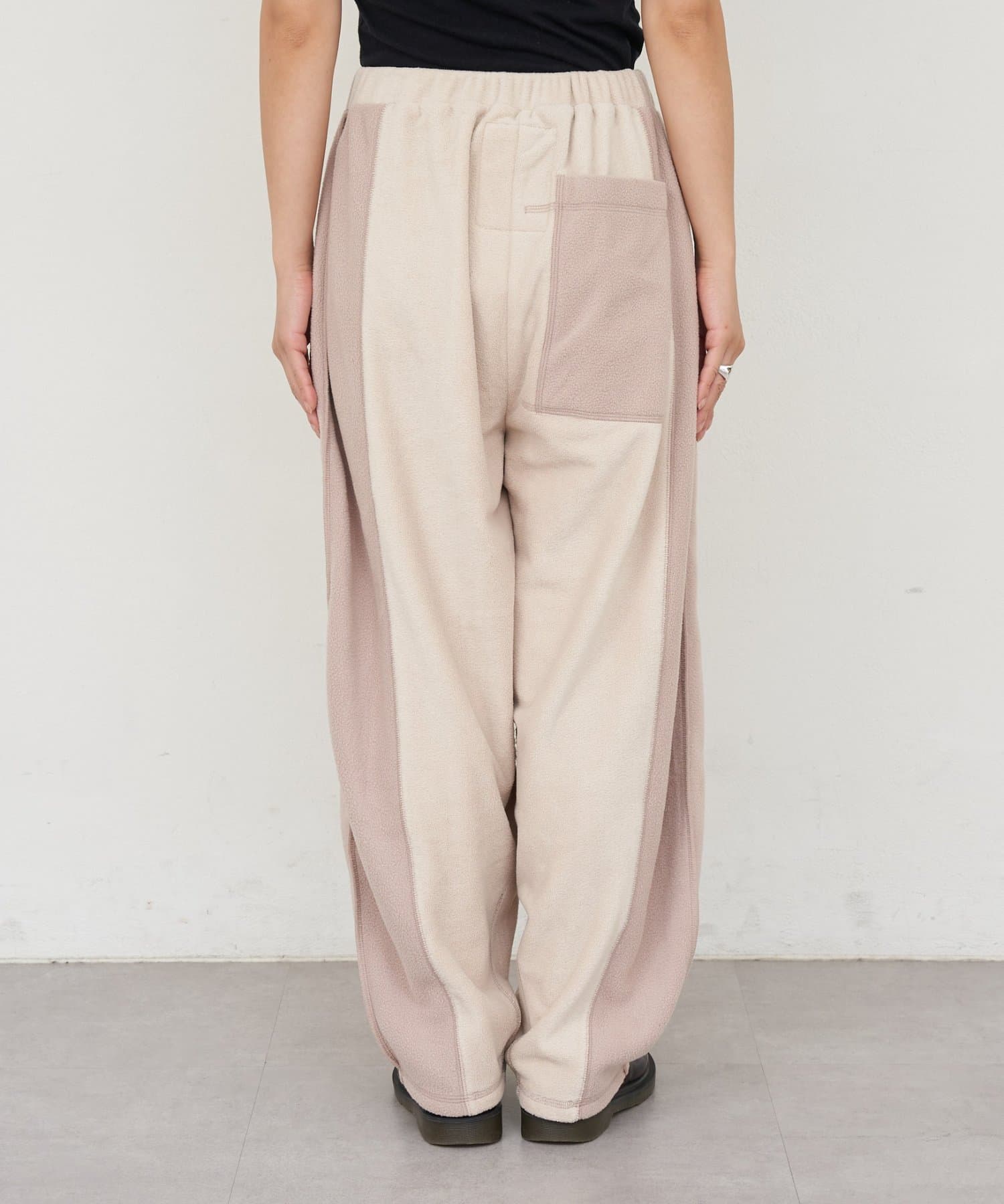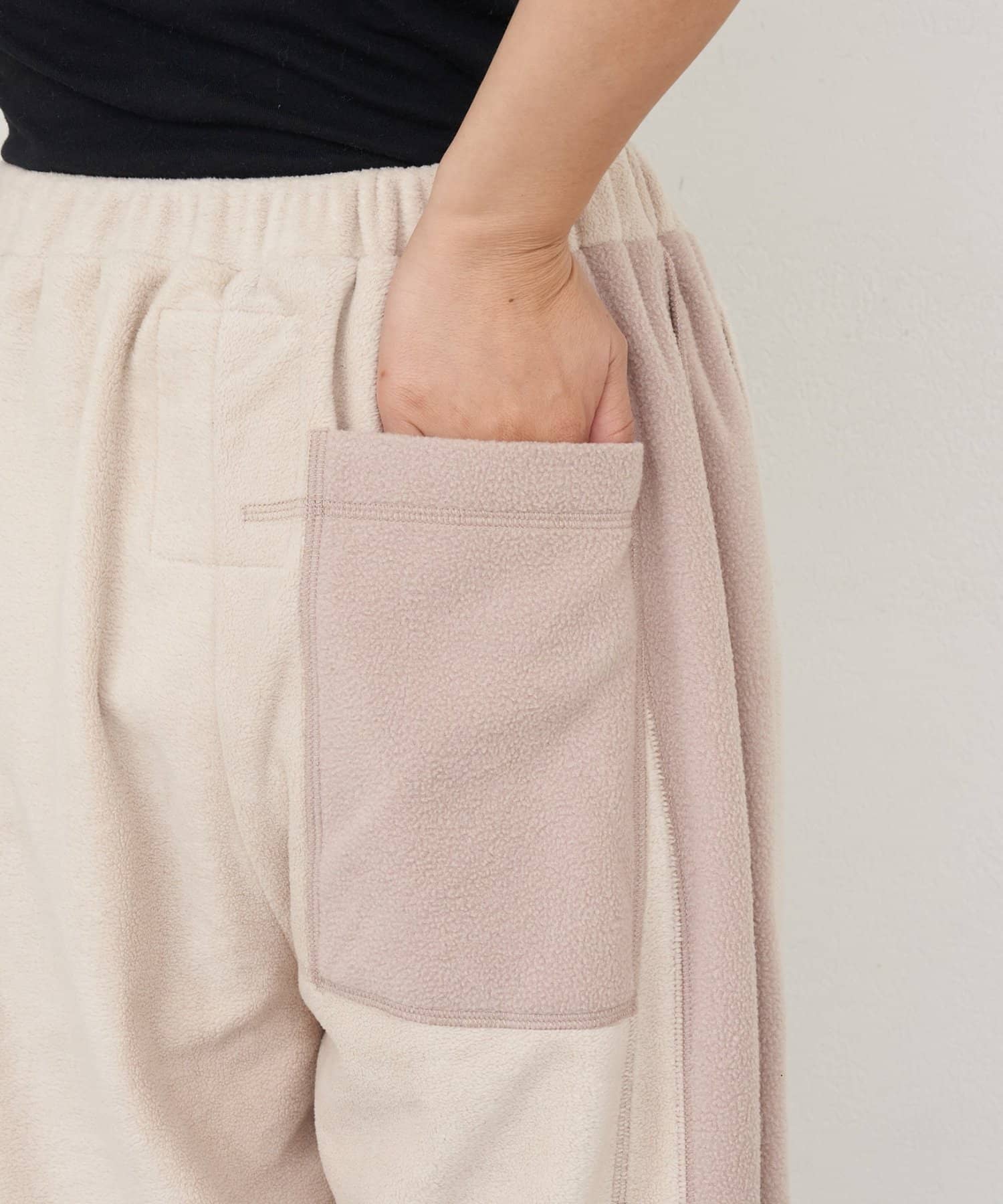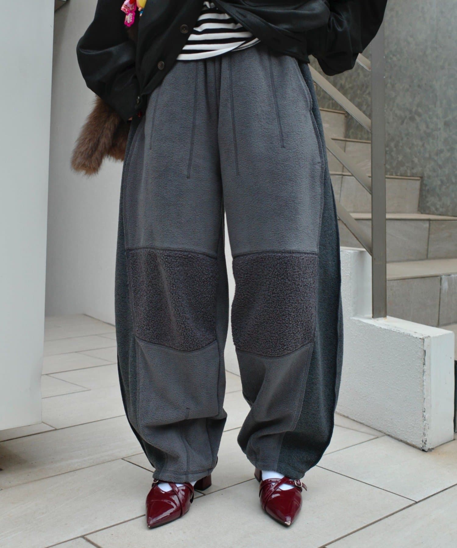 まるで古着をリメイクしたかのような、デザイン性の高いフリースパンツ。