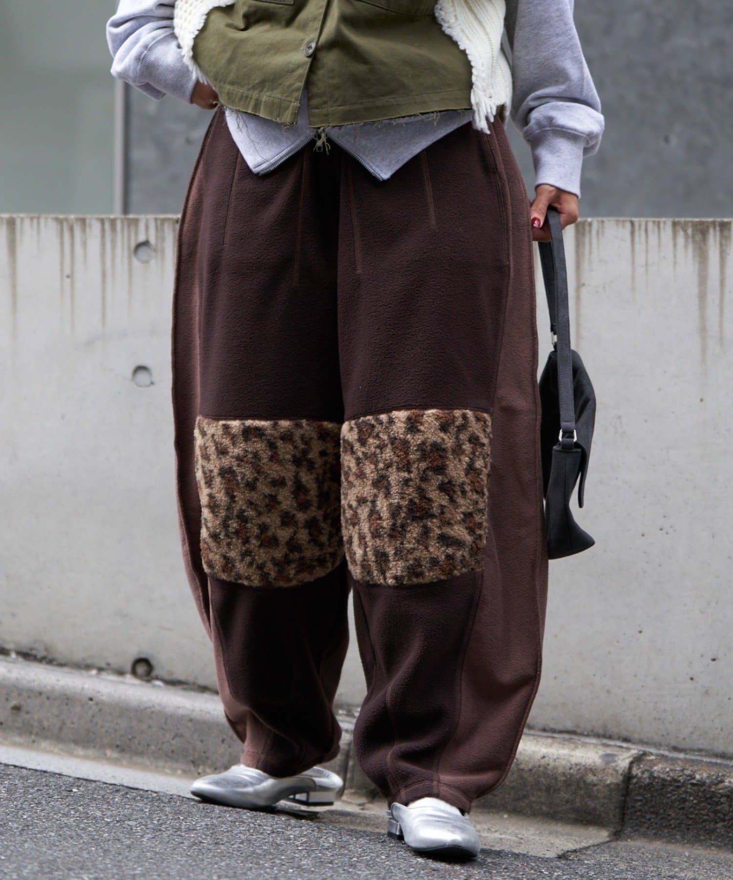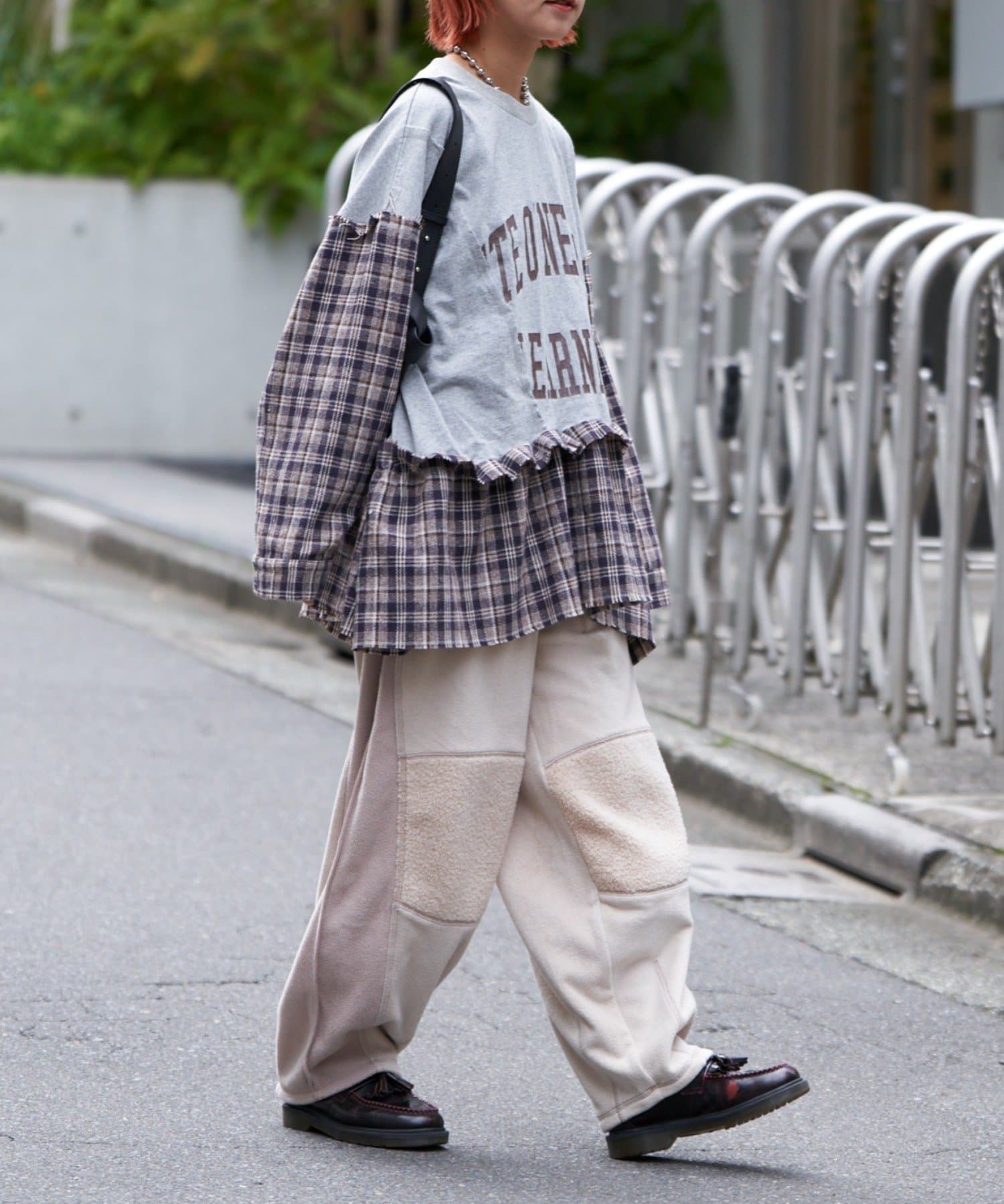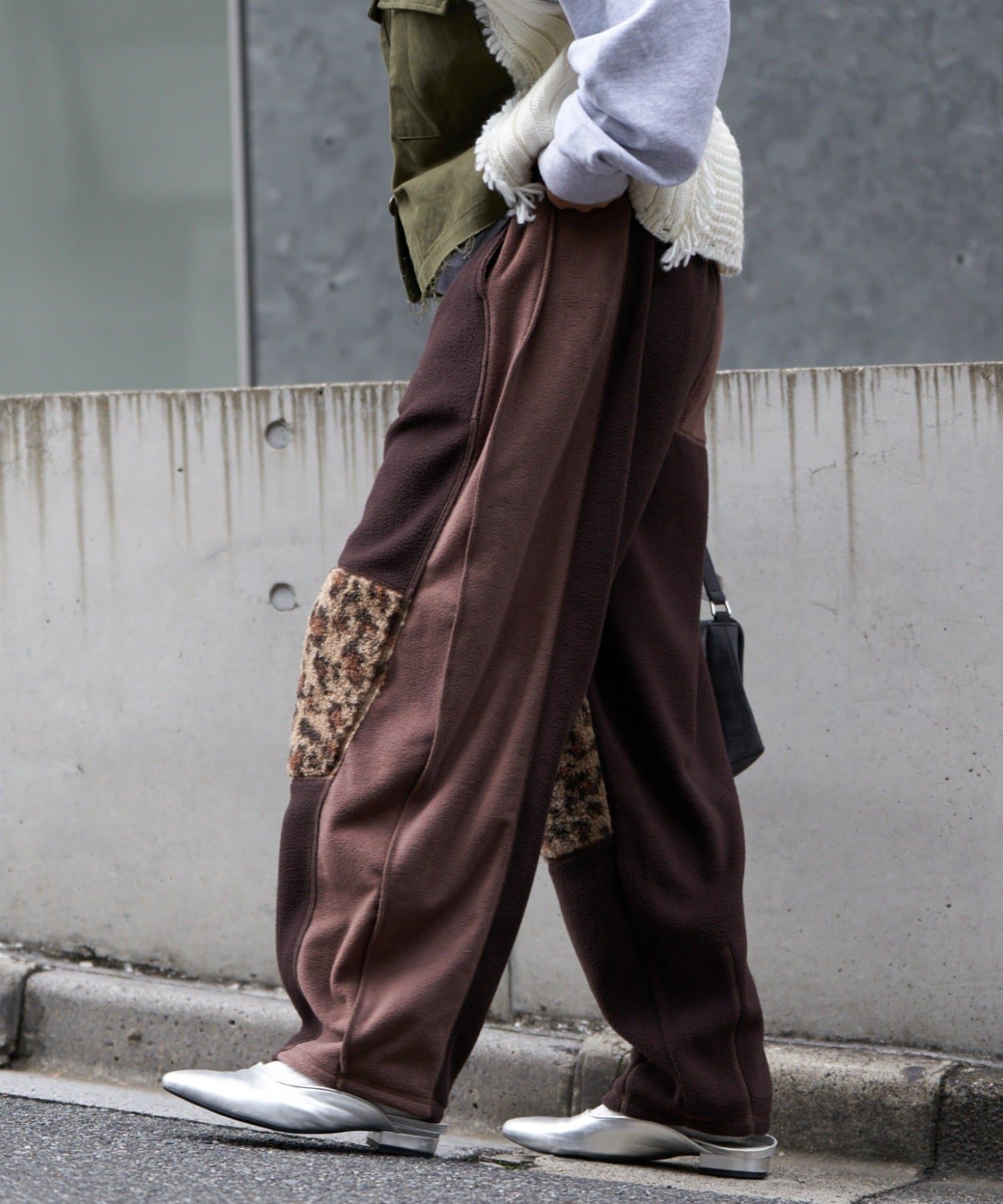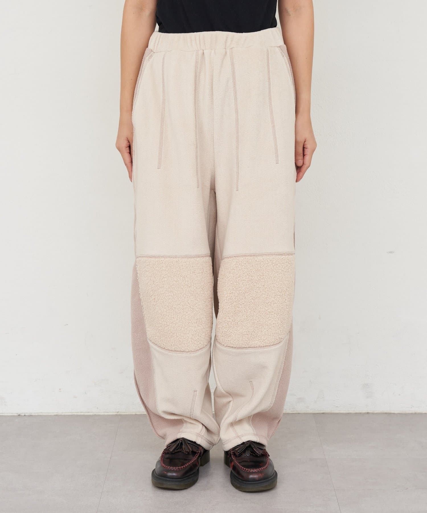 まるで古着をリメイクしたかのような、デザイン性の高いフリースパンツ。