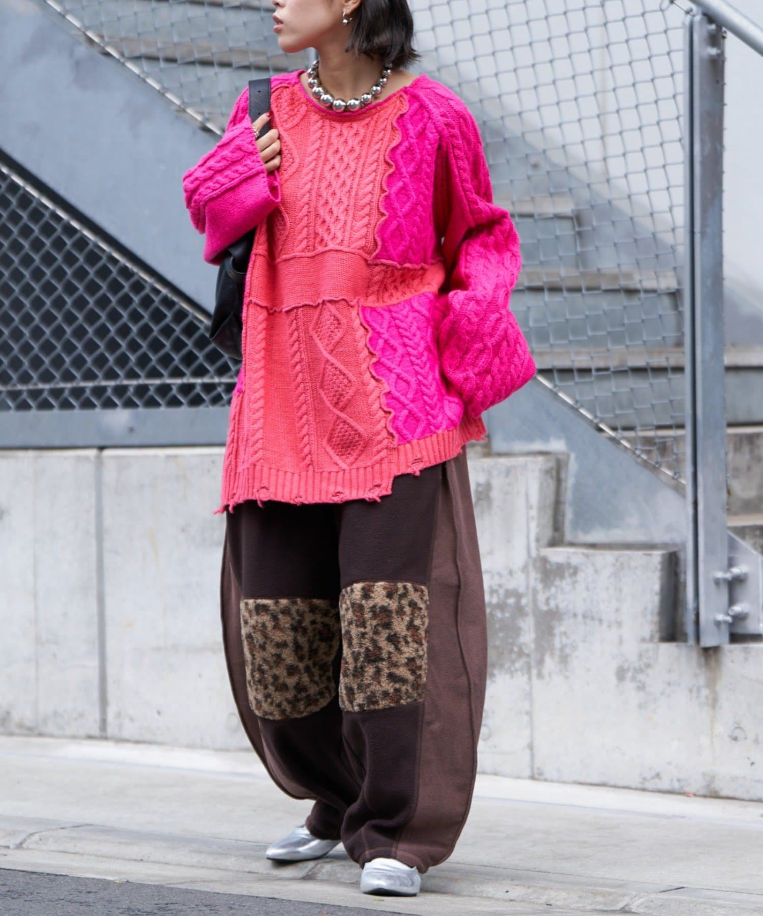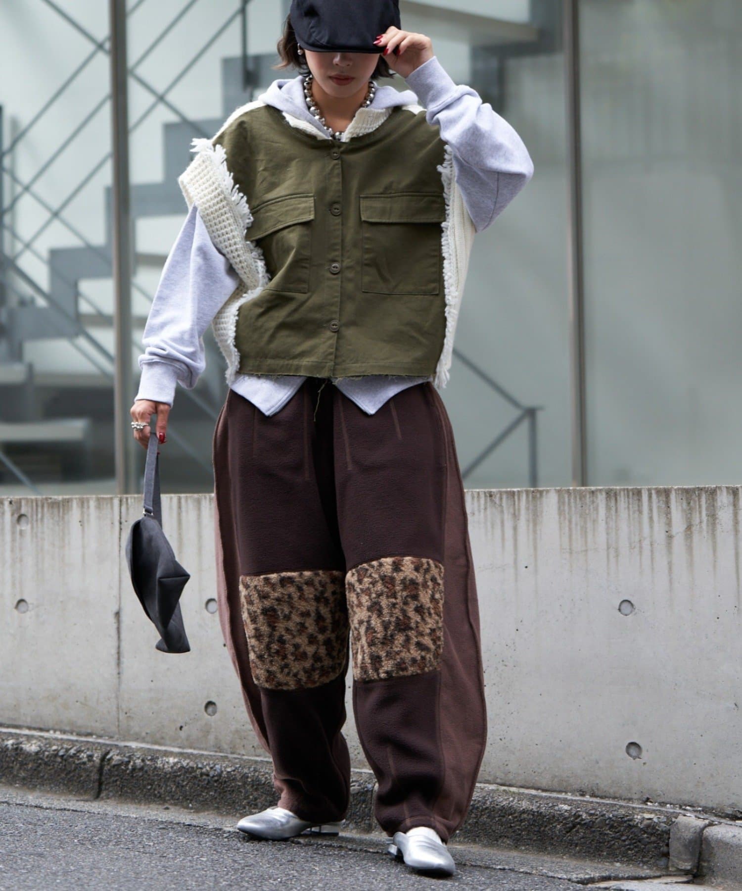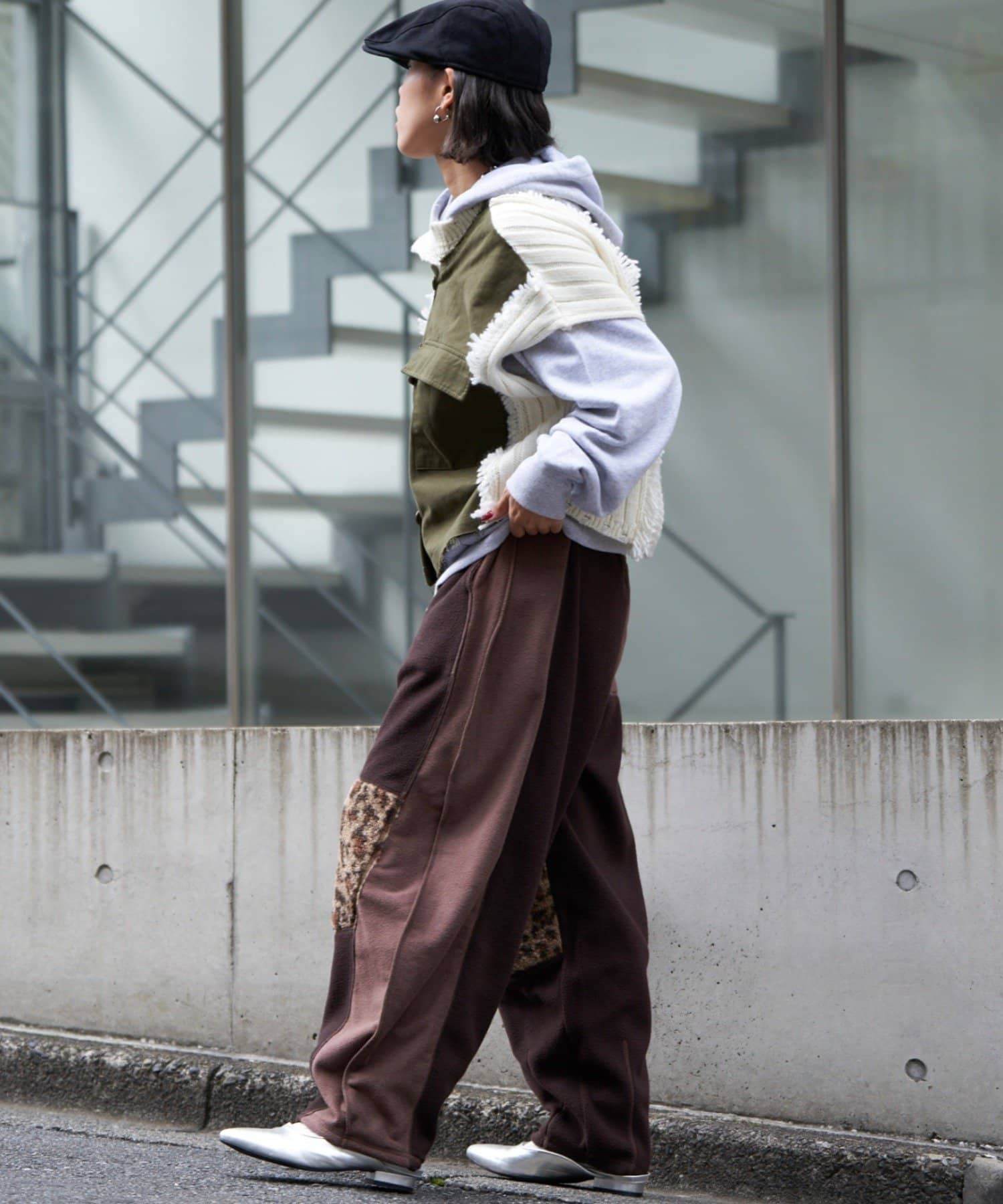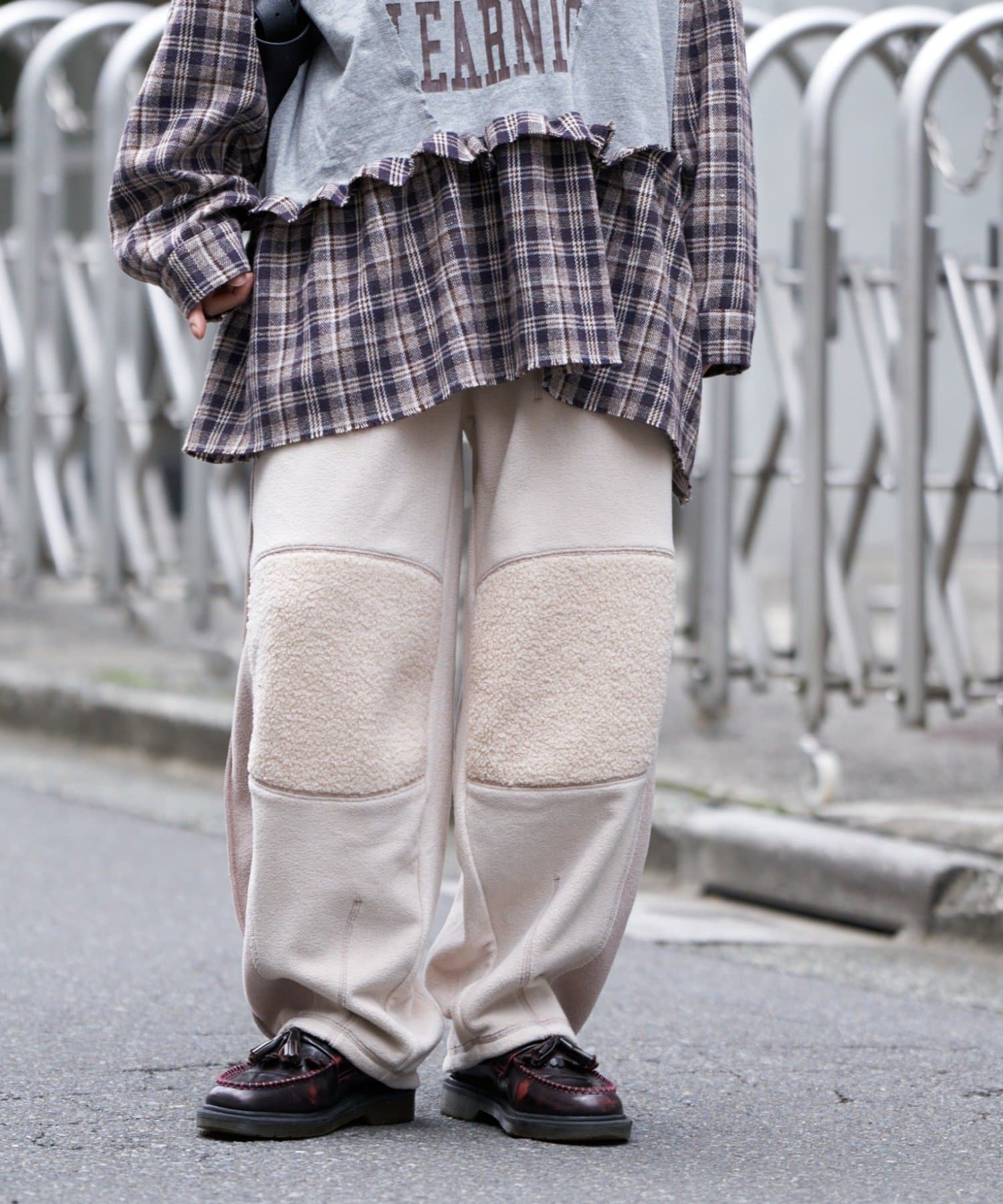 まるで古着をリメイクしたかのような、デザイン性の高いフリースパンツ。