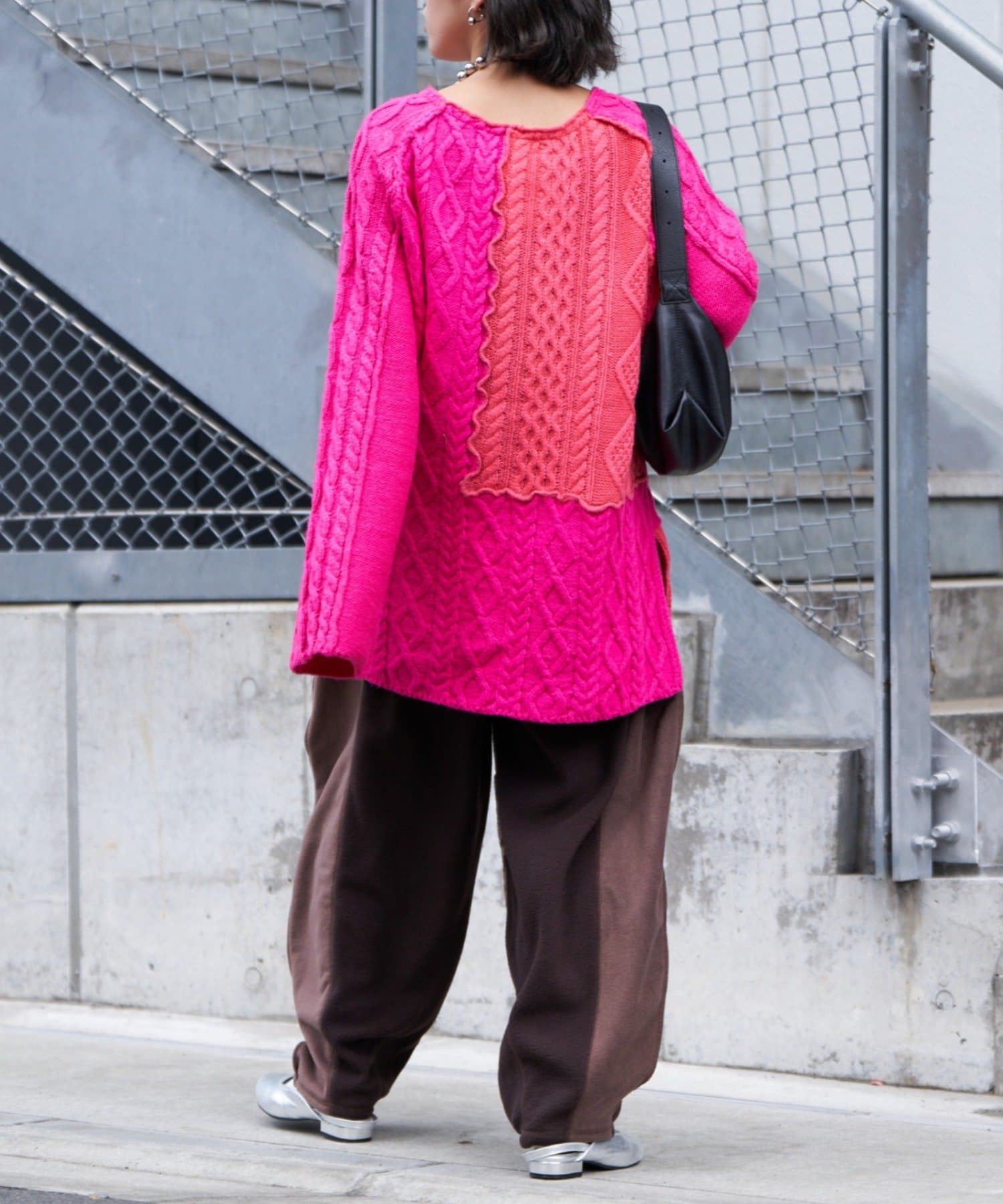 特徴的なカーブシルエットと異素材の切り替えが、こなれ感を演出します。