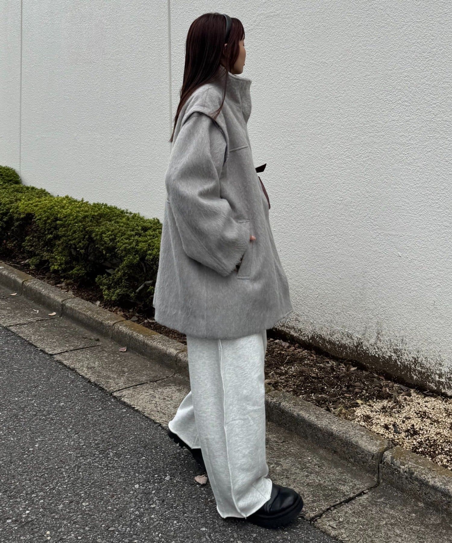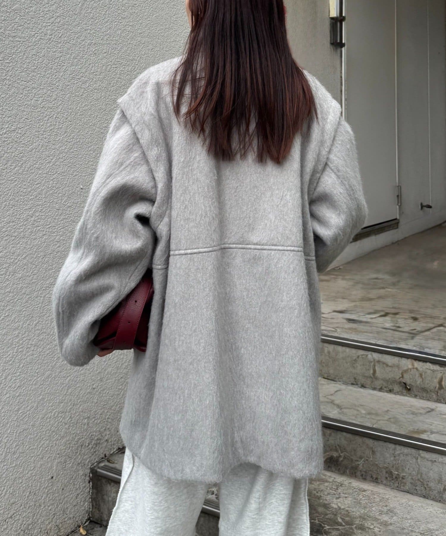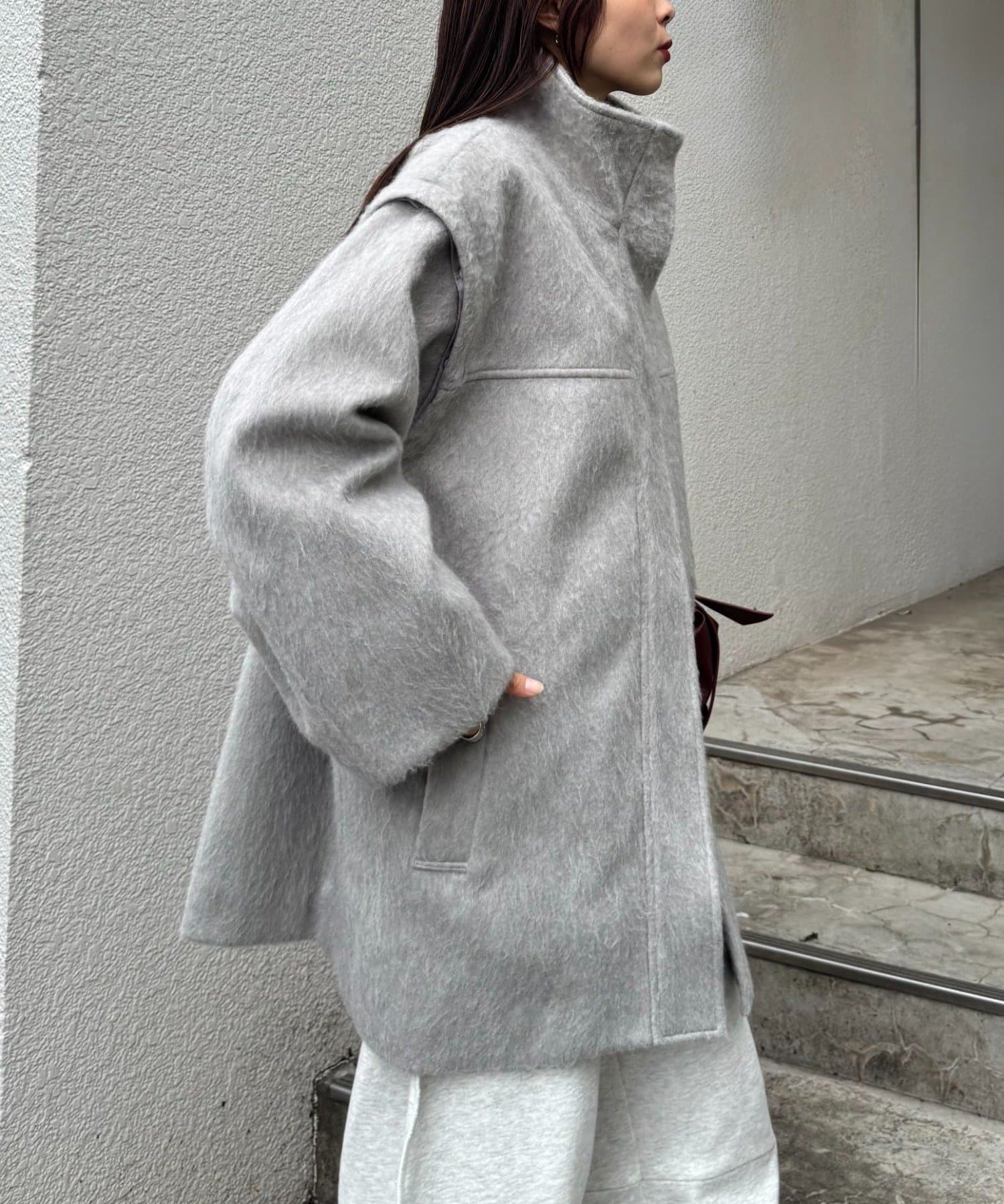 【高見え&着映え】シャギー袖取り外しスタンドハーフコート