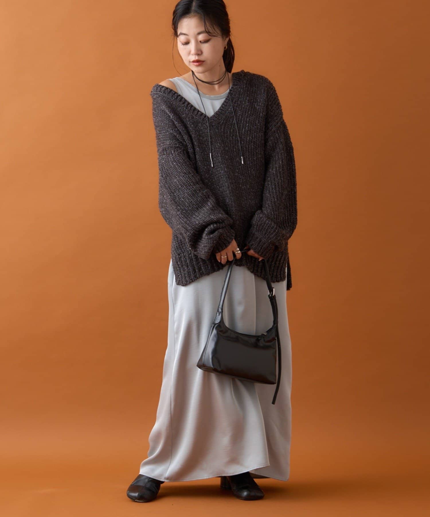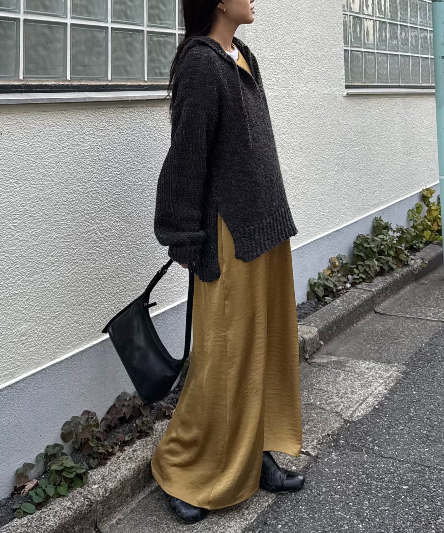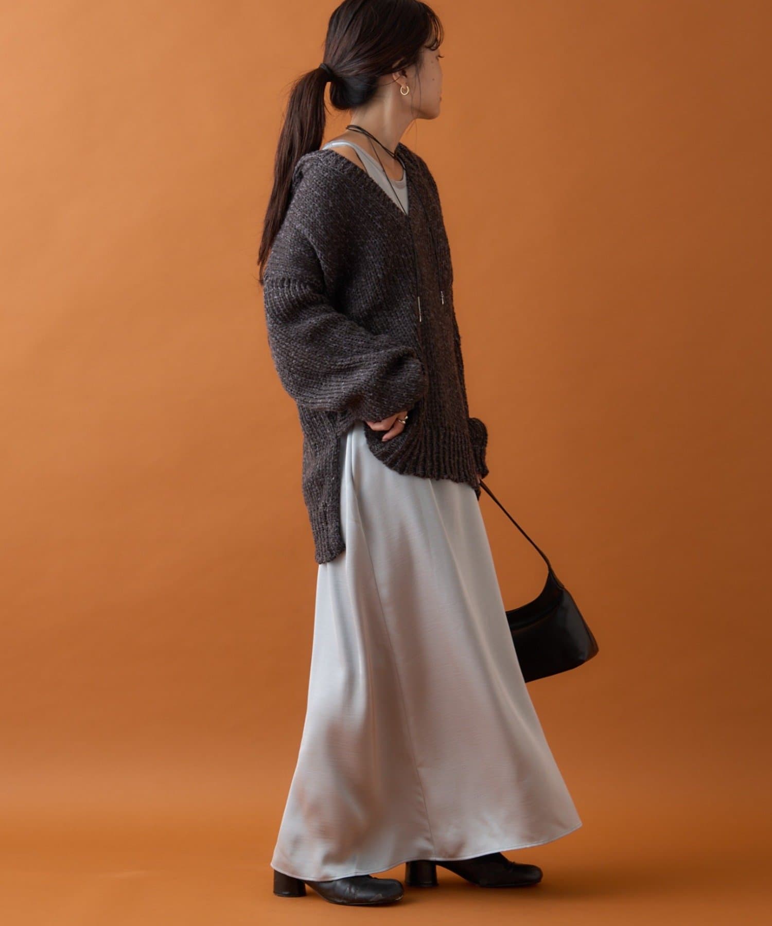 上からカーディガンやオーバーニットを合わせるのも華奢見えしてオススメです。