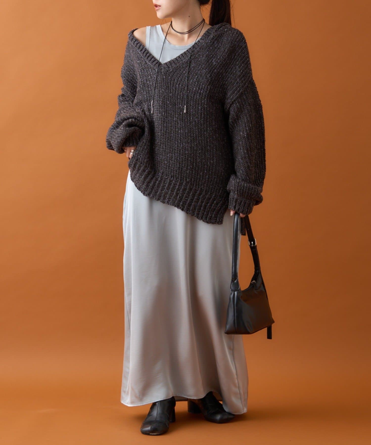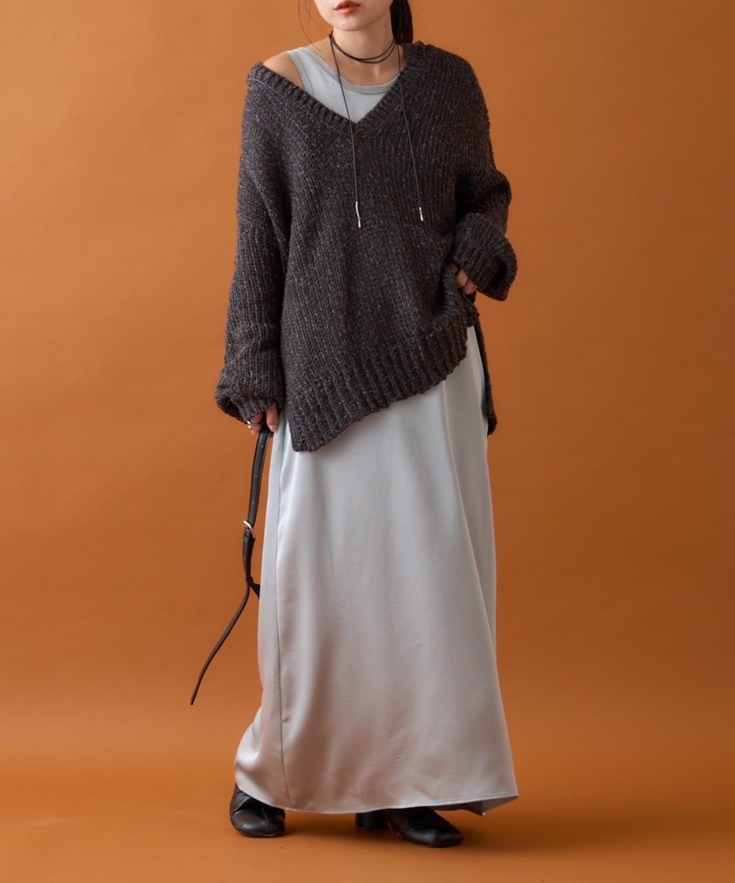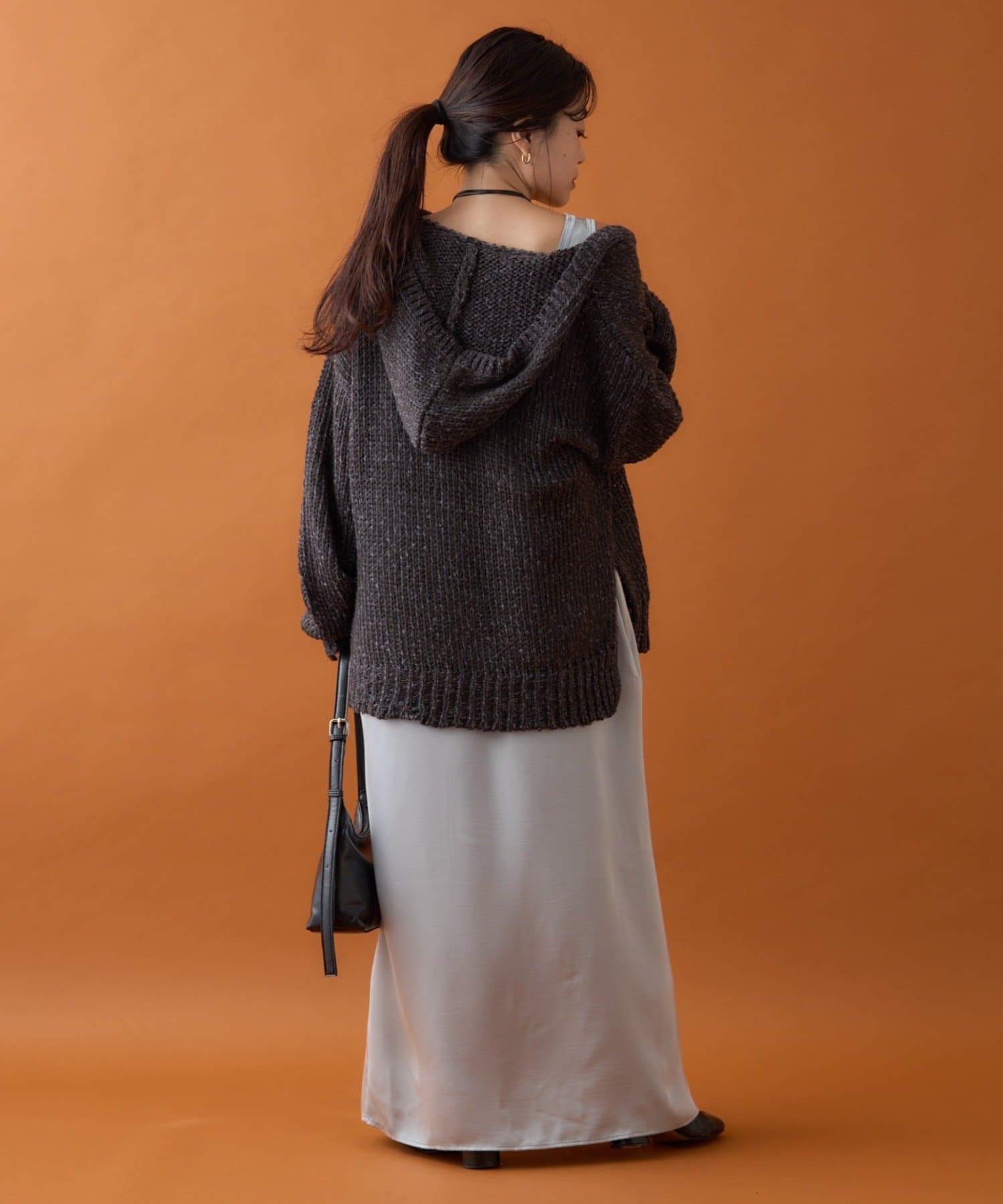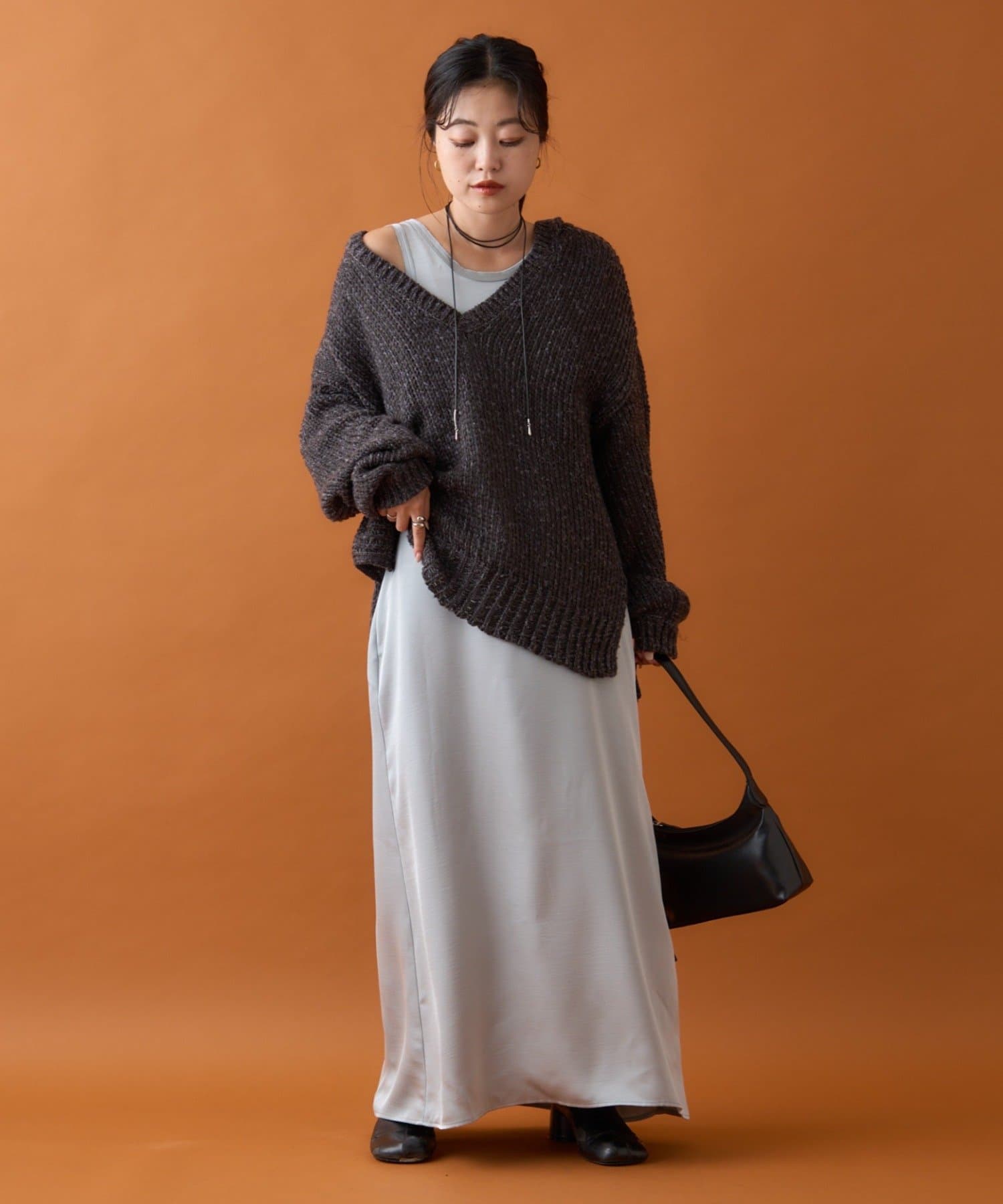 上からカーディガンやオーバーニットを合わせるのも華奢見えしてオススメです。