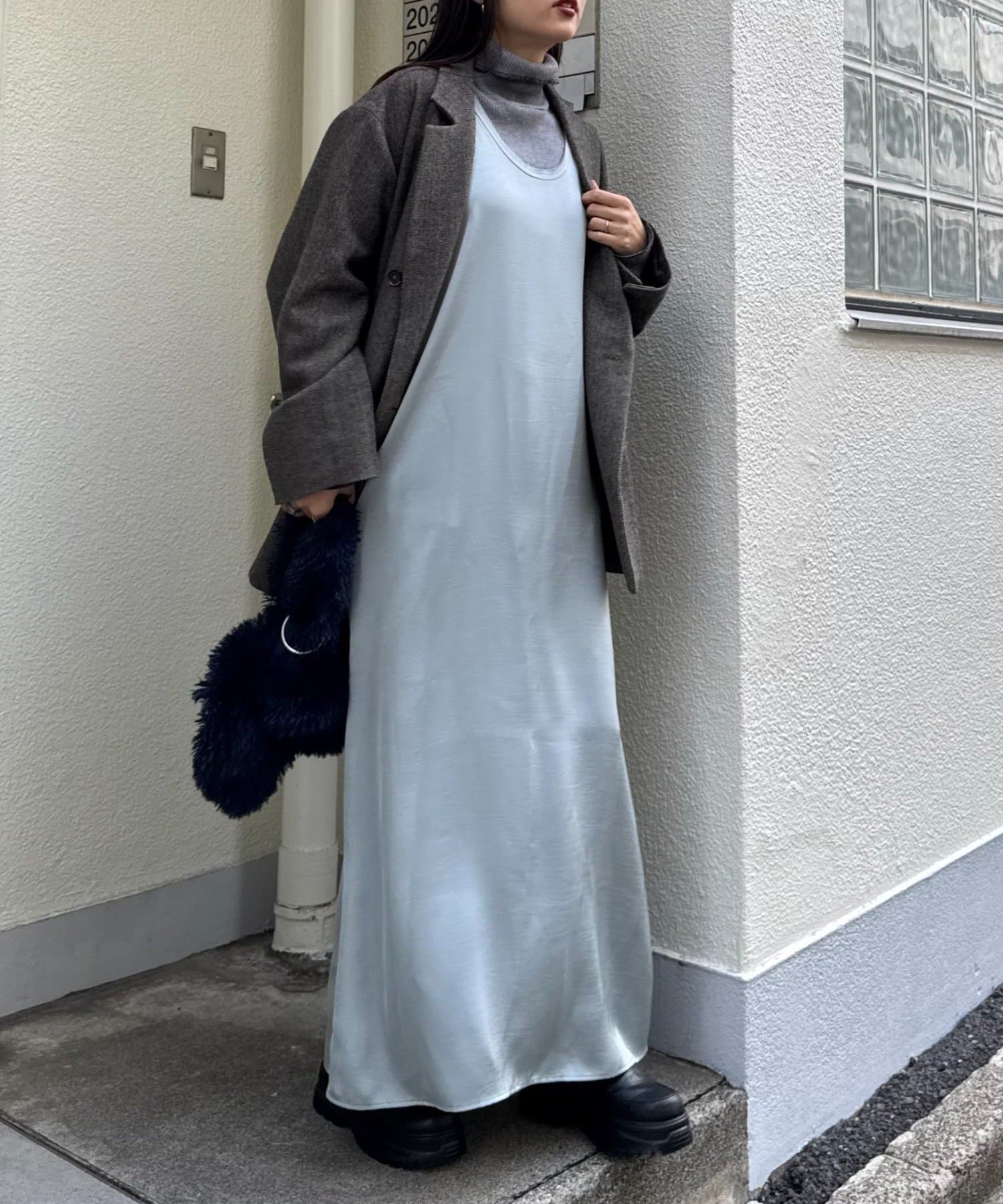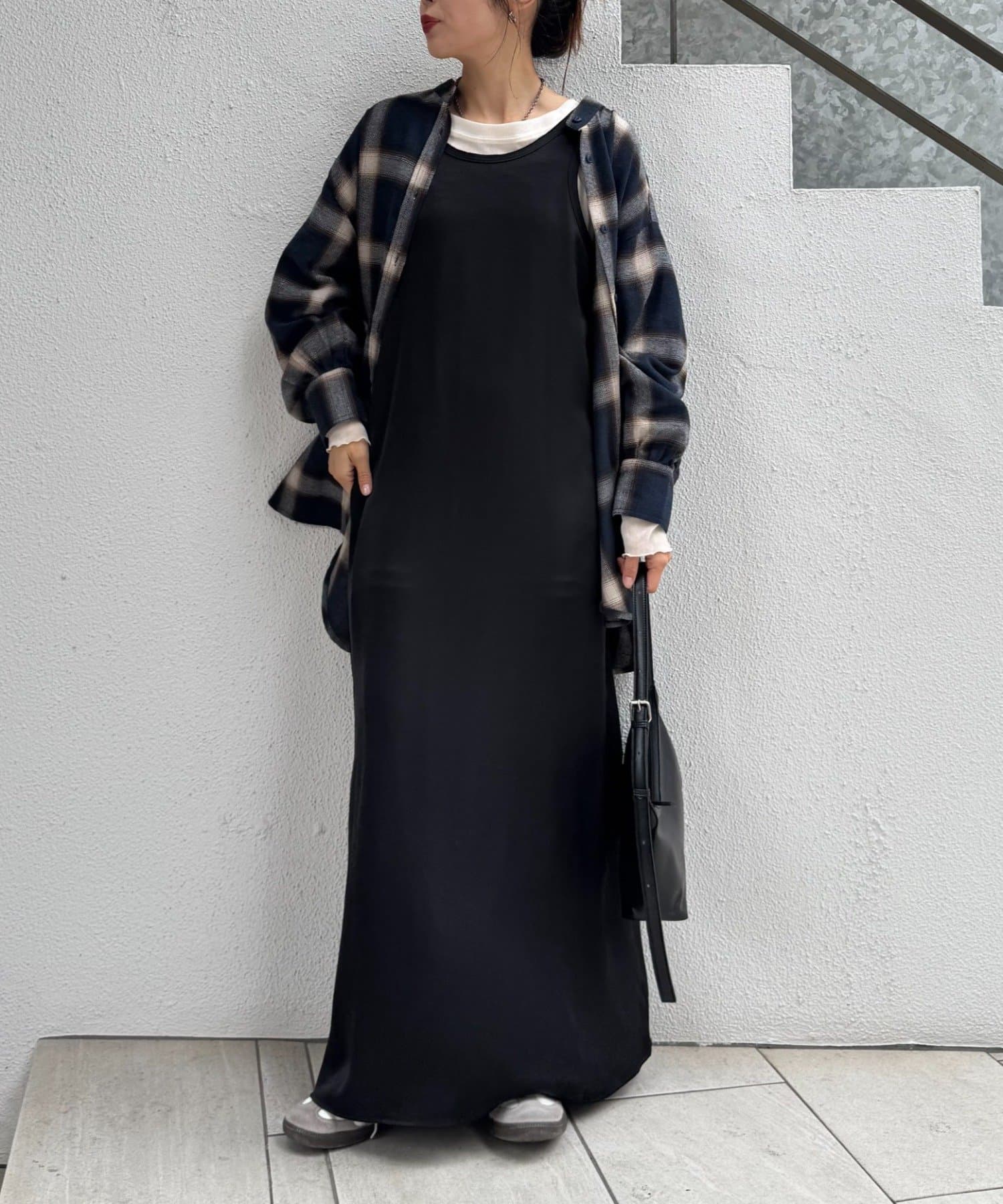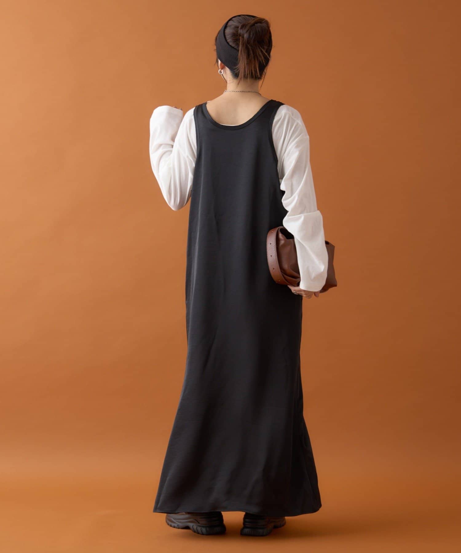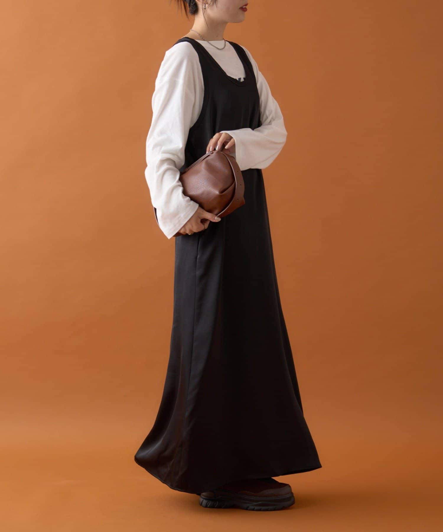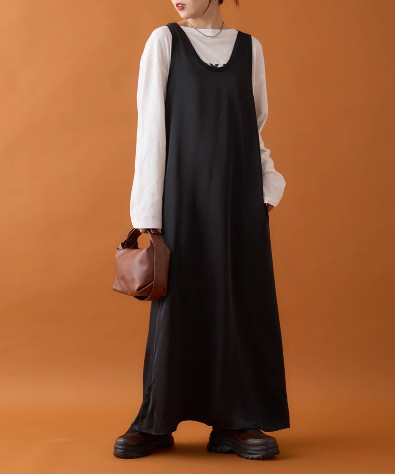 すっきりシルエット×光沢感で大人っぽく仕上がる2WAYワンピース