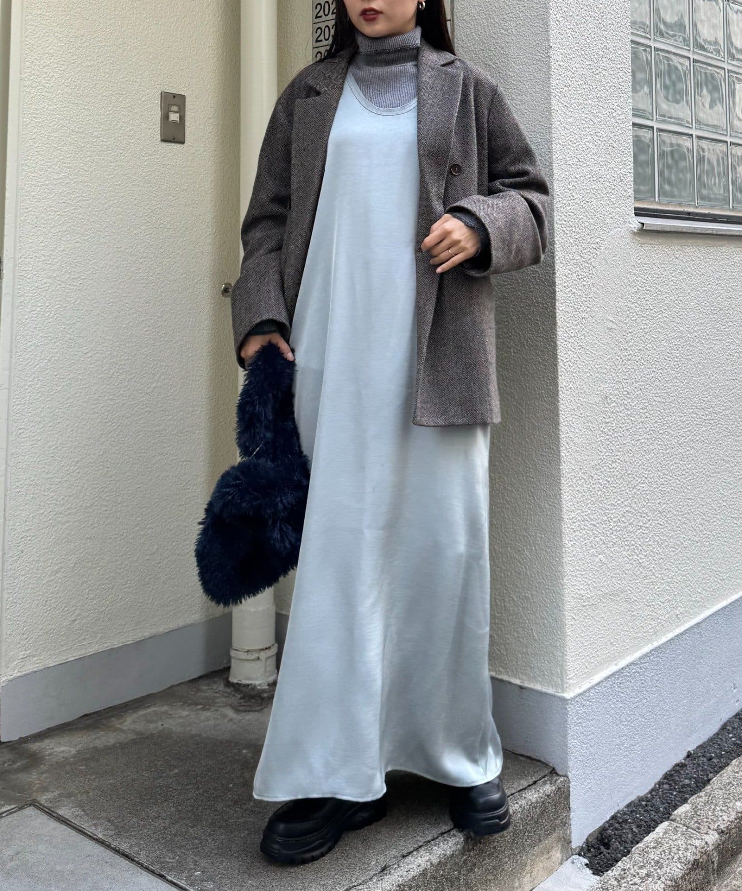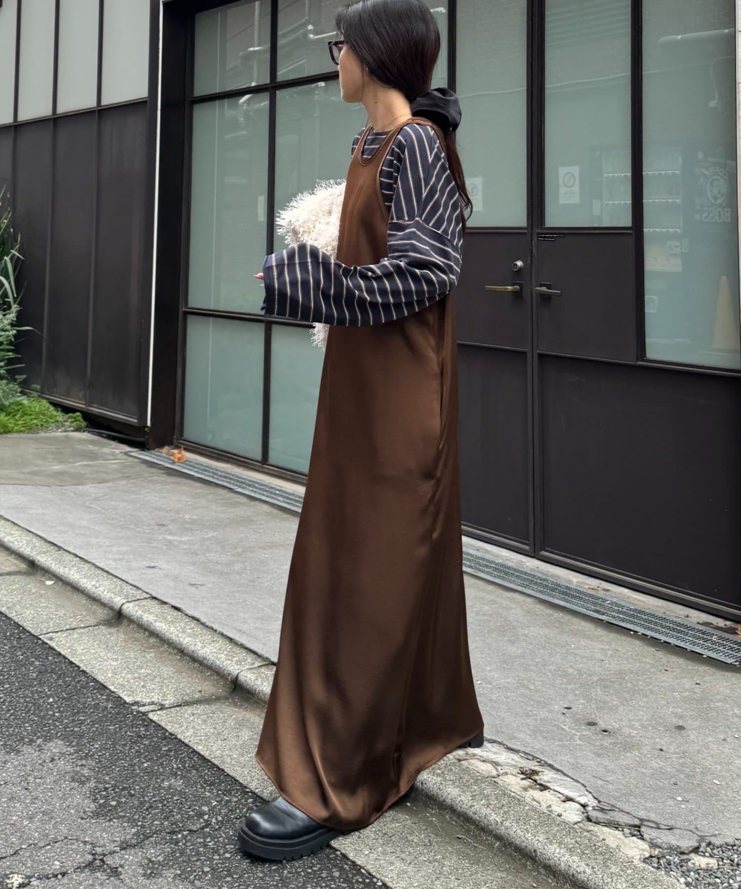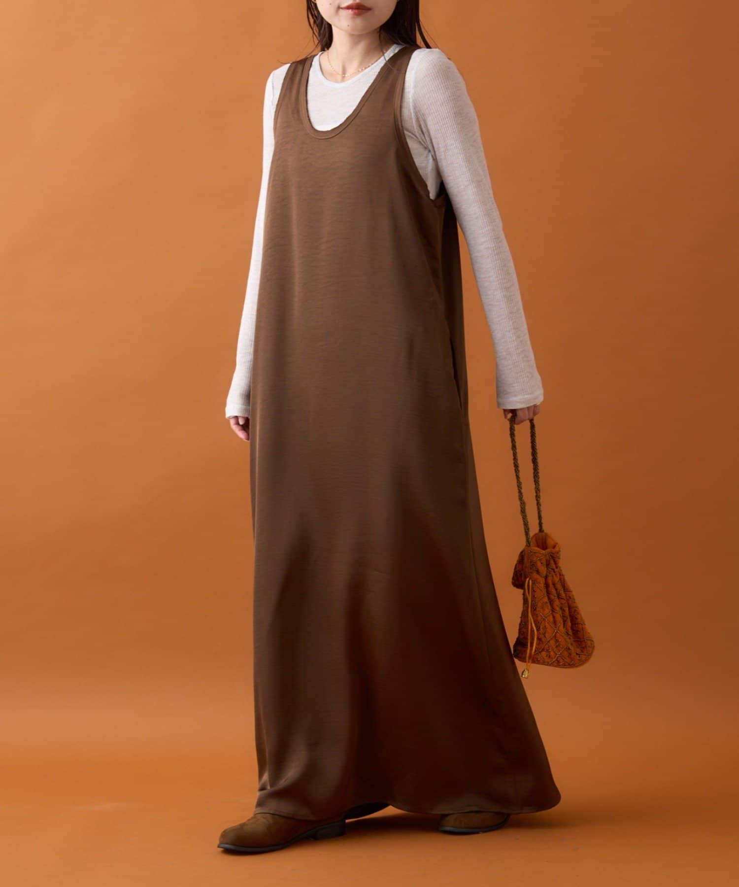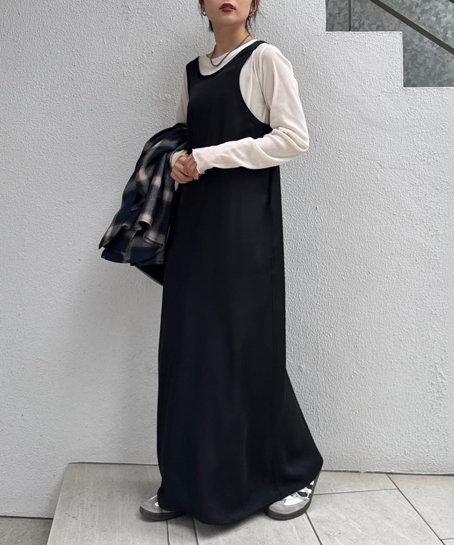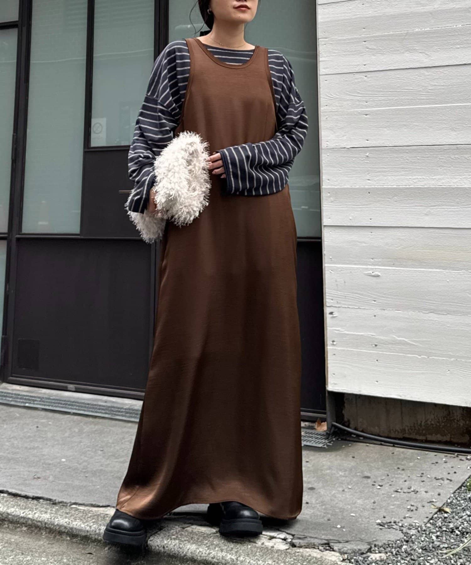 すっきりシルエット×光沢感で大人っぽく仕上がる2WAYワンピース
