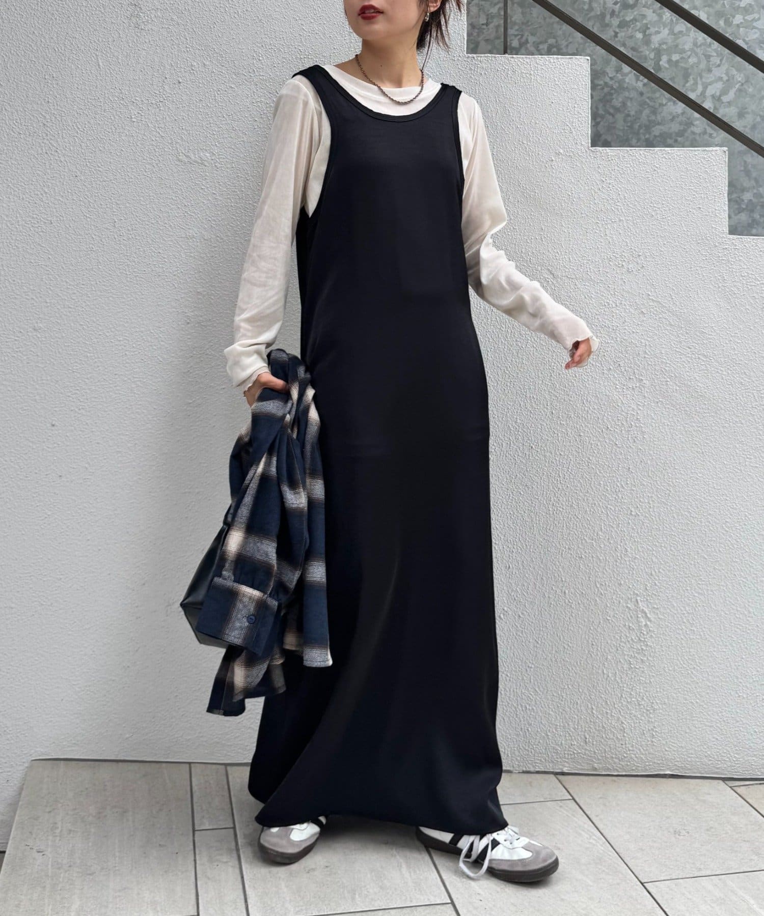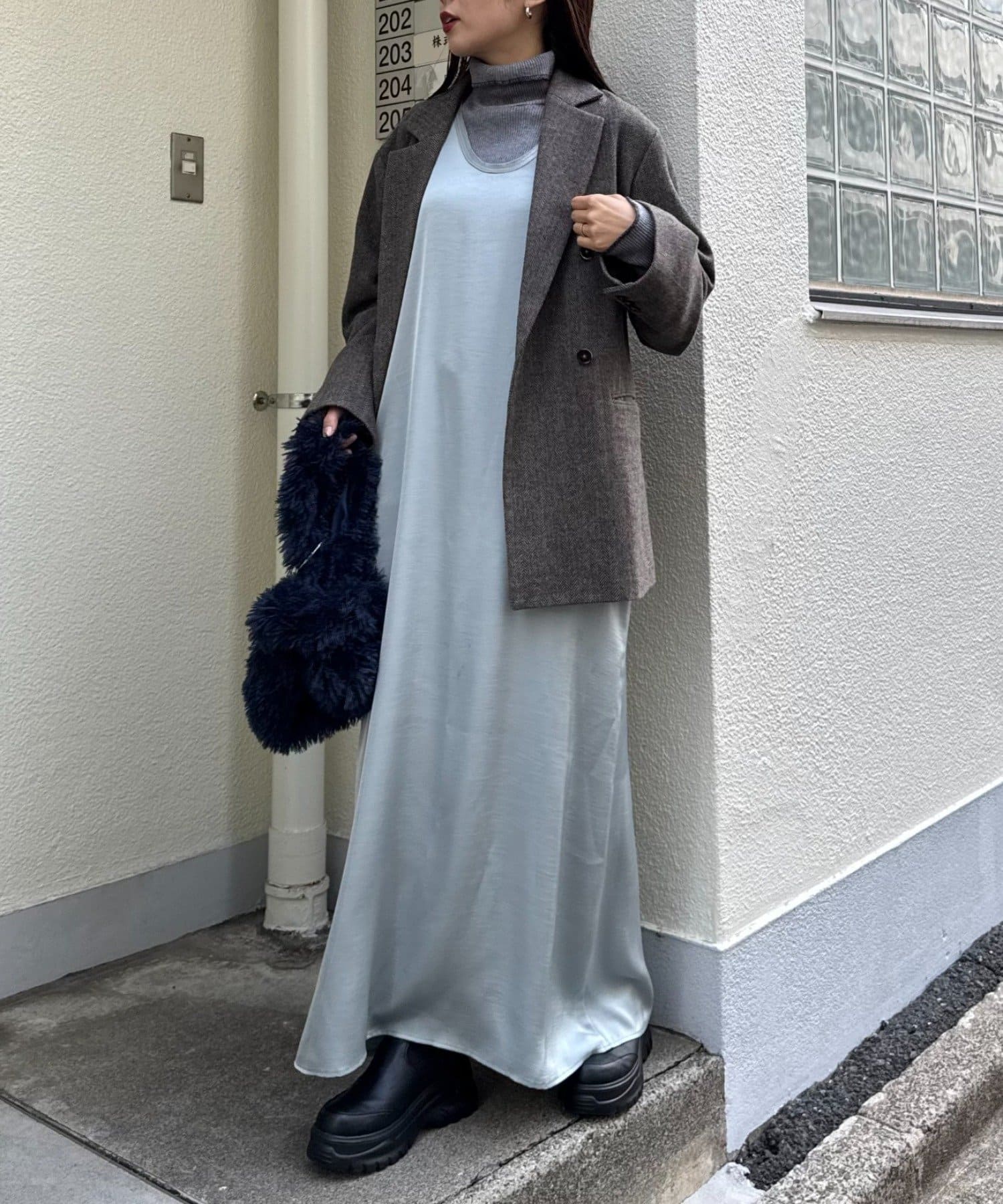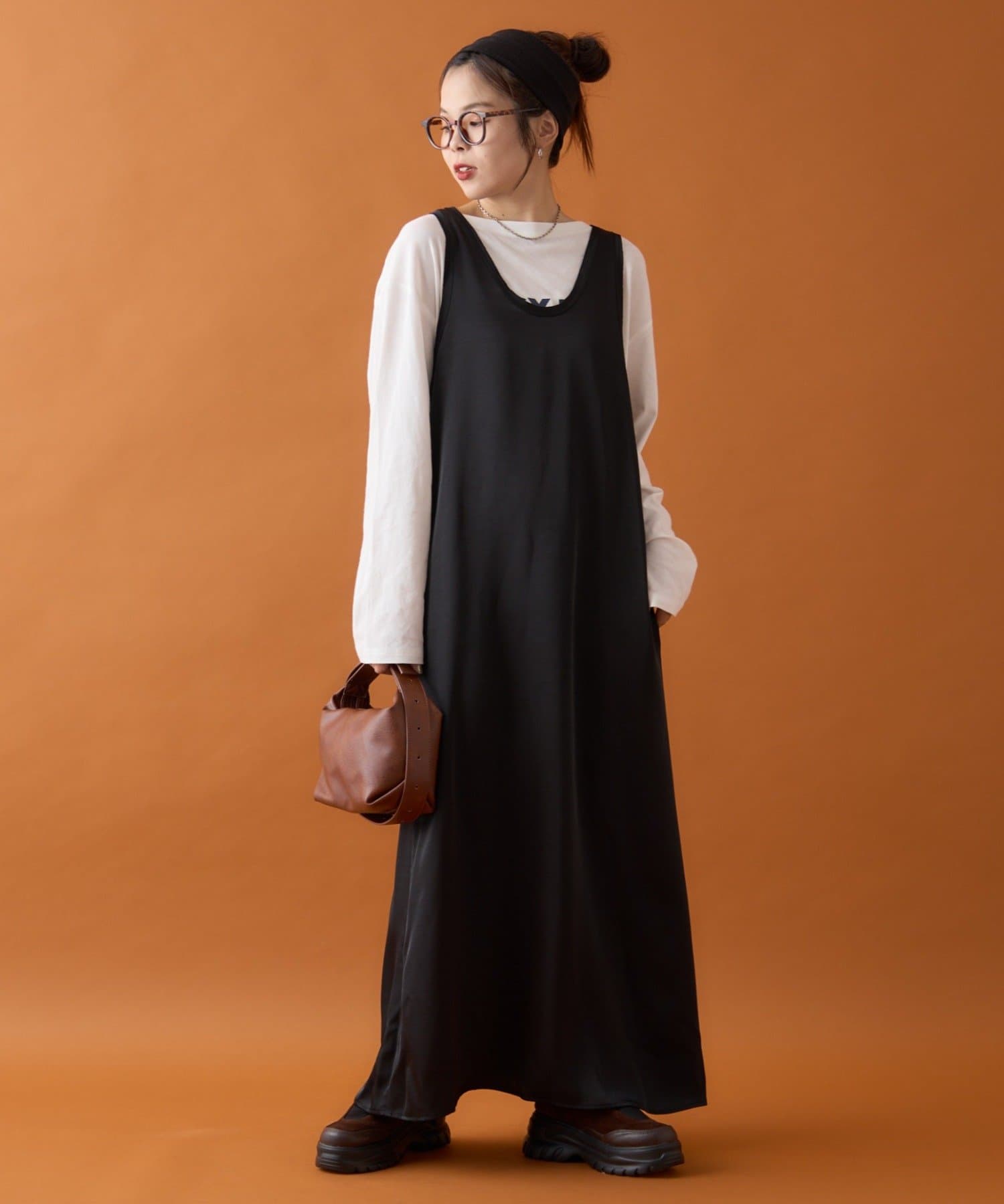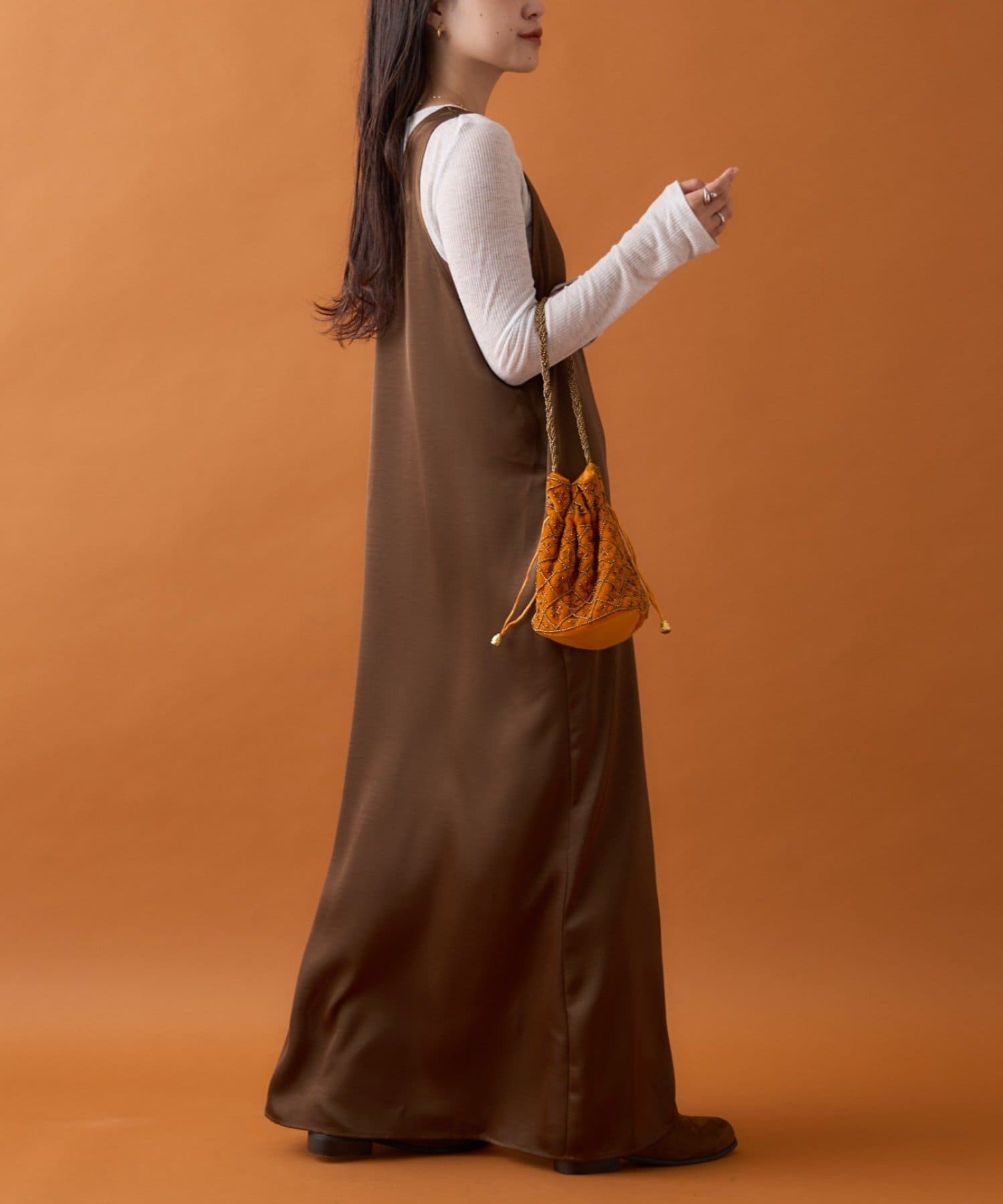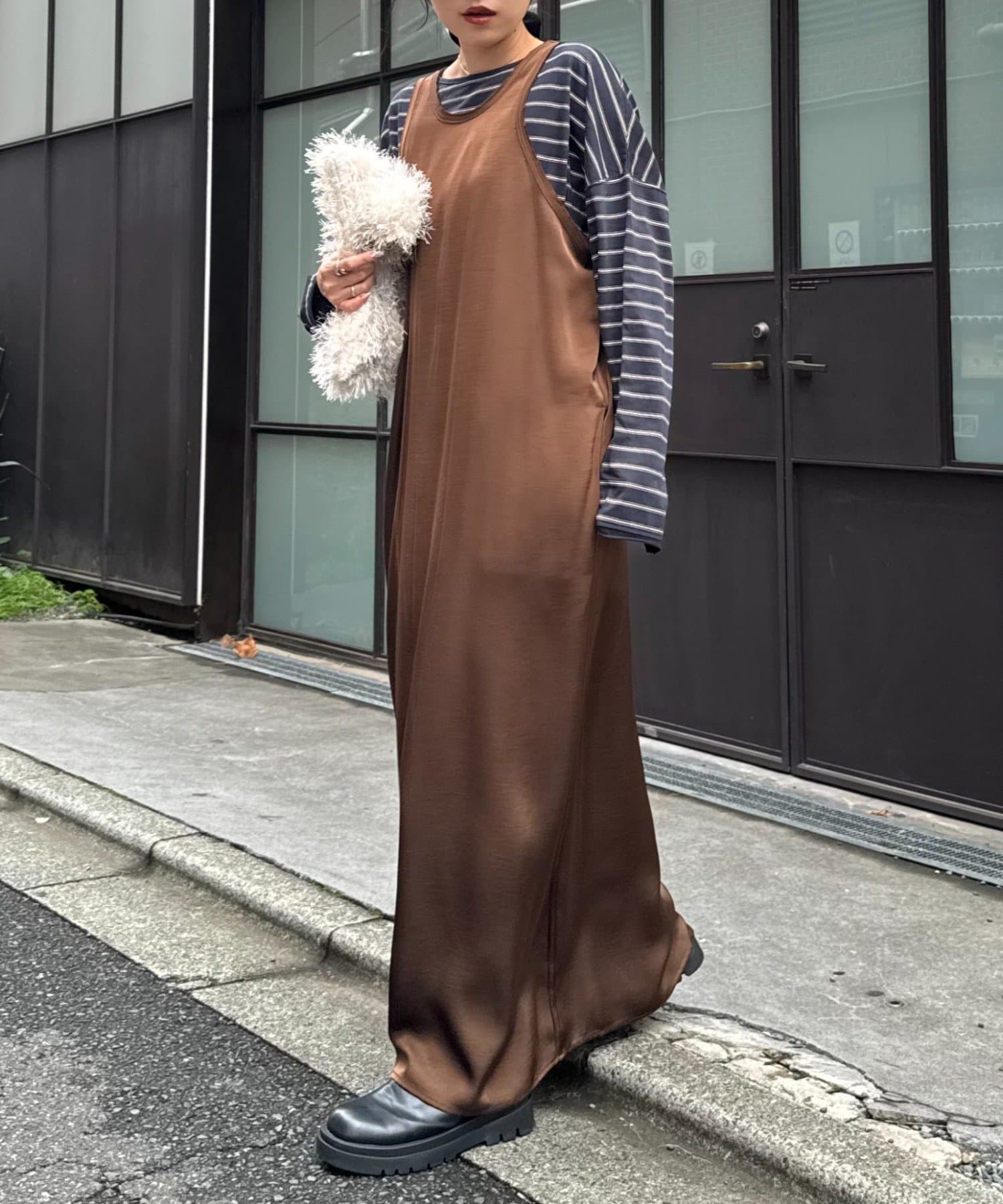すっきりシルエット×光沢感で大人っぽく仕上がる2WAYワンピース