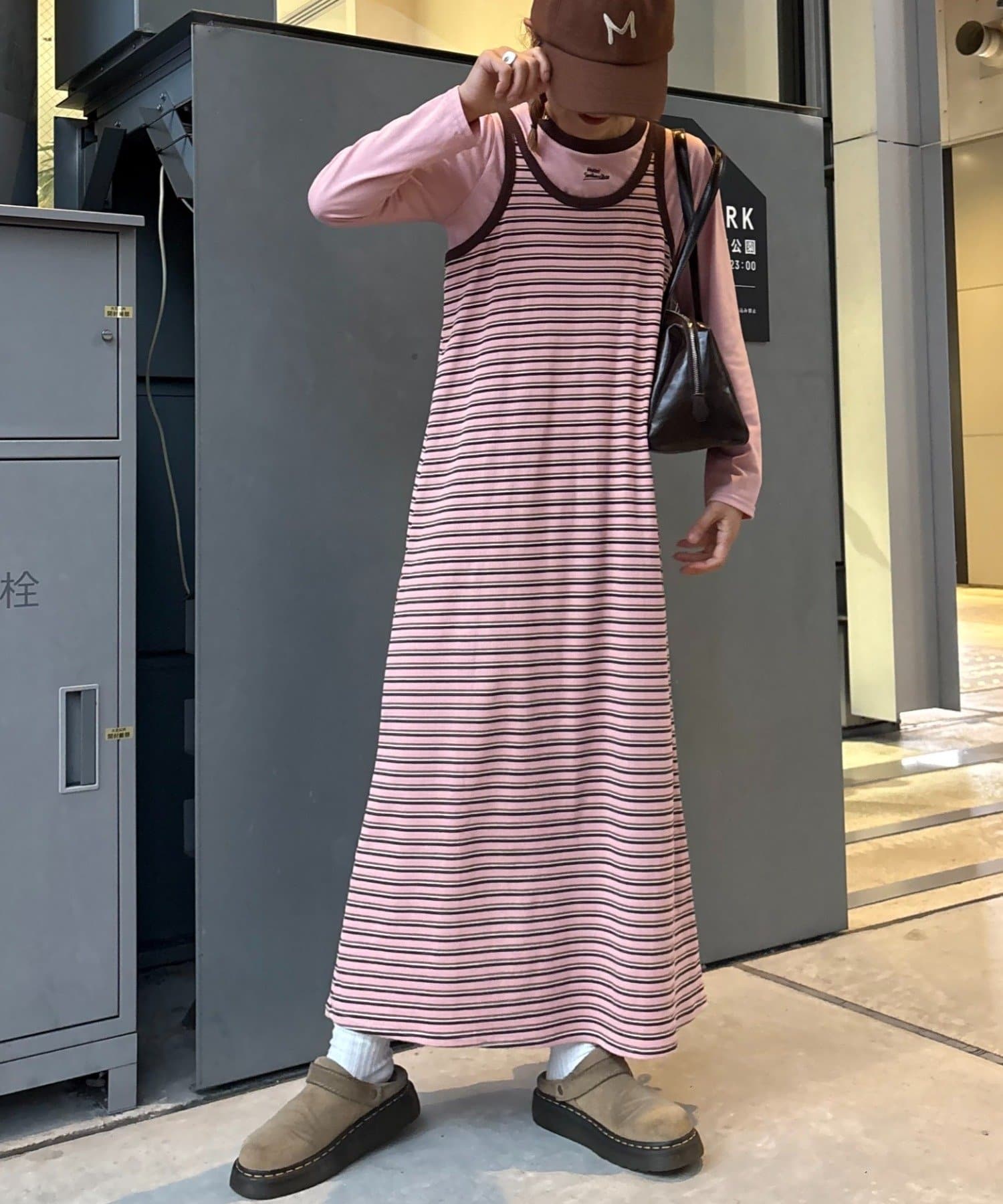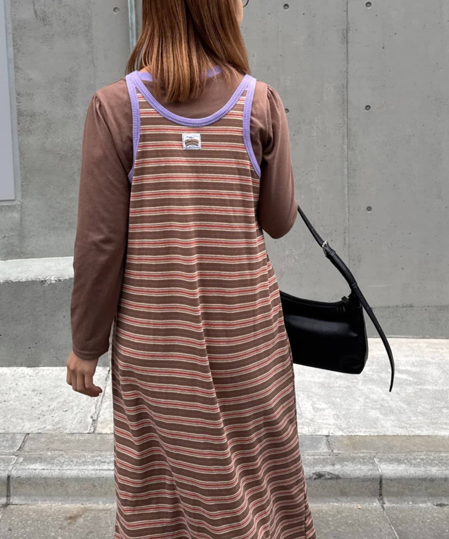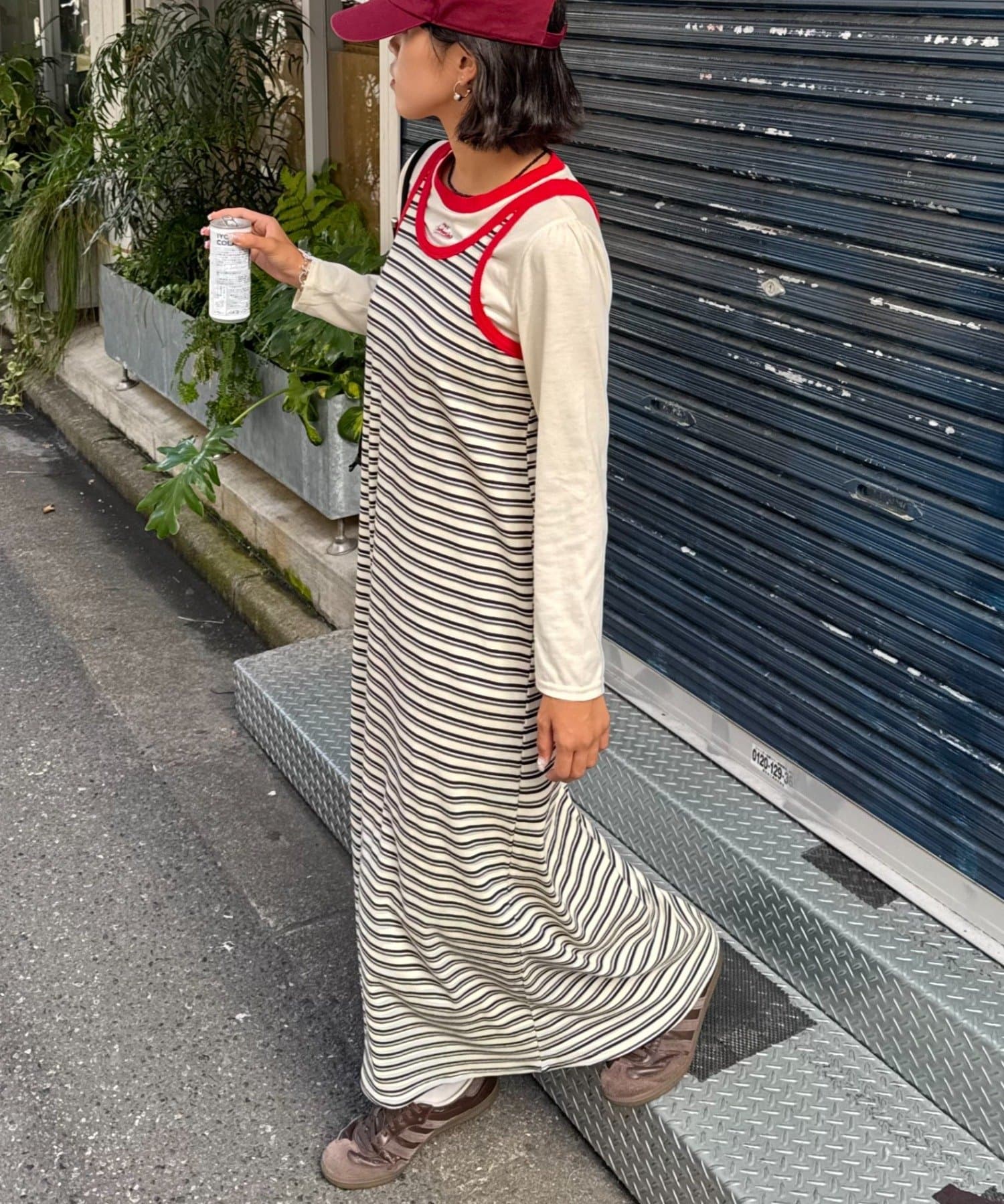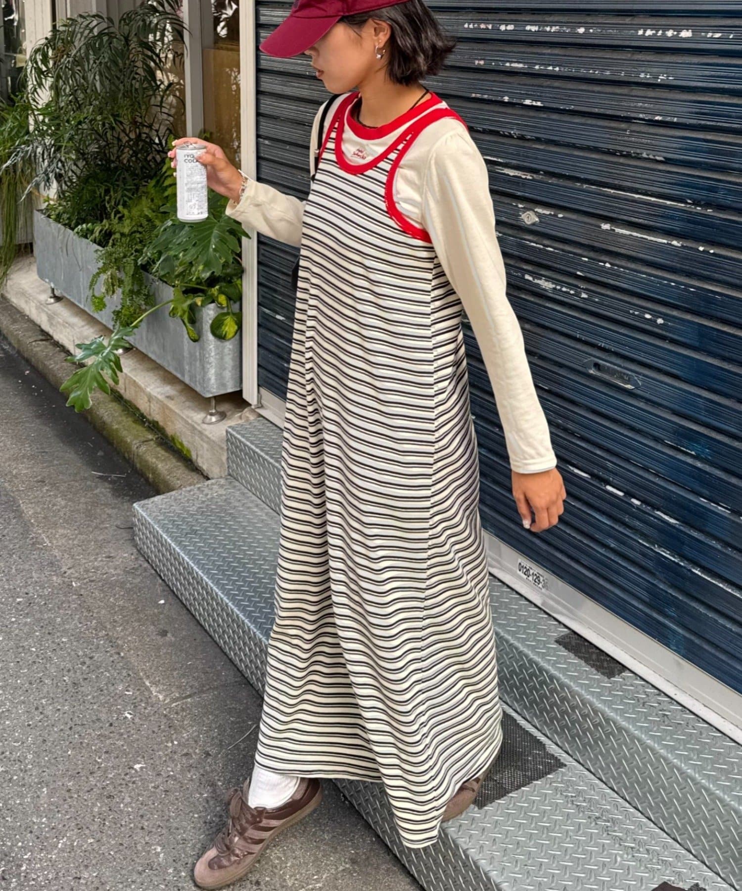 インナーは着回しやすく、ワンピースとのレイヤードスタイルで、よりおしゃれな着こなしが楽しめます。