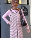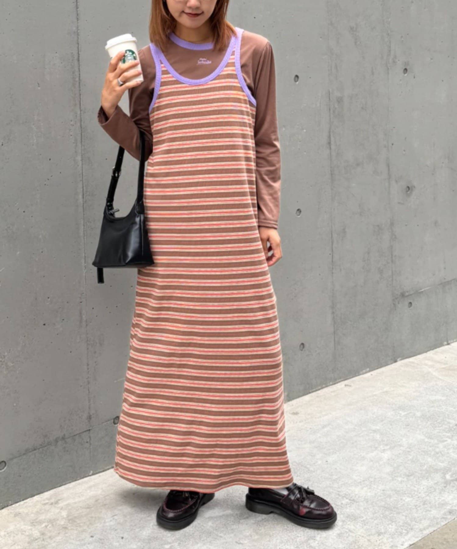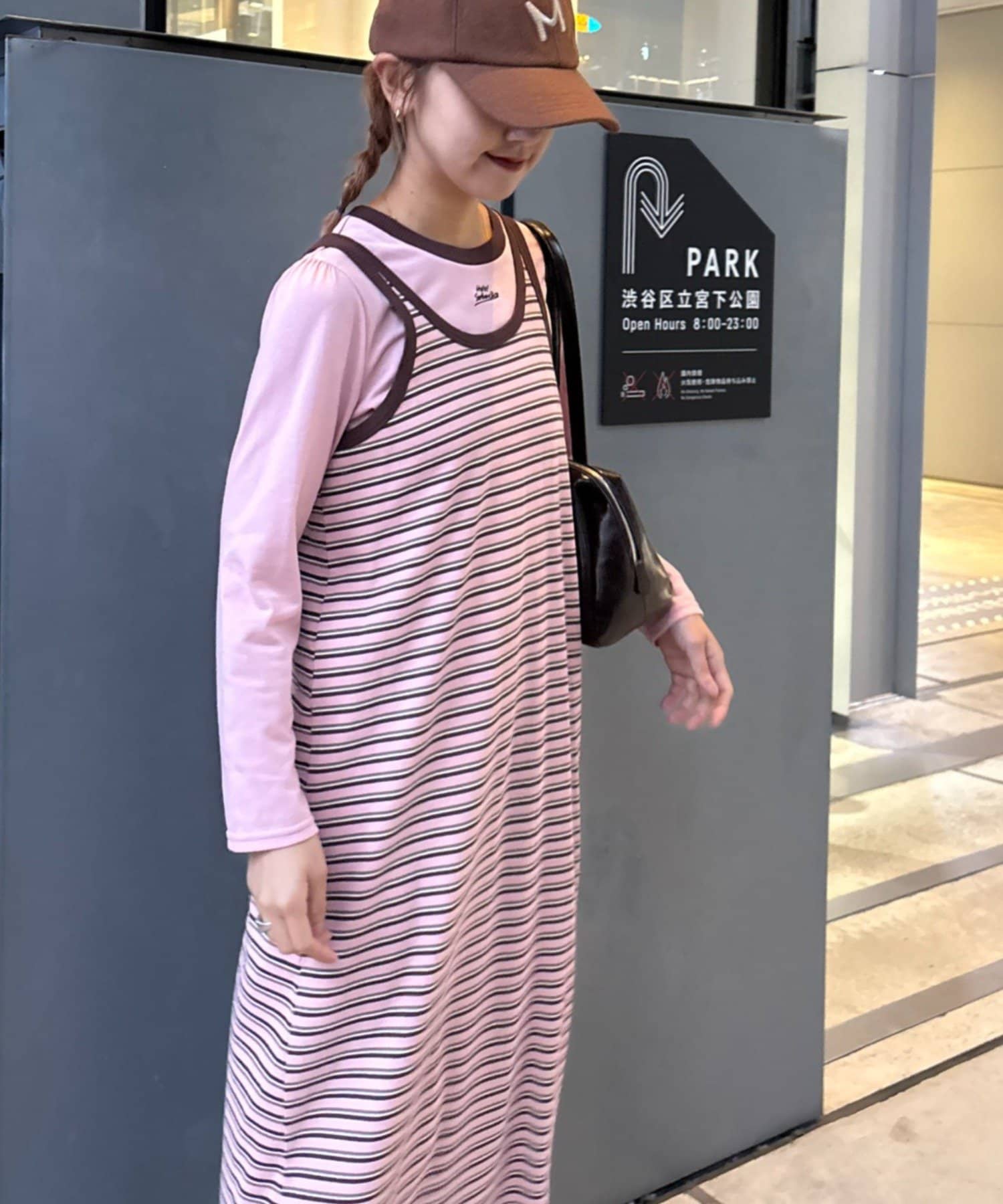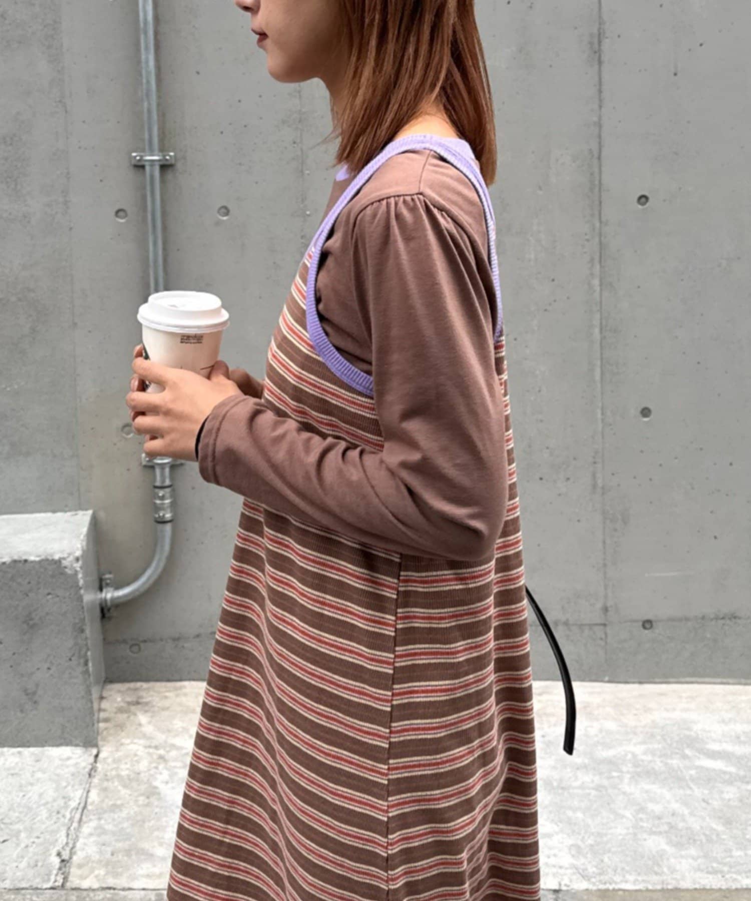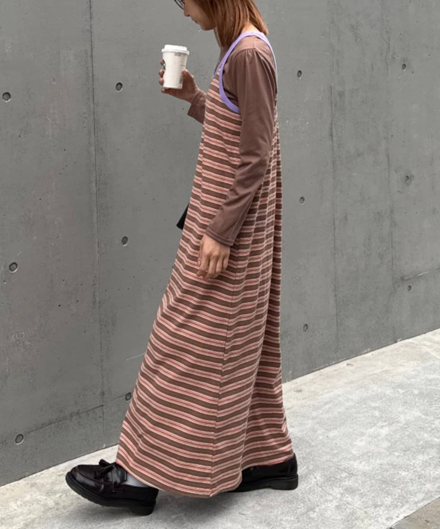 インナーは着回しやすく、ワンピースとのレイヤードスタイルで、よりおしゃれな着こなしが楽しめます。