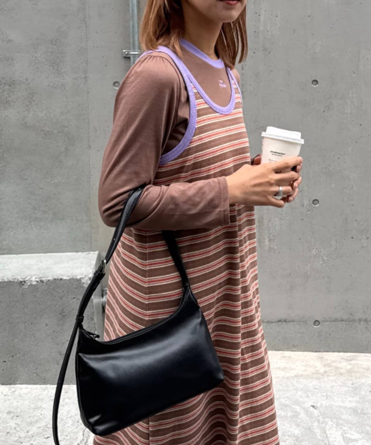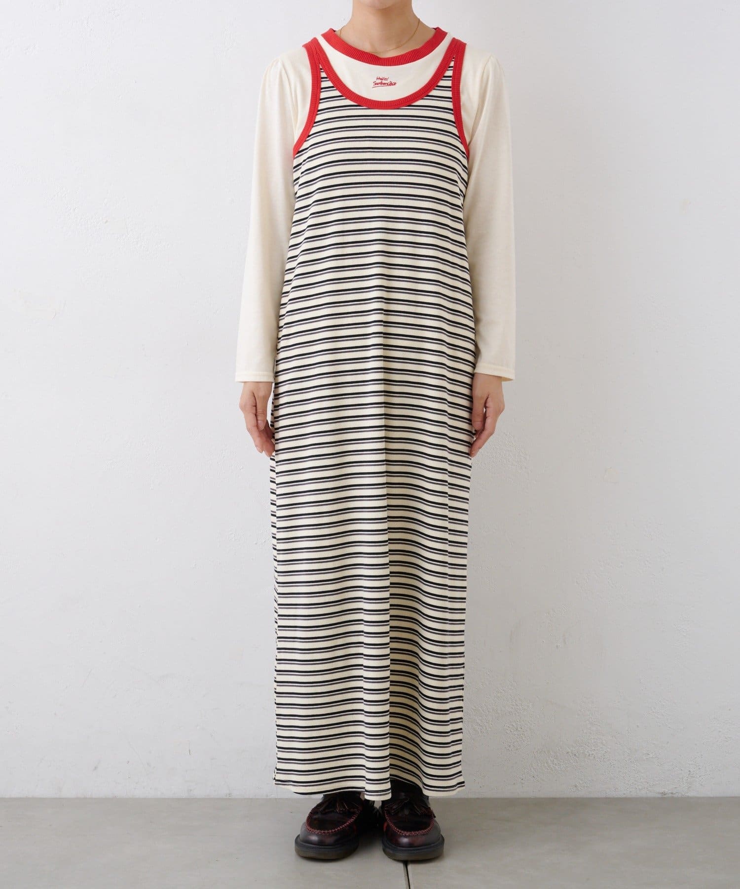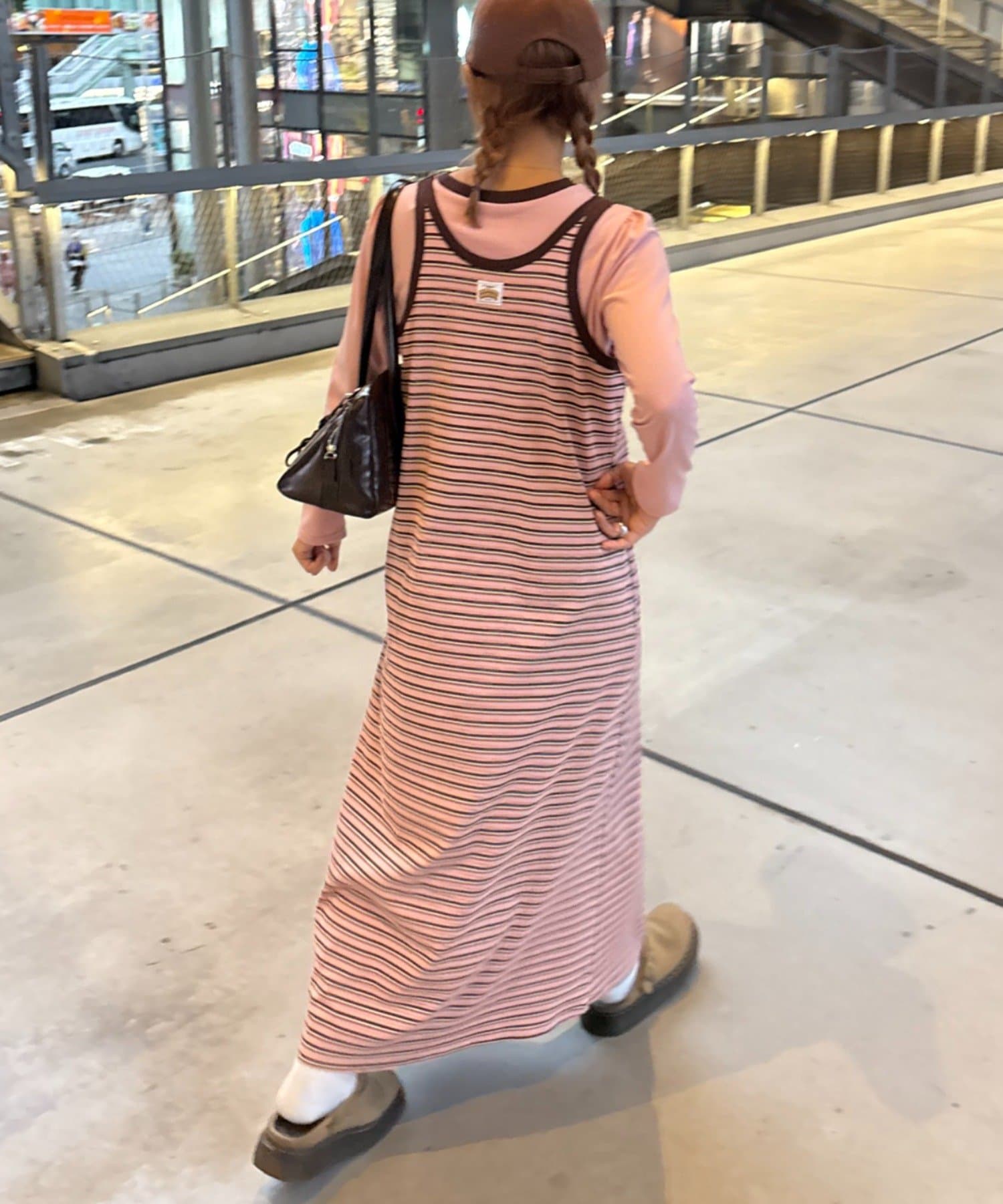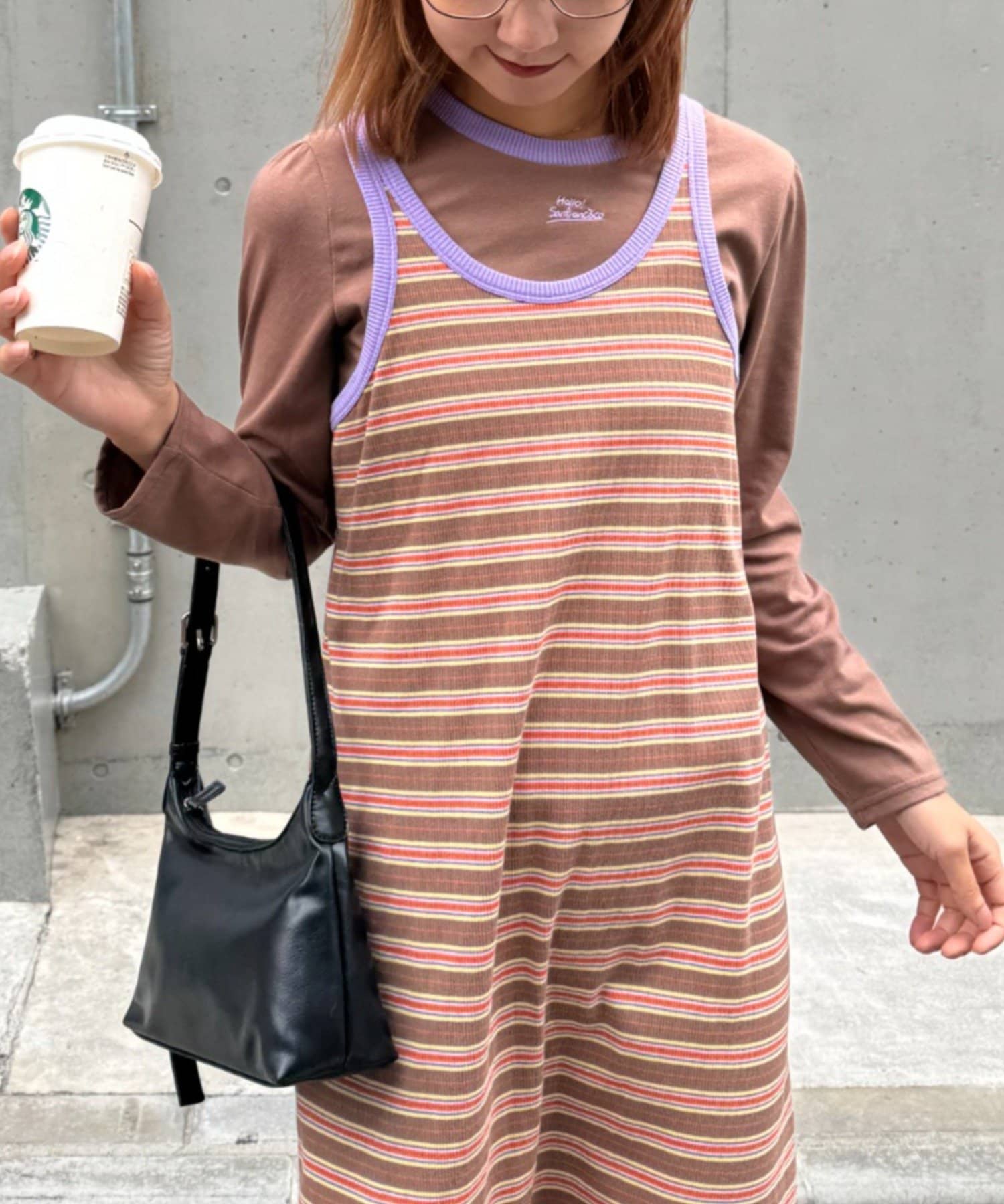 インナーは着回しやすく、ワンピースとのレイヤードスタイルで、よりおしゃれな着こなしが楽しめます。