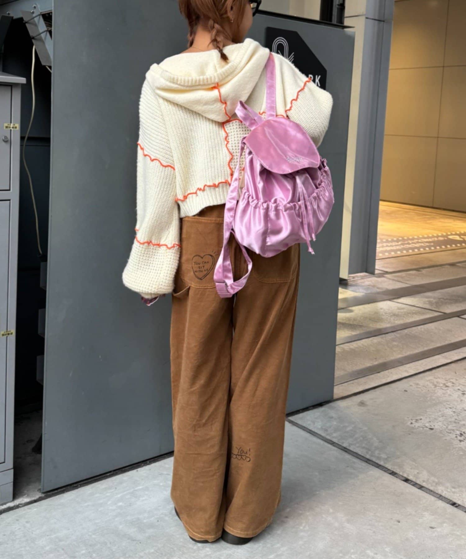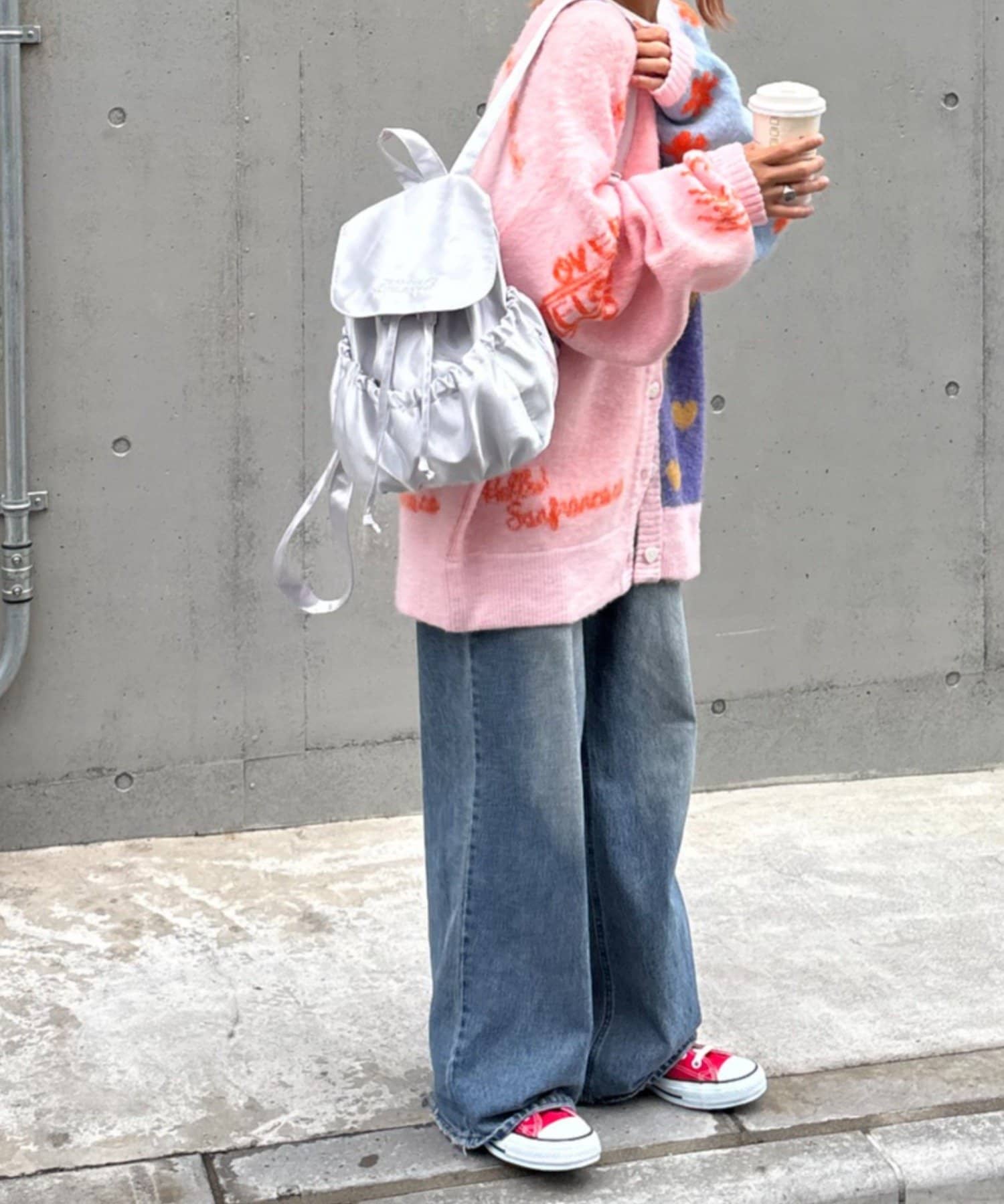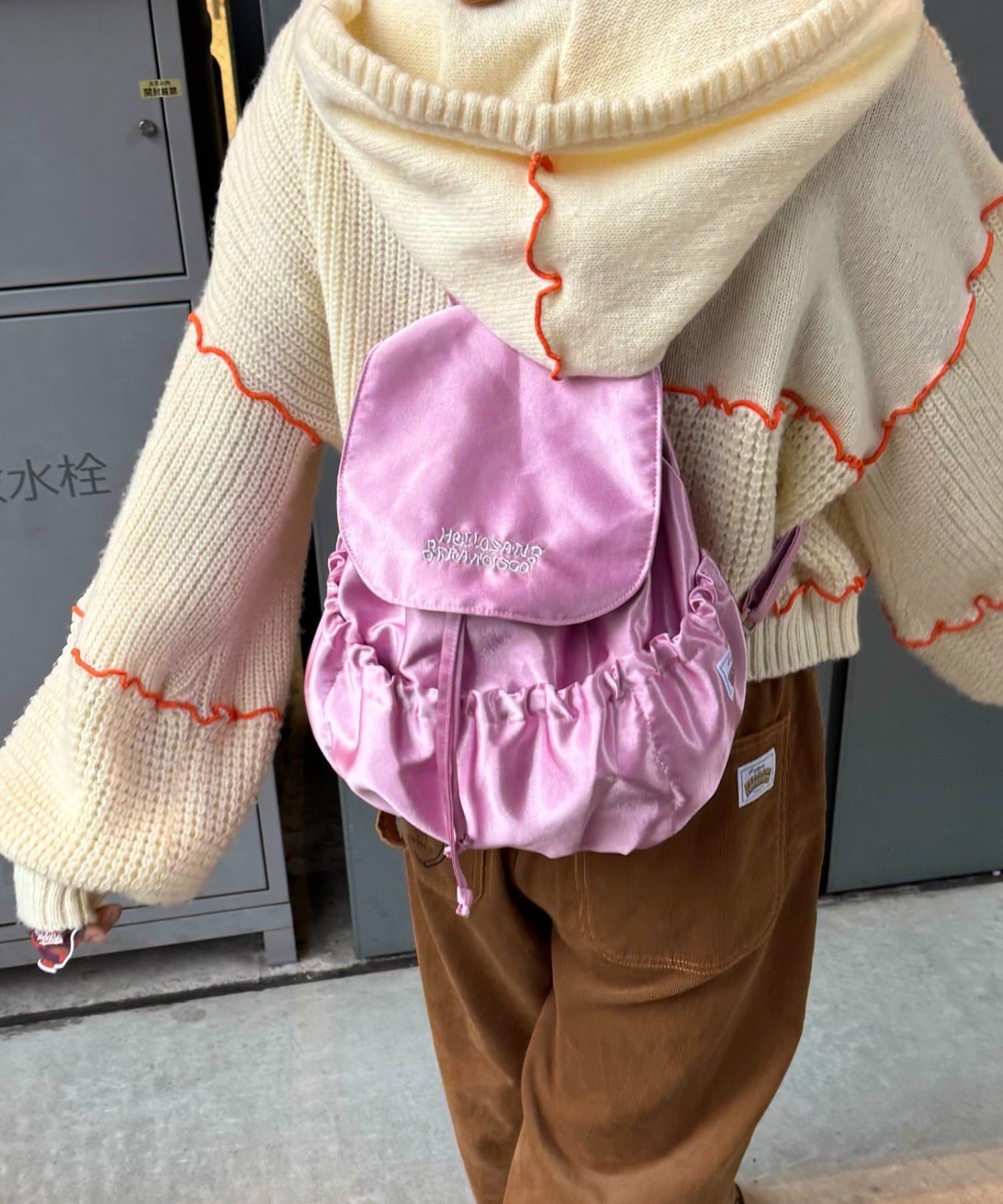 コロンとした巾着のようなシルエットが、女の子らしい雰囲気を演出してくれます。