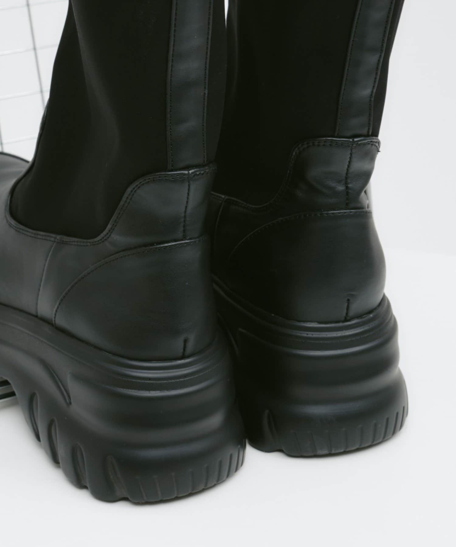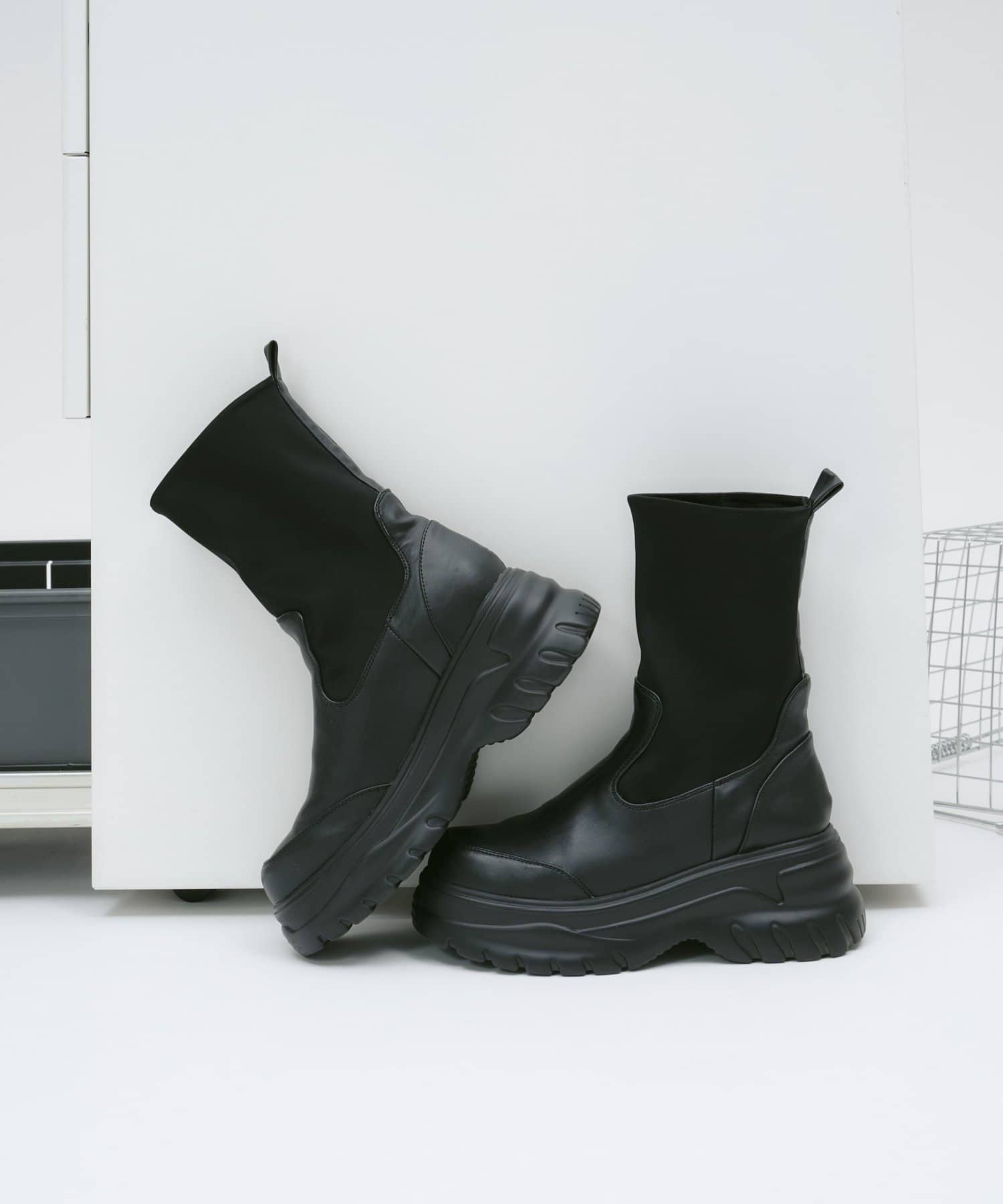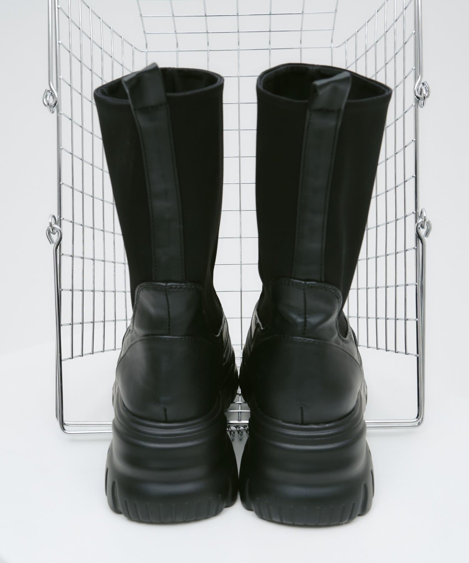 【yomo企画】ストレッチ厚底ミドルブーツ