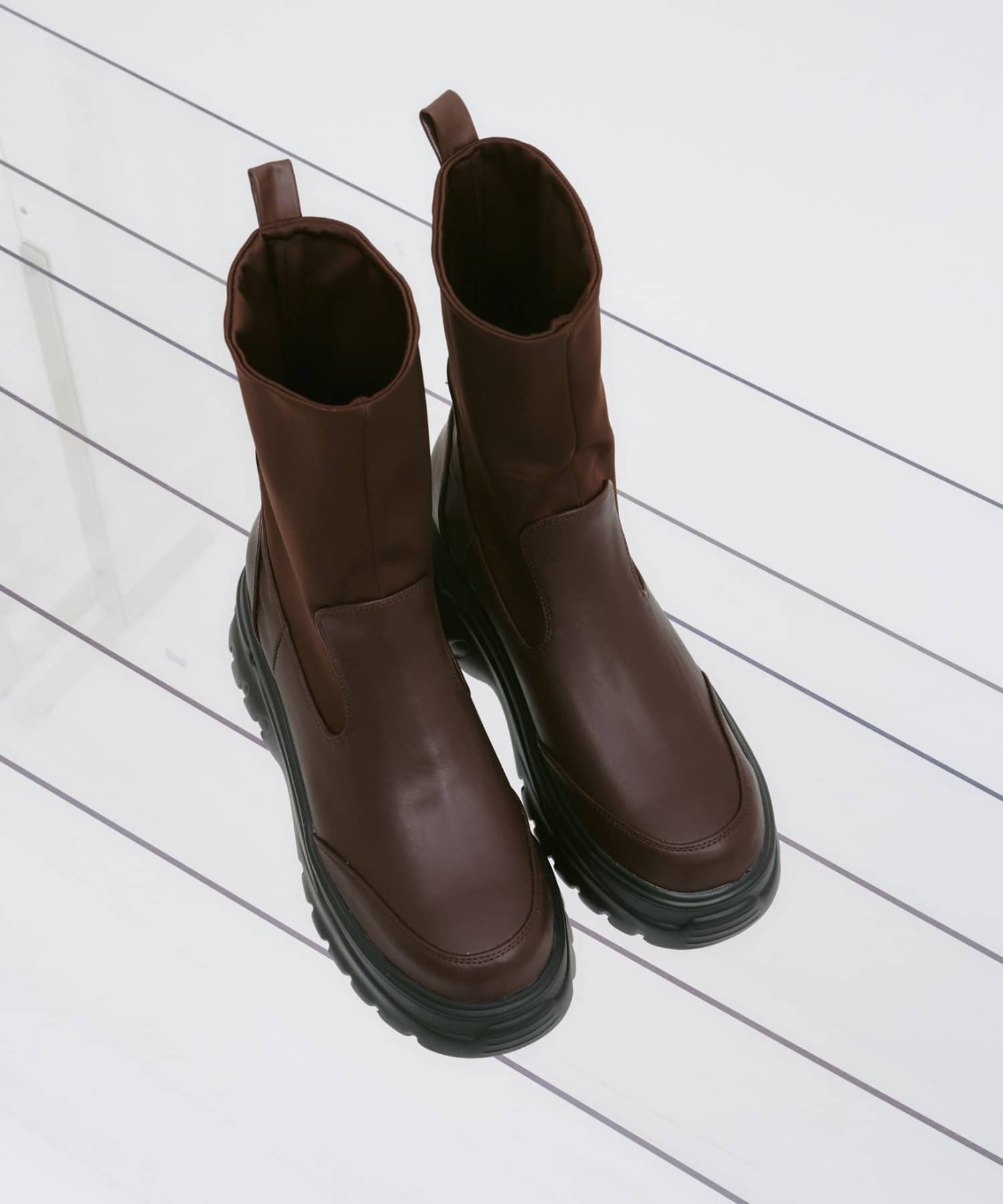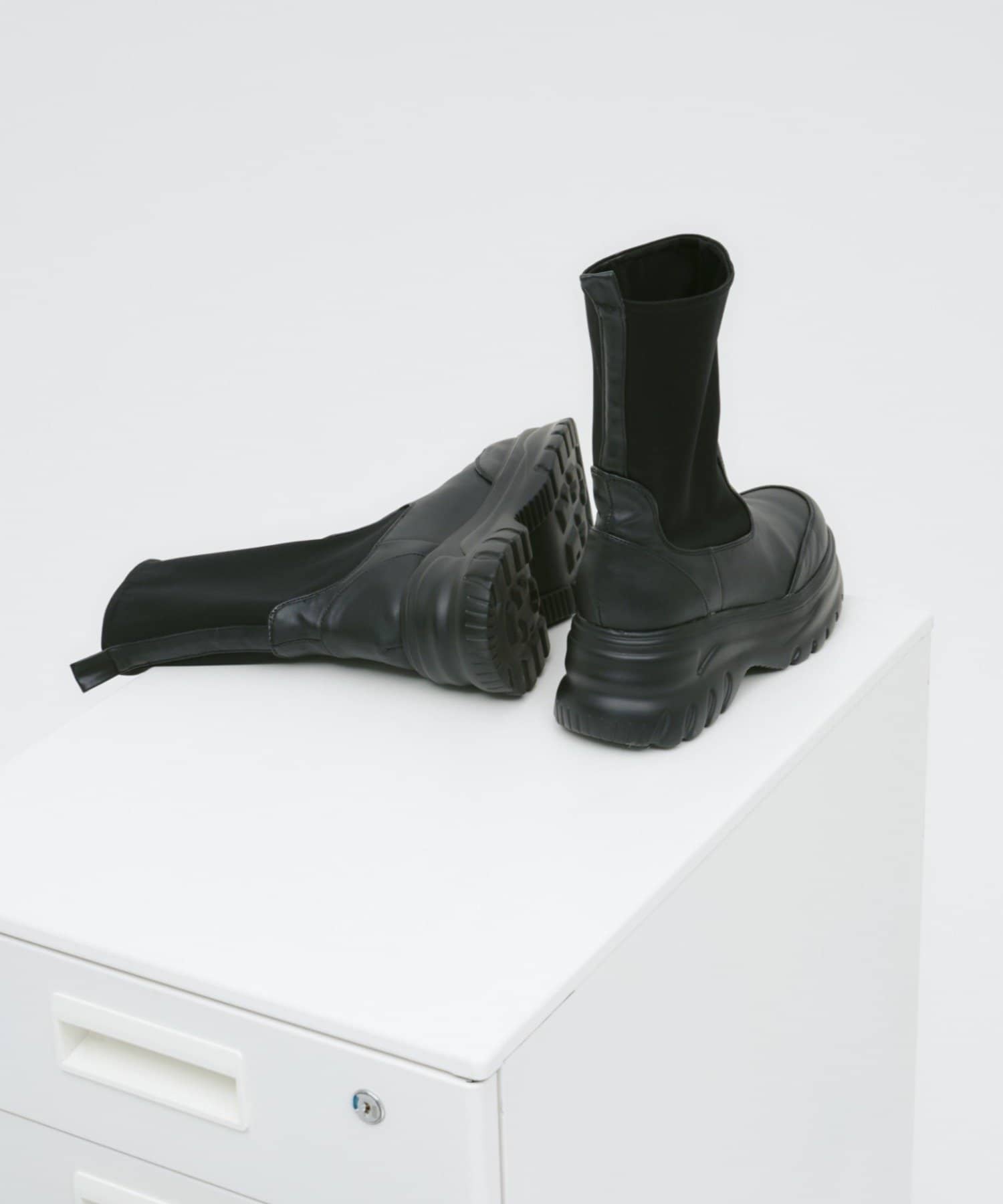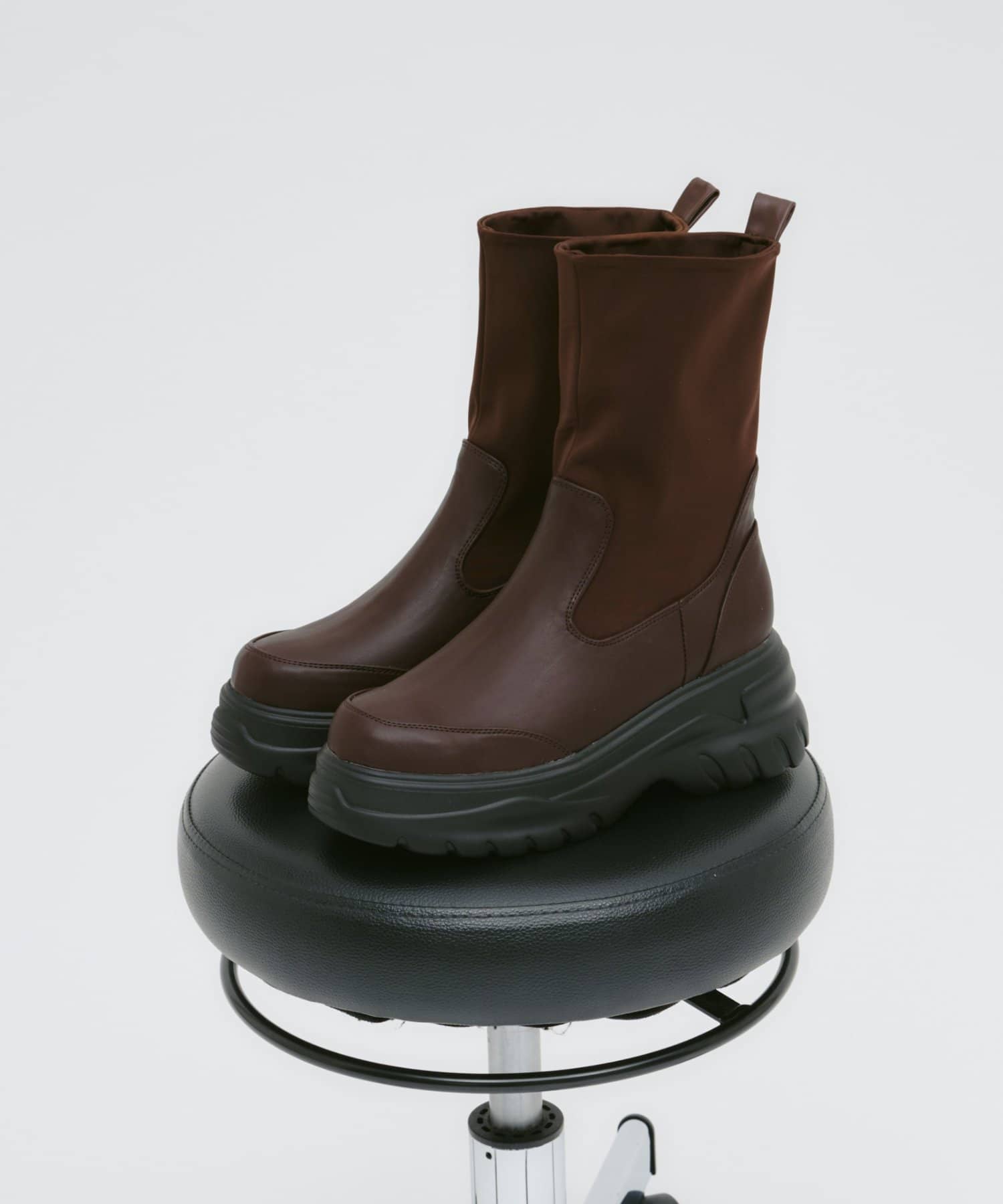【yomo企画】ストレッチ厚底ミドルブーツ