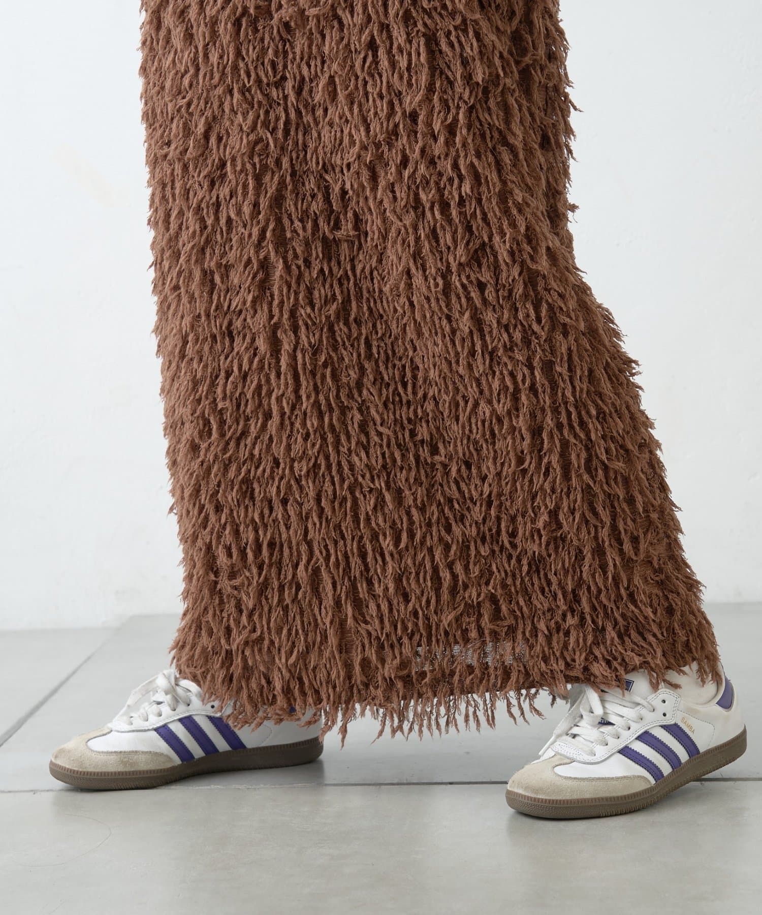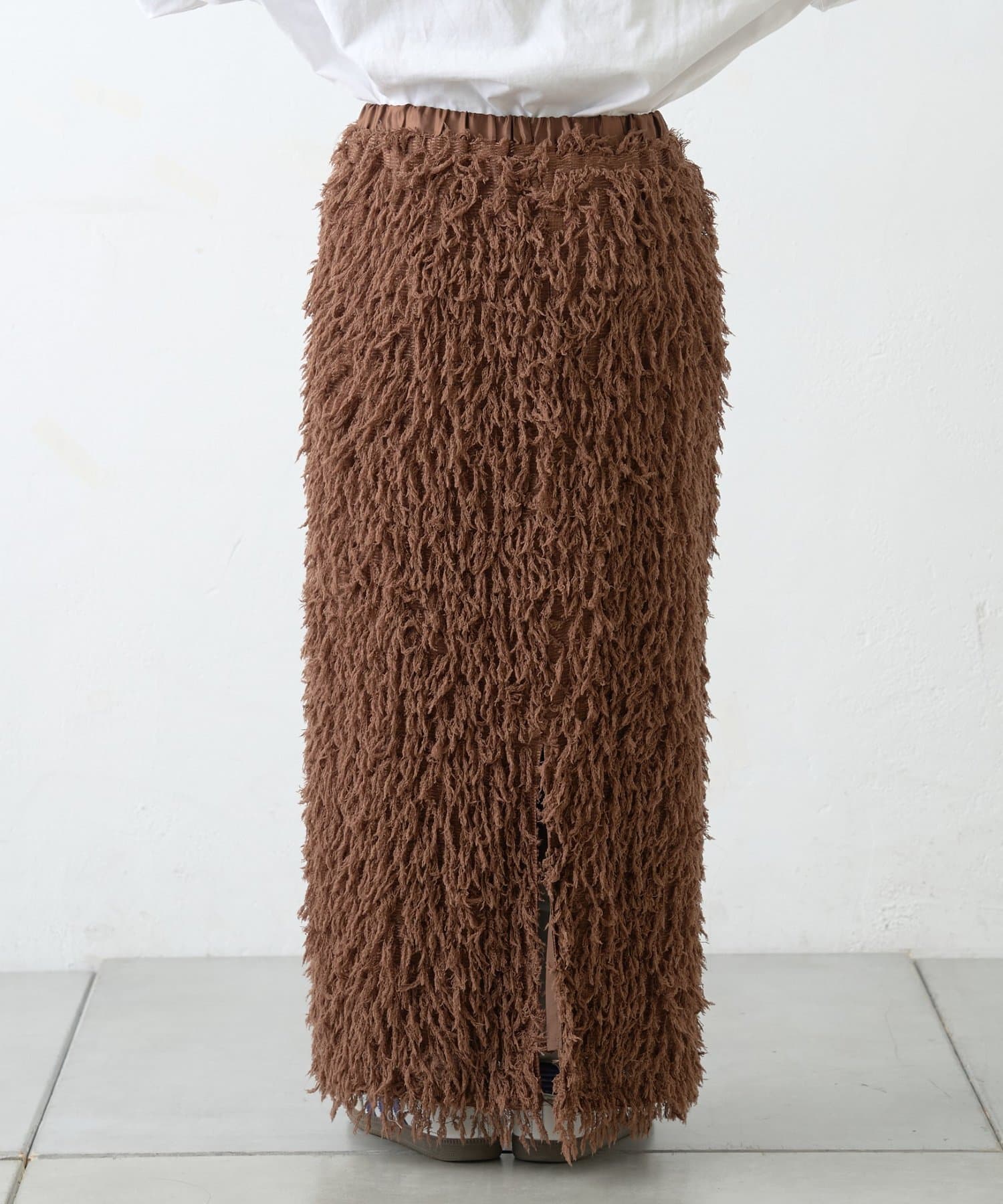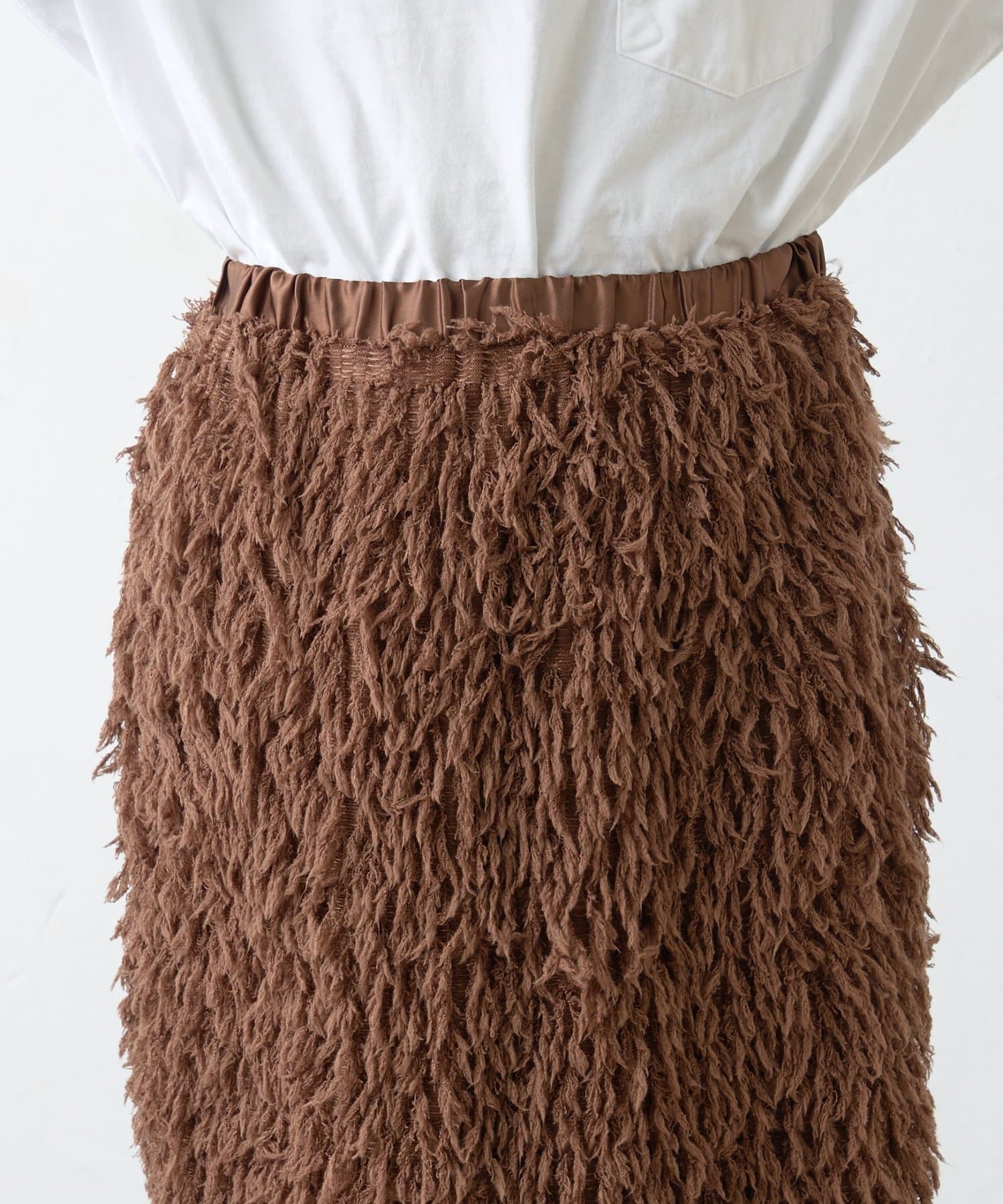 毛足の長いフェザーフリンジの動くたび揺れる生地感が可愛い!