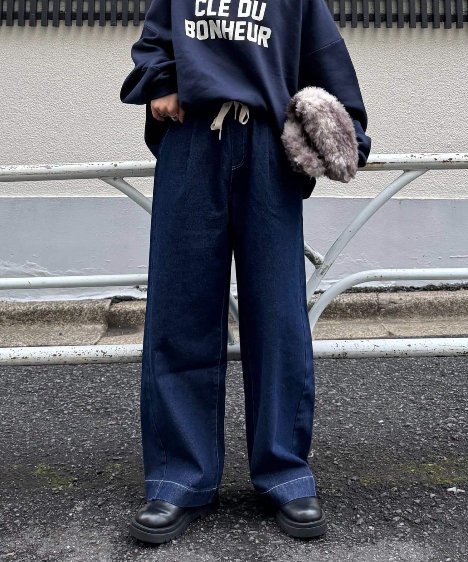 ▶【3サイズ展開】デニムバレルイージーパンツ