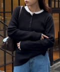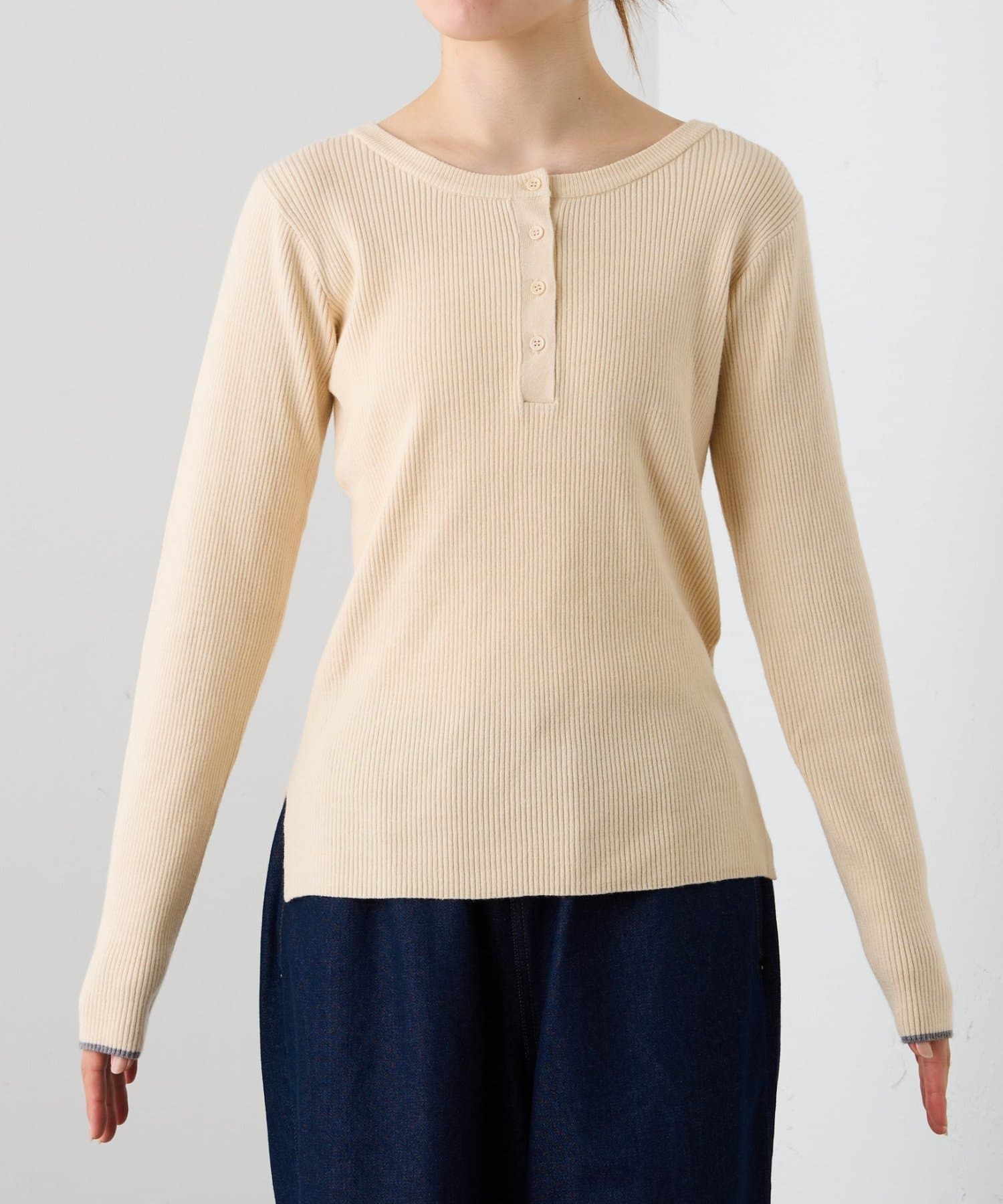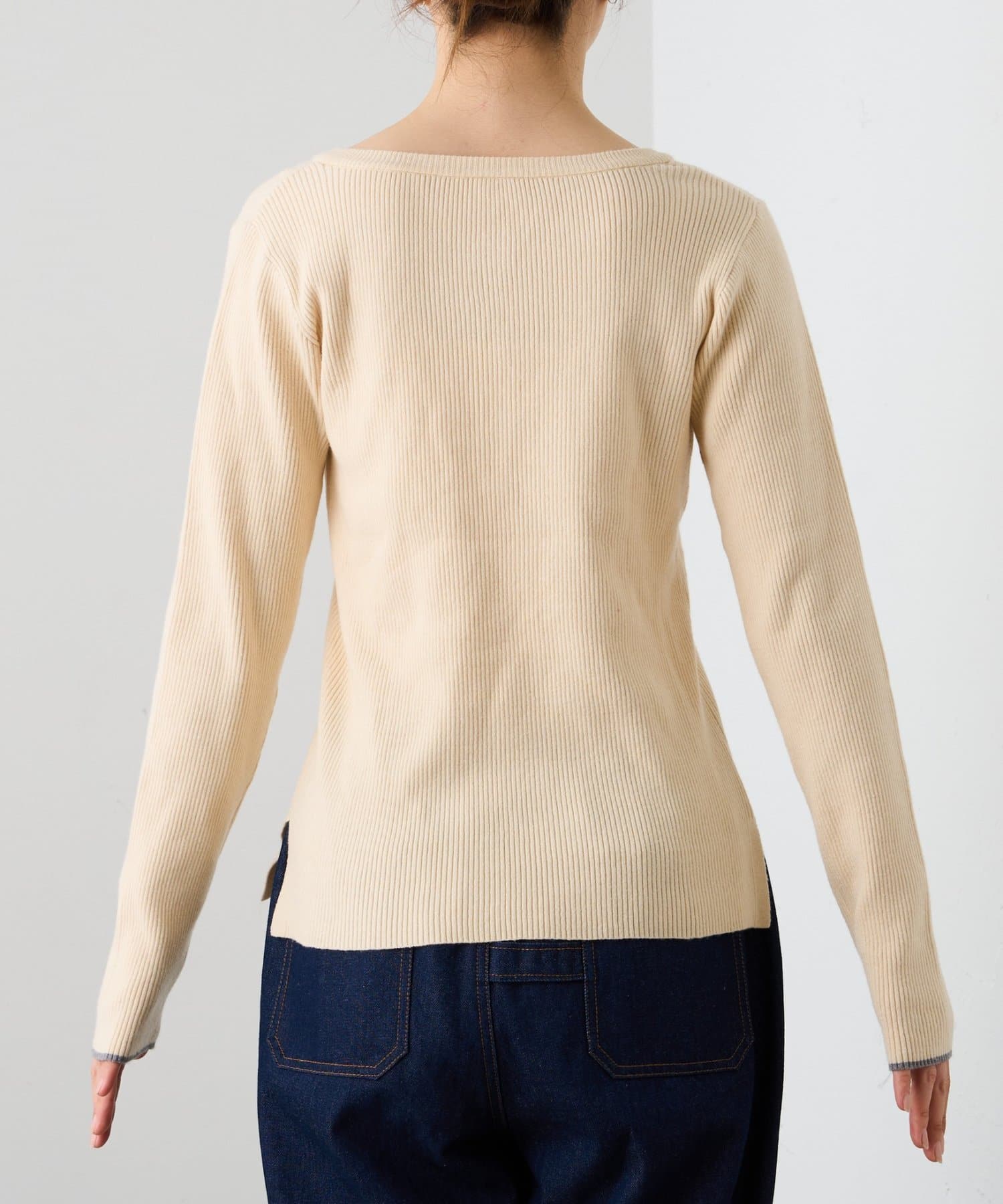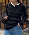 ヘンリーネック配色アンチピリングニット