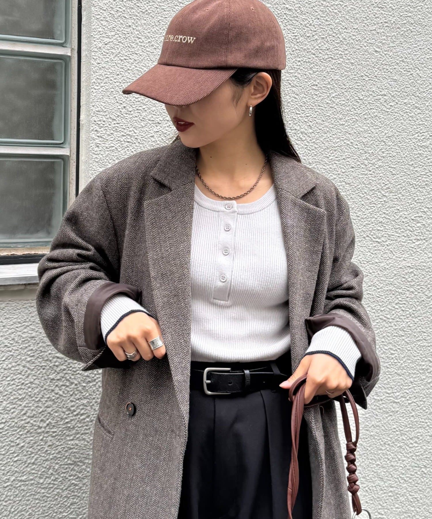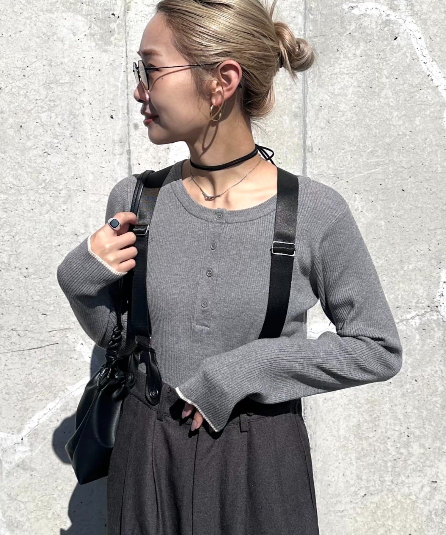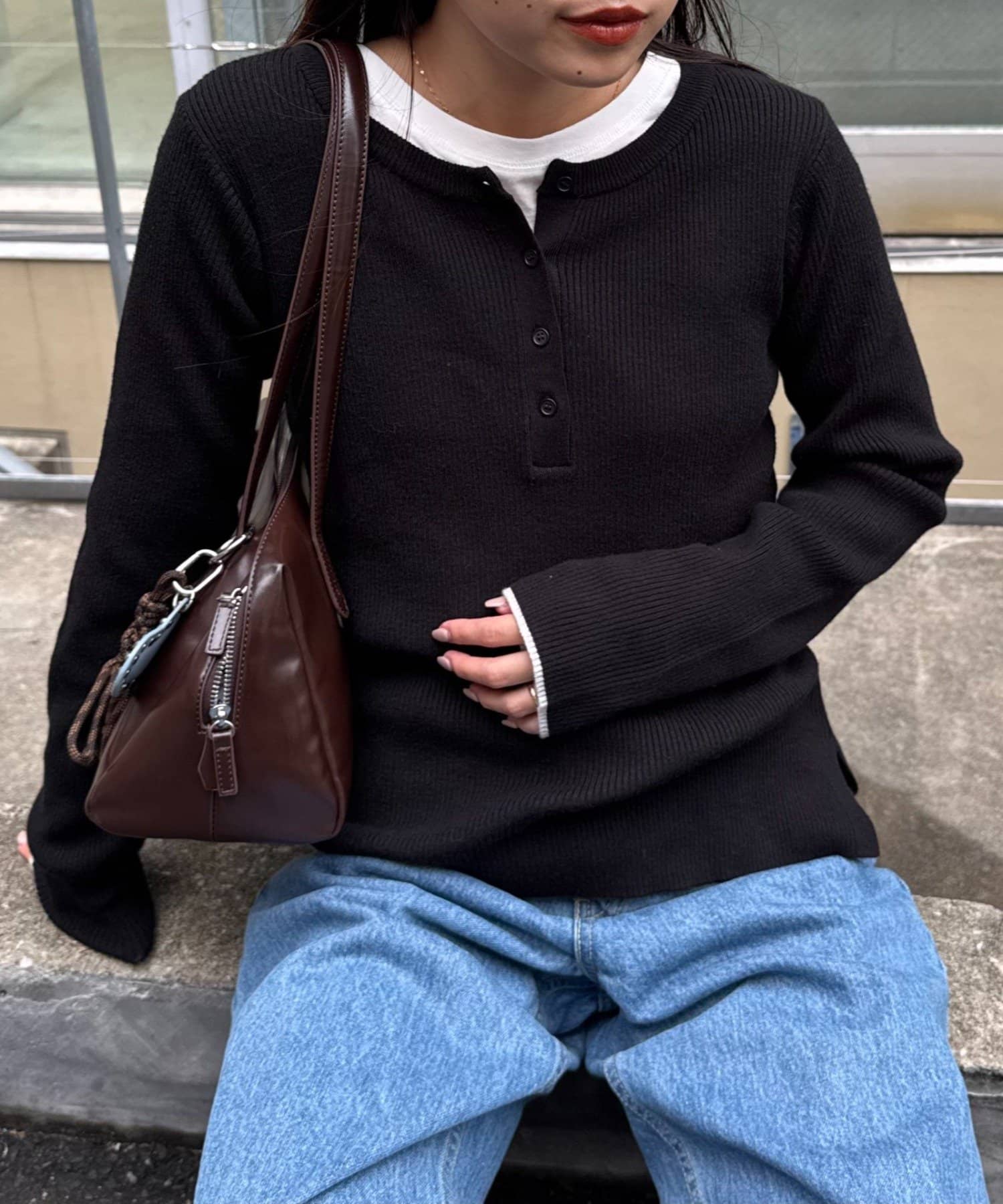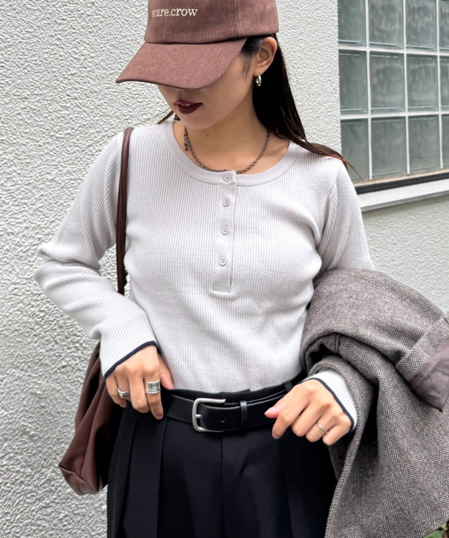 抜け感ヘンリーネックでシンプルスタイルもお洒落に