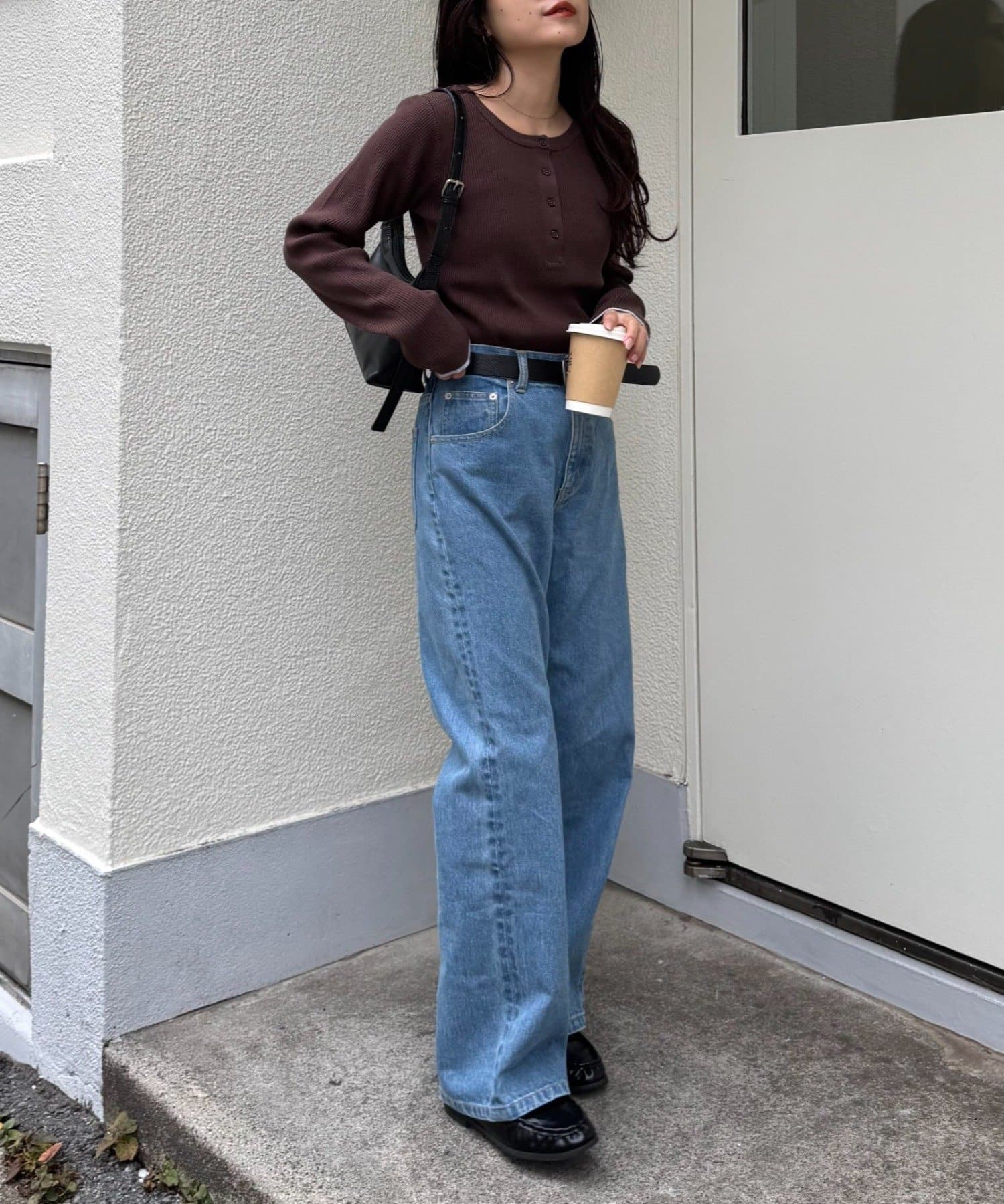 抜け感ヘンリーネックでシンプルスタイルもお洒落に