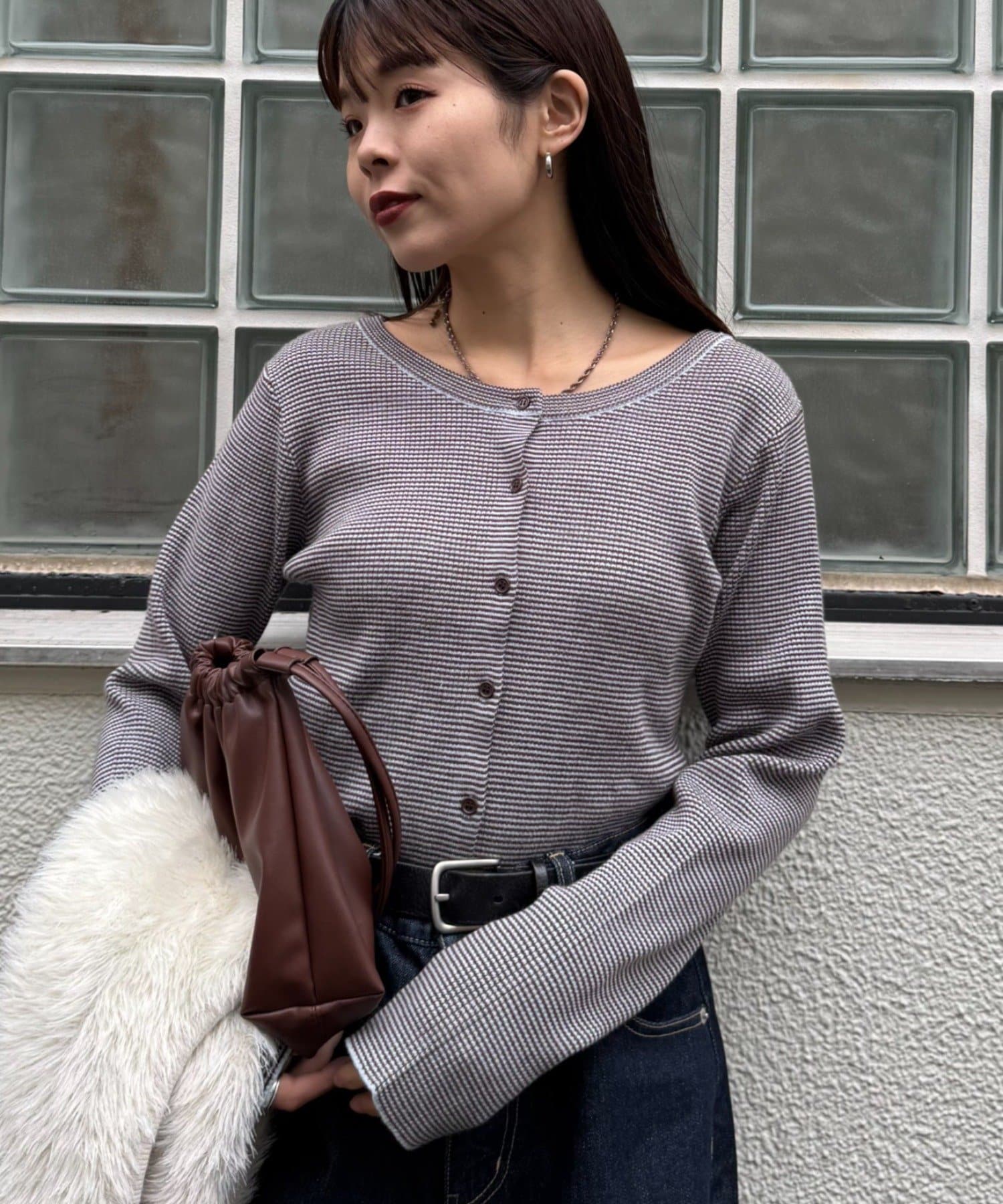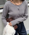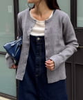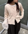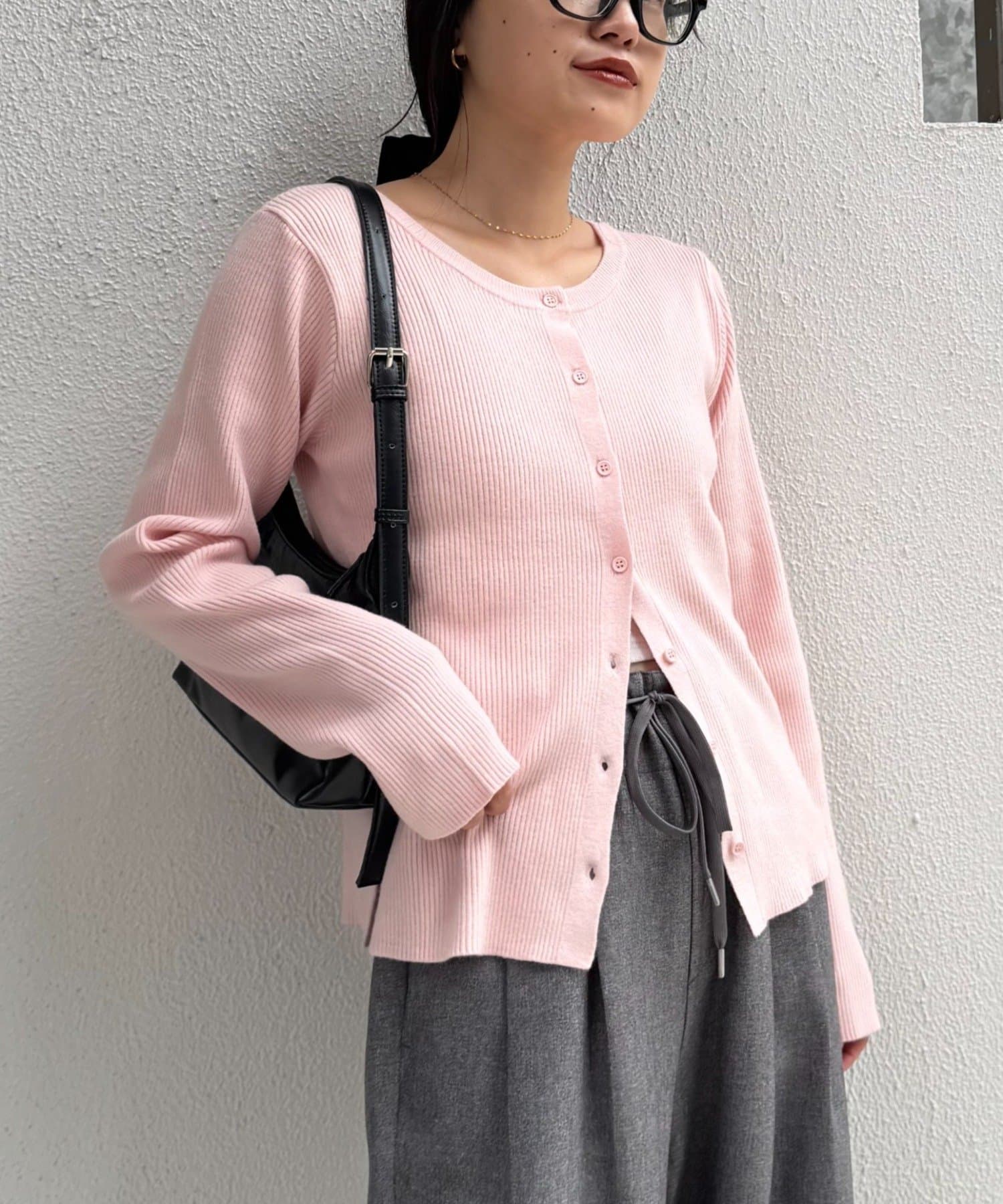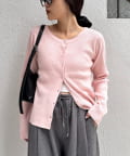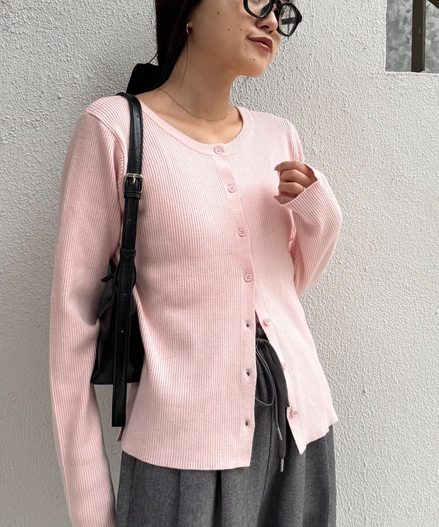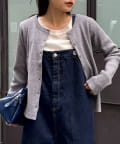 ボタンを前にしてカーデとしても、後ろにしてプルオーバー風にも着こなせる