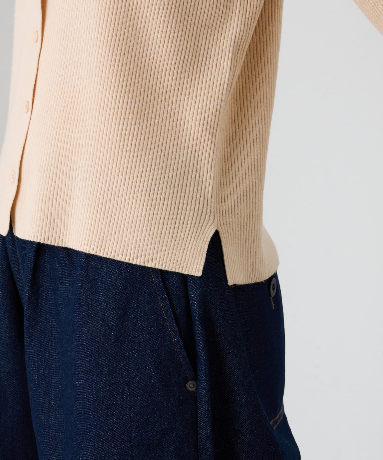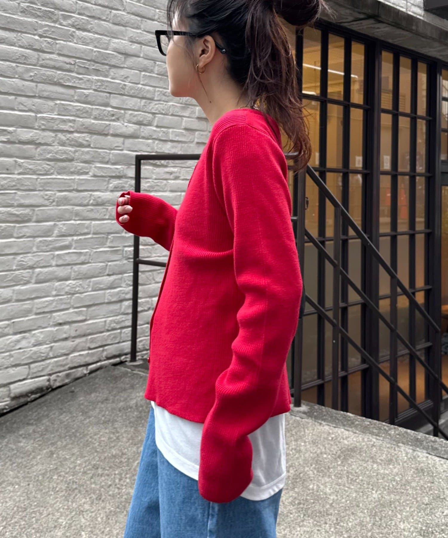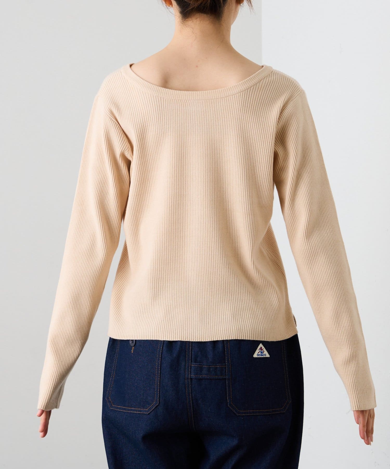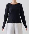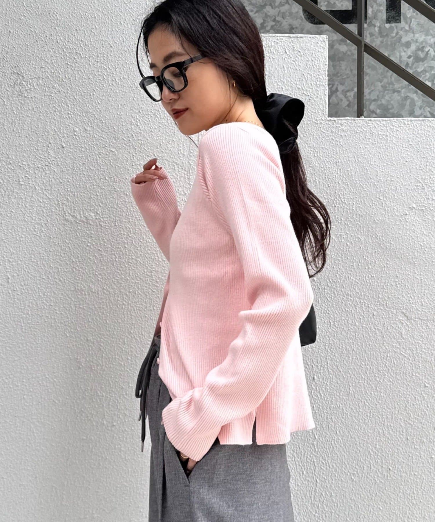 また、程よくフィットするリブと長めの袖が、華奢な印象でカジュアルすぎない雰囲気に。