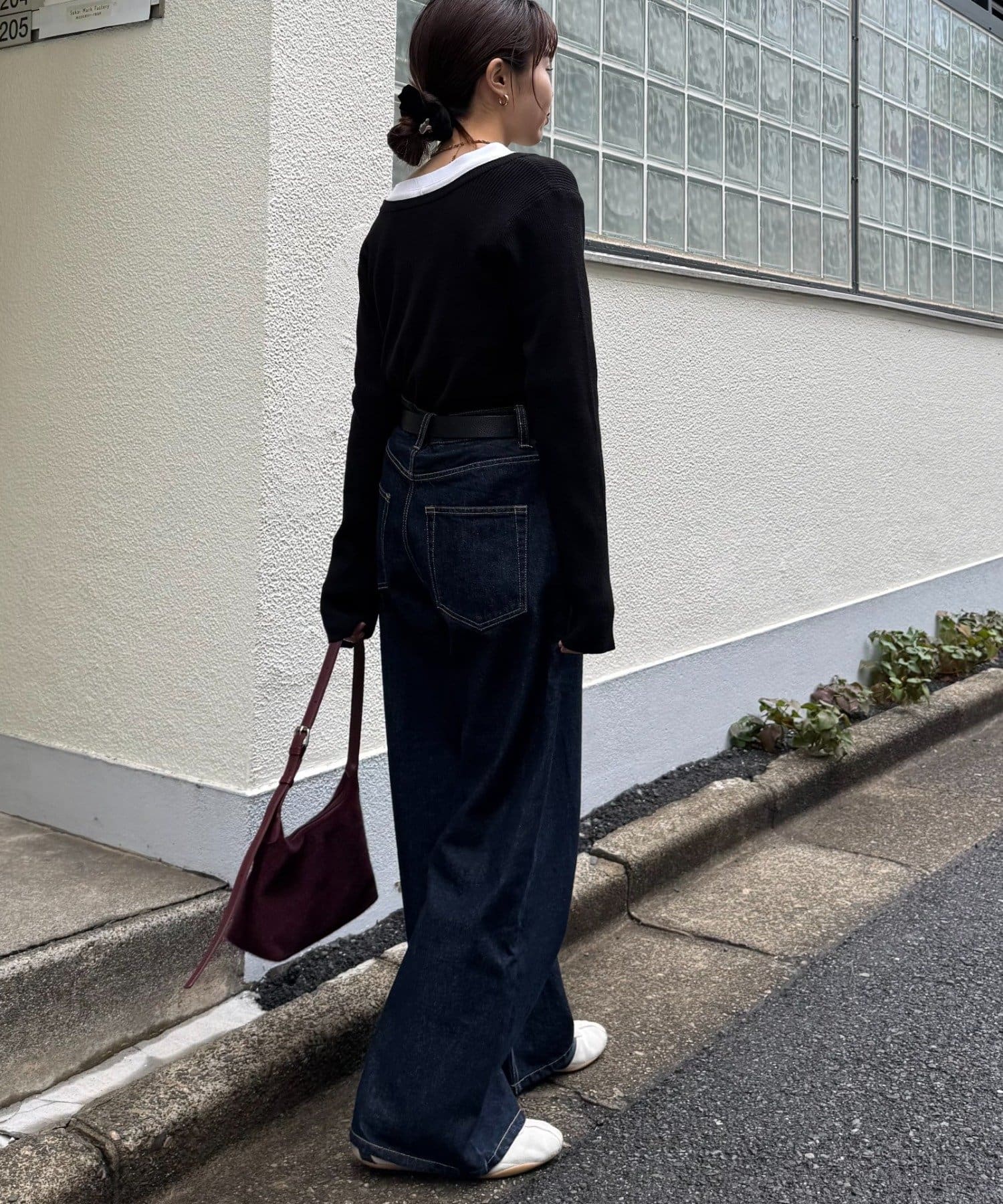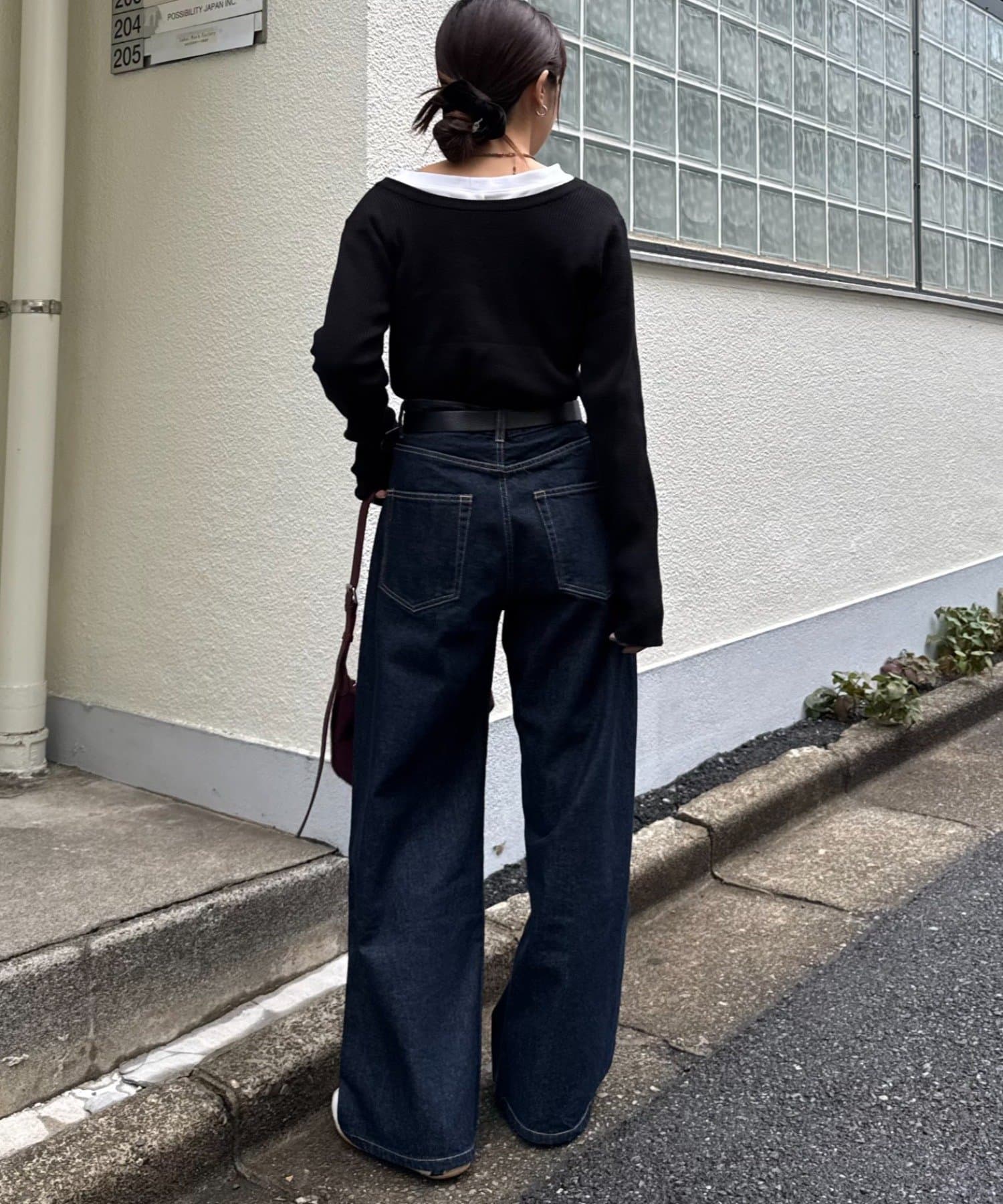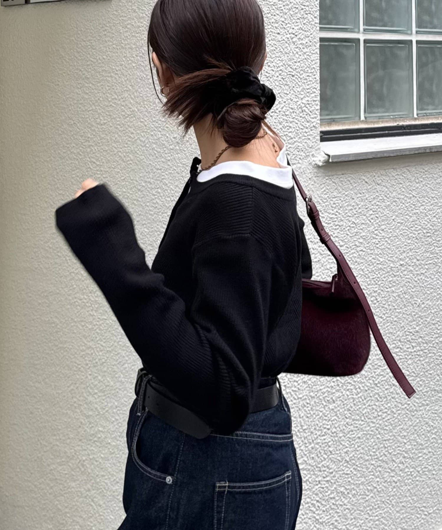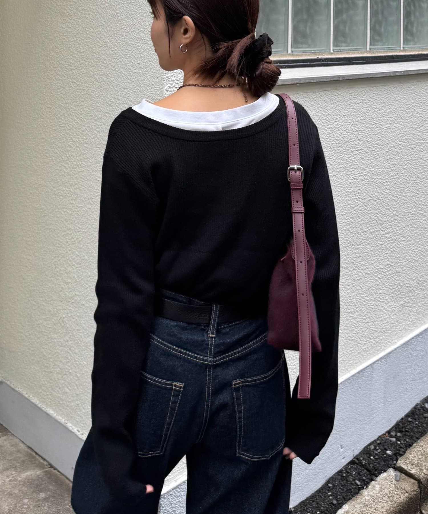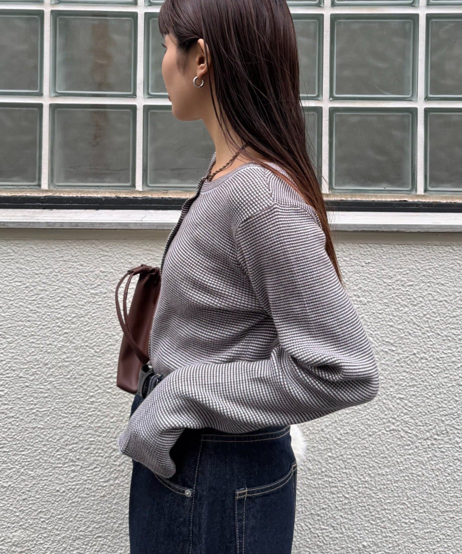 また、程よくフィットするリブと長めの袖が、華奢な印象でカジュアルすぎない雰囲気に。