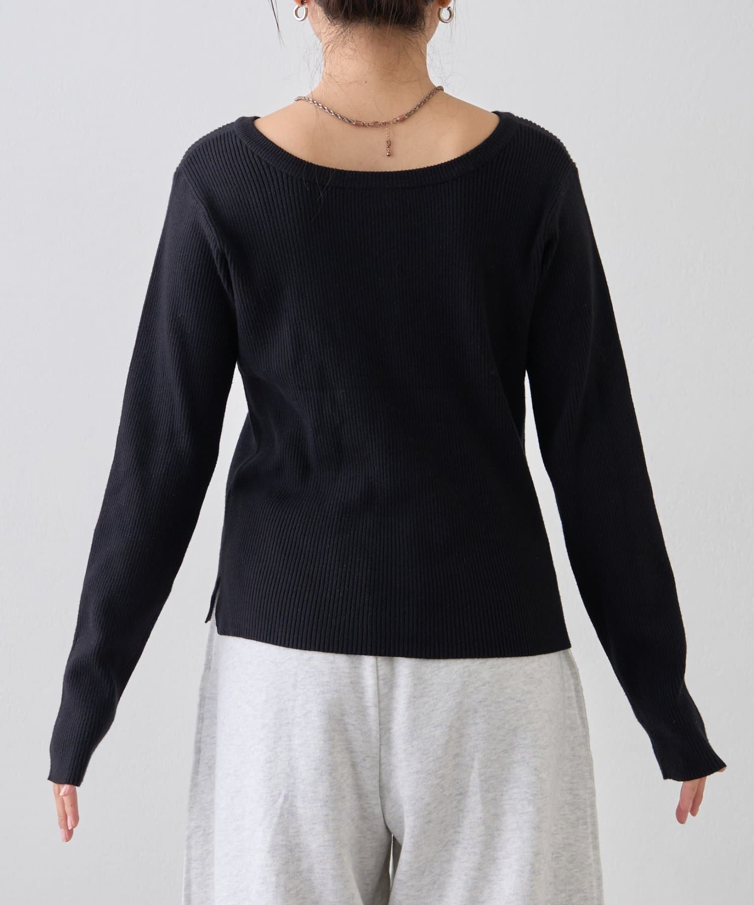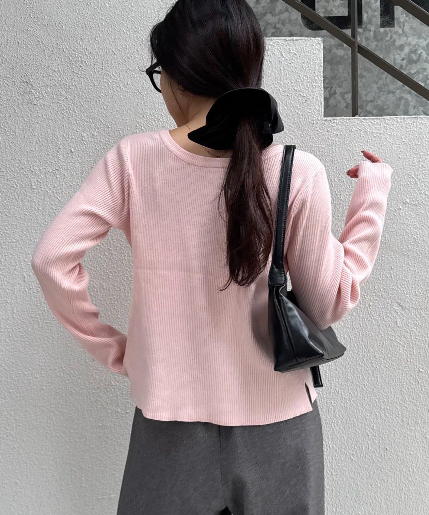 ボタンを後ろにしてシンプルなトップスとしても◎