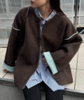 配色デザインが映える!!ふんわり柔らかニットジャケット