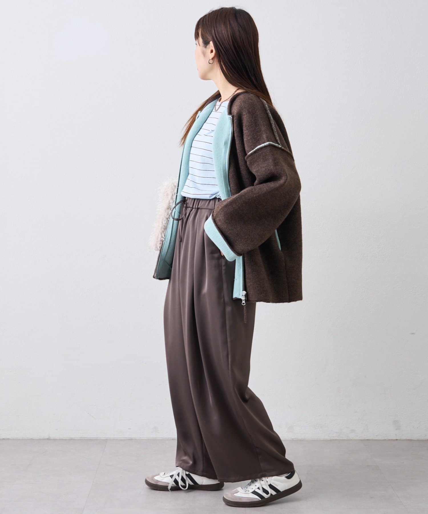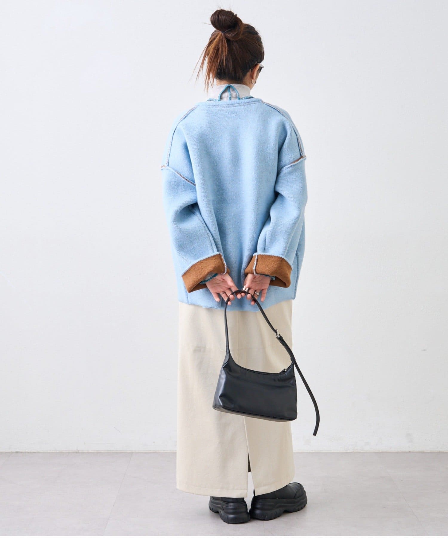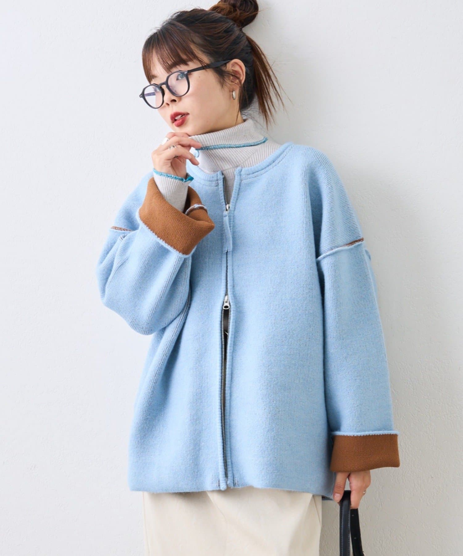 また、おすすめは袖を折り返して配色を見せる着方。一気にこなれた印象を演出◎