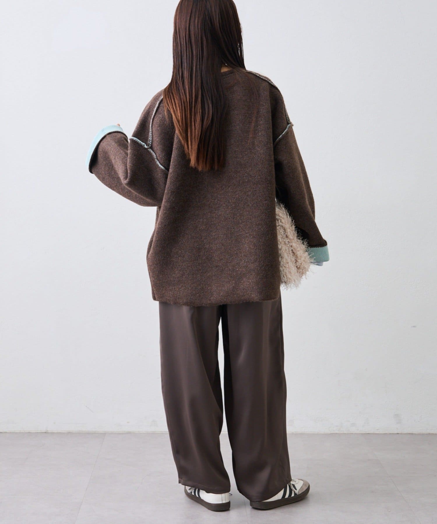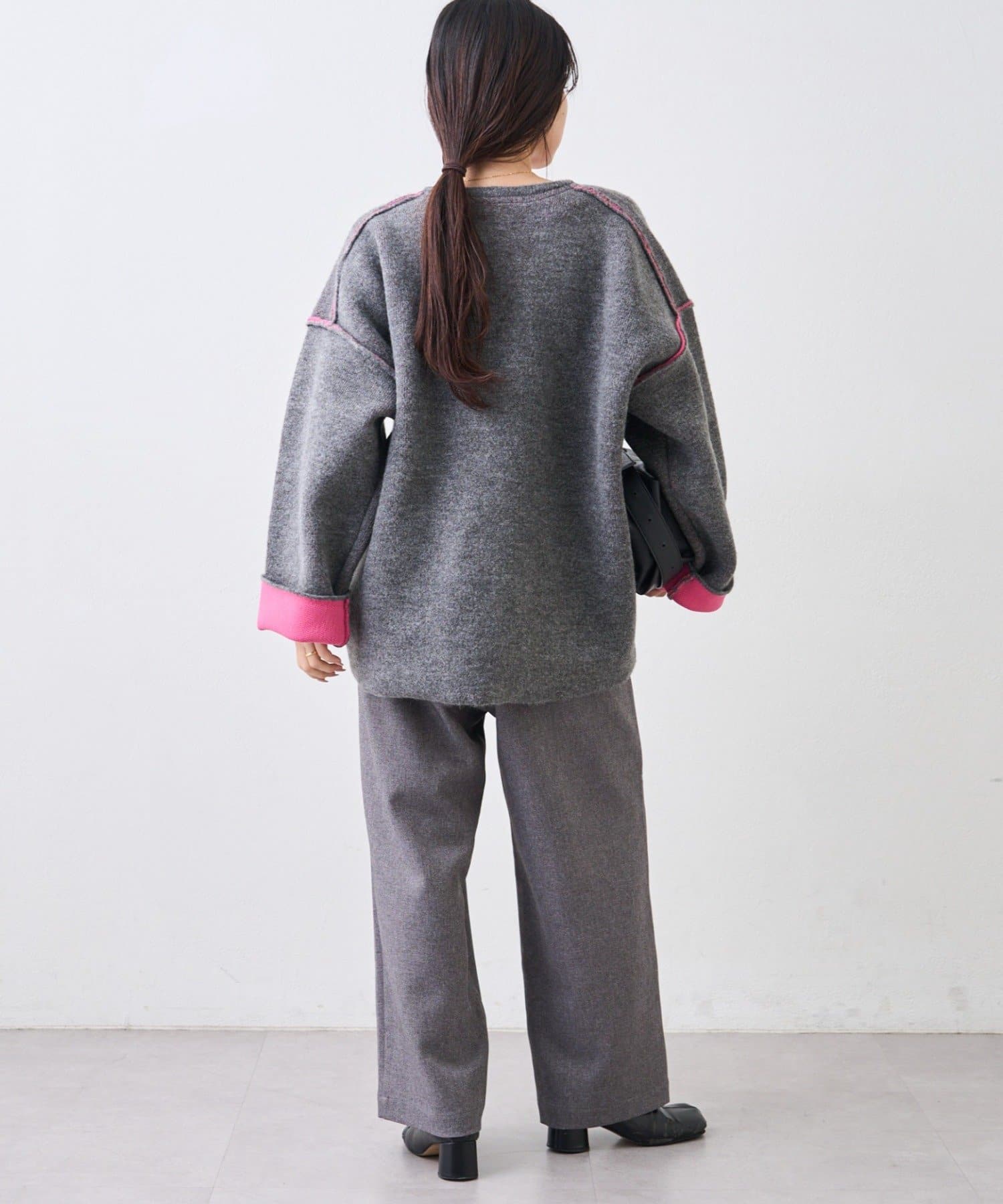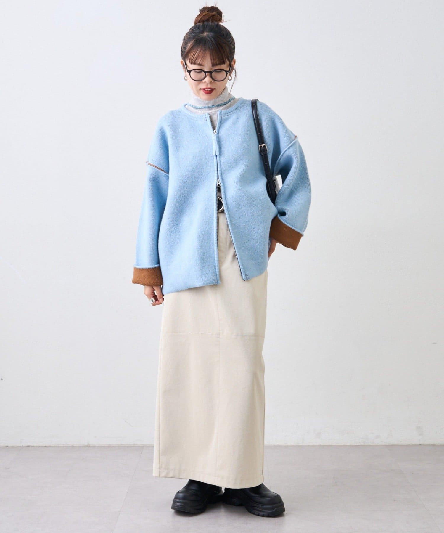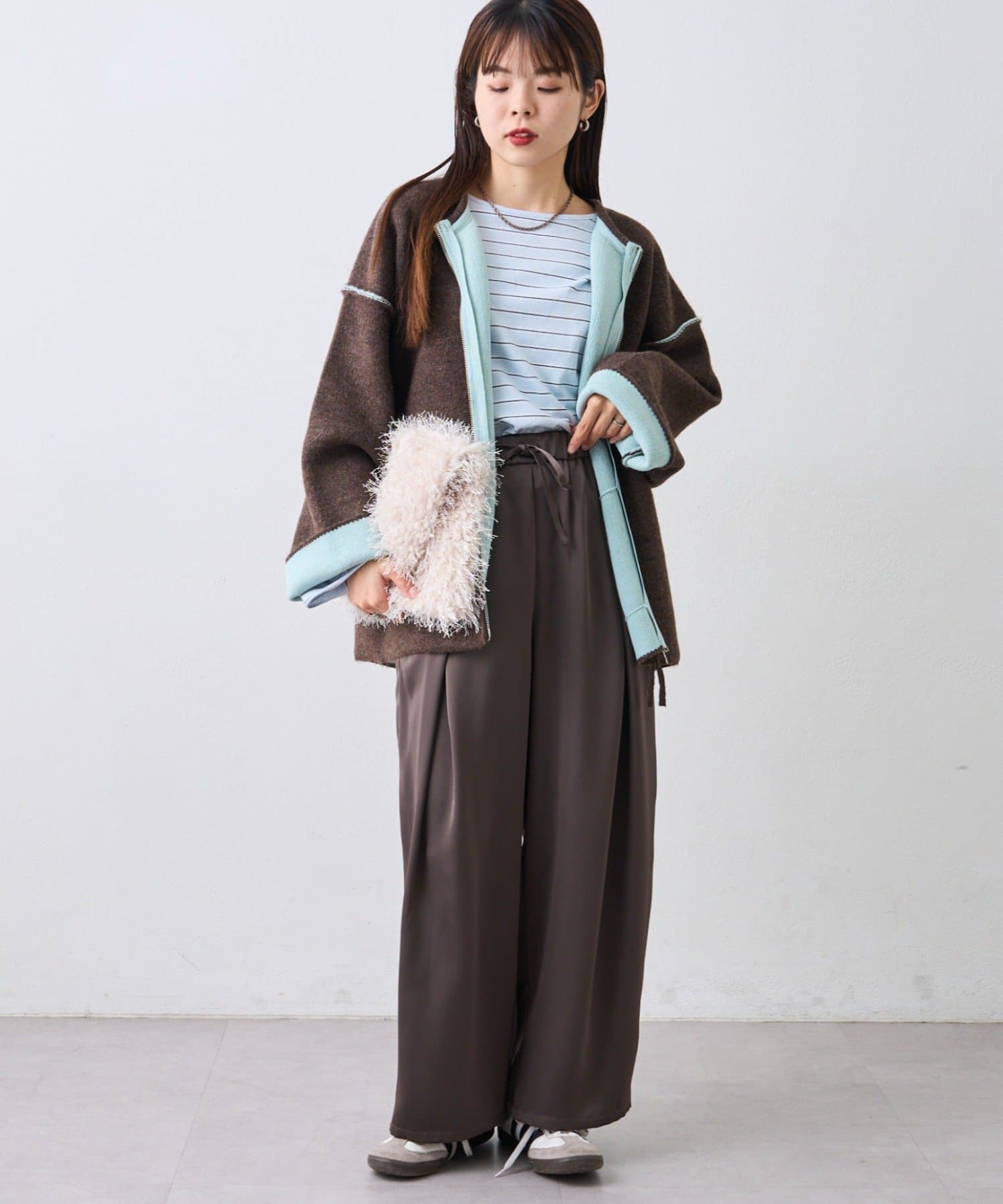 また、おすすめは袖を折り返して配色を見せる着方。一気にこなれた印象を演出◎