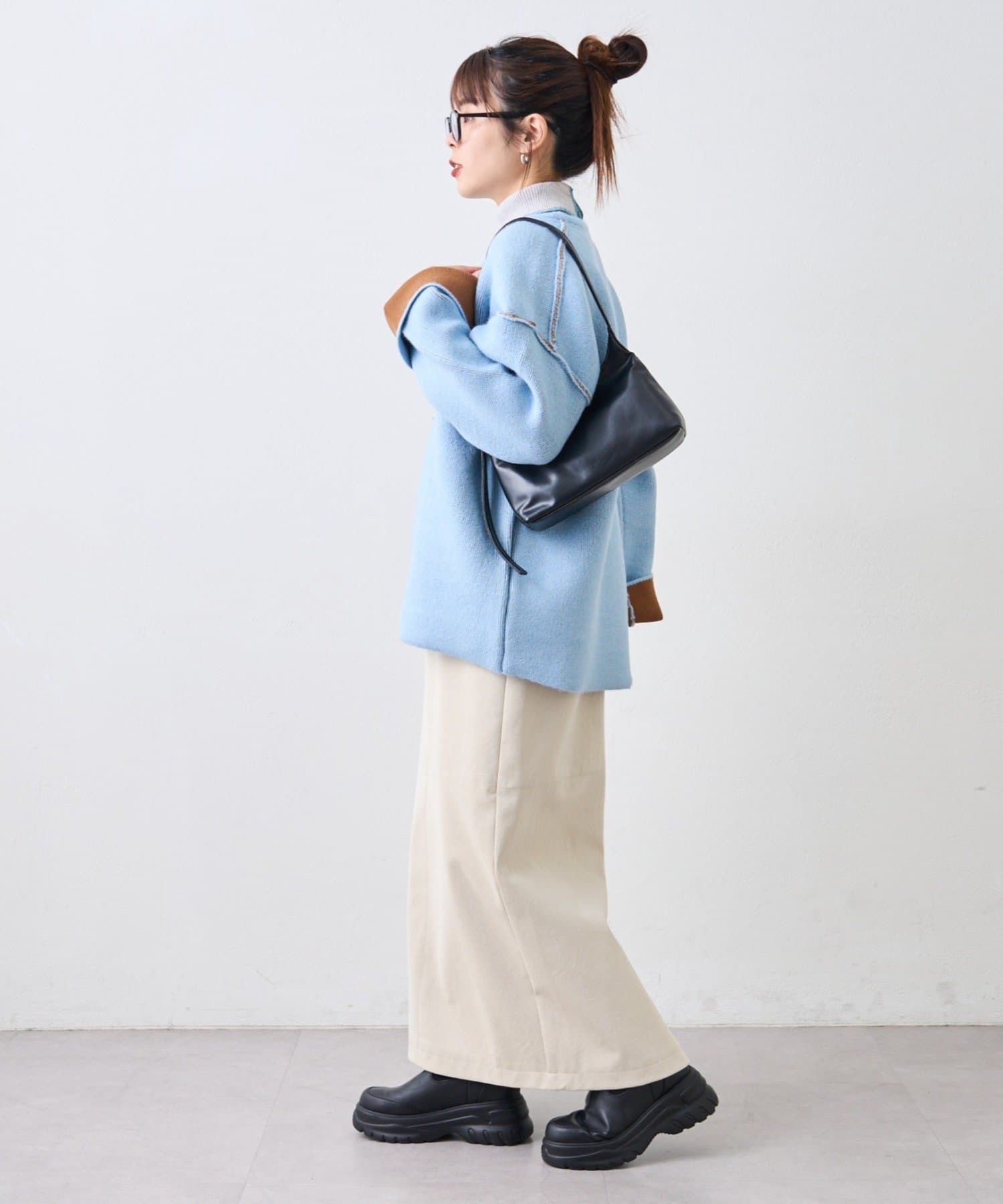 インナーはロンTやスウェット、またはぴったりめのタートルネックでレイヤードもお洒落です。