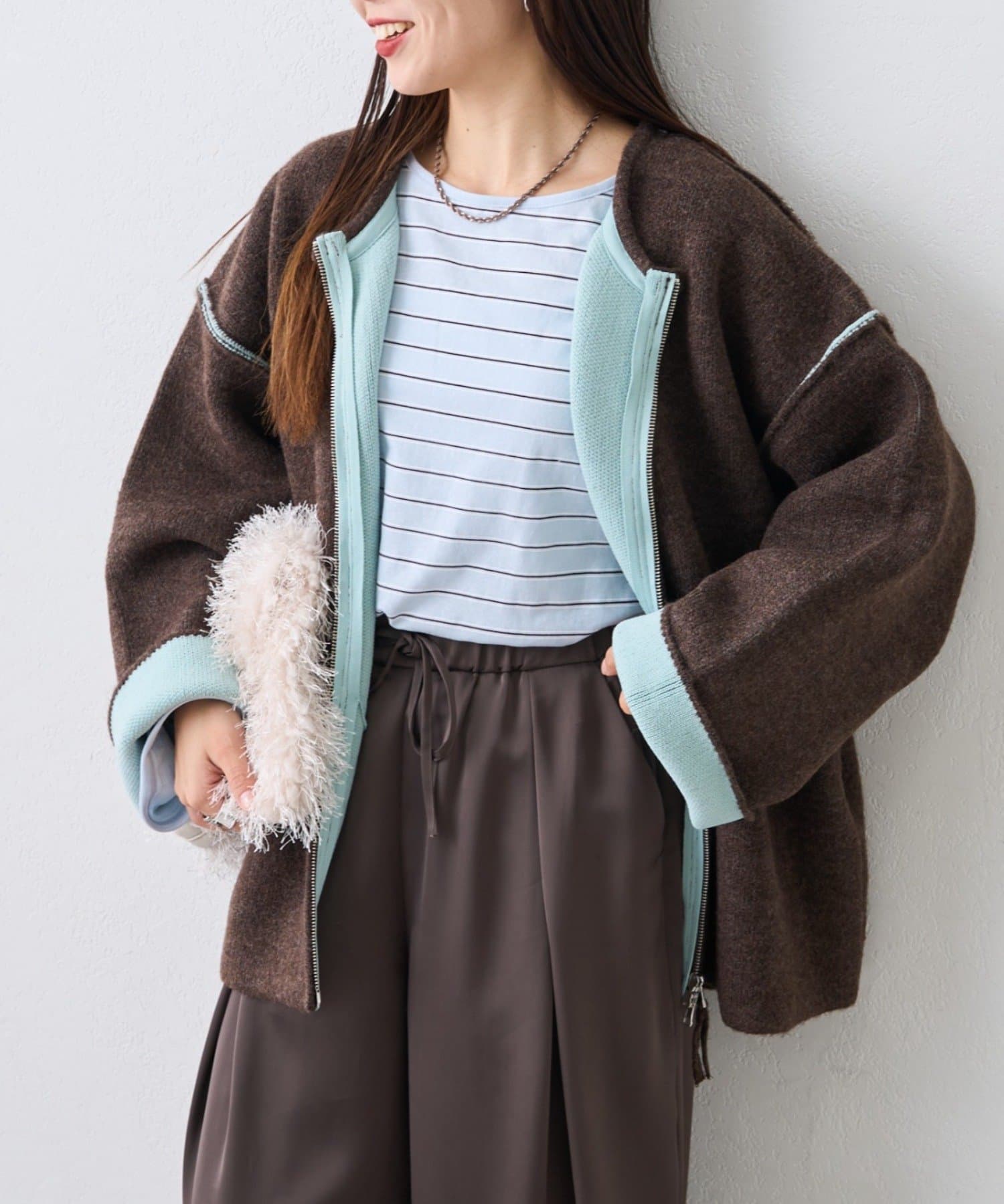 肌触りの良いふんわり柔らかな着心地で、アウター感覚でもカーディガン感覚でも着られる万能な一枚!