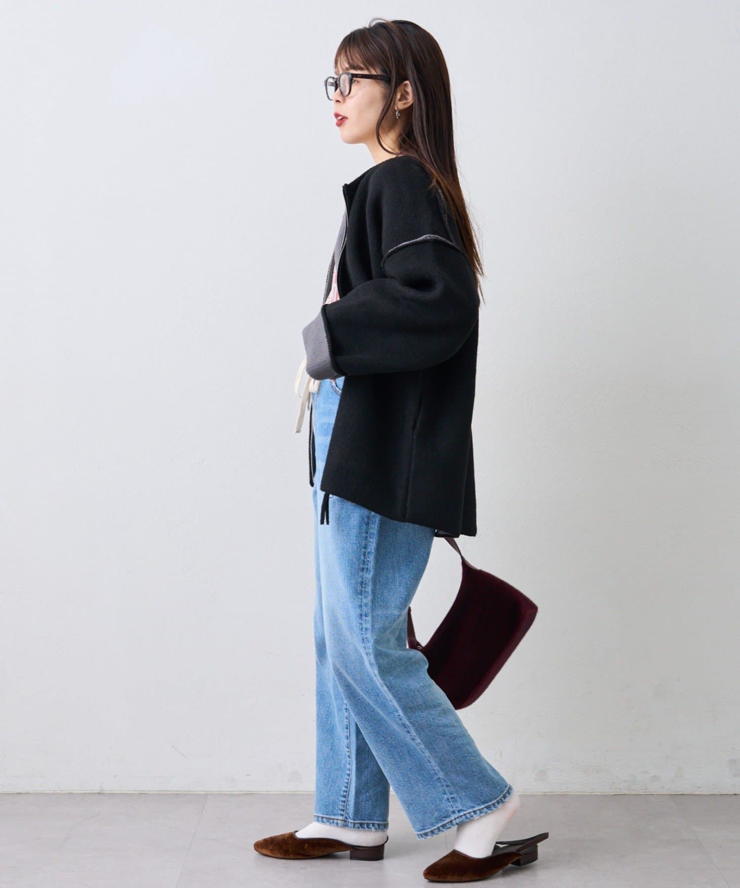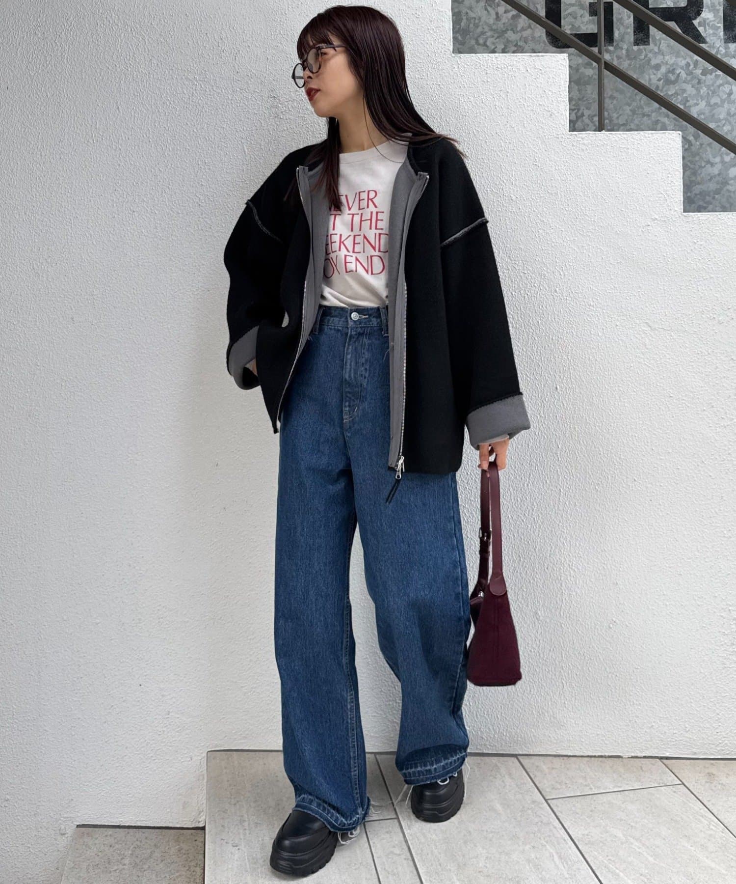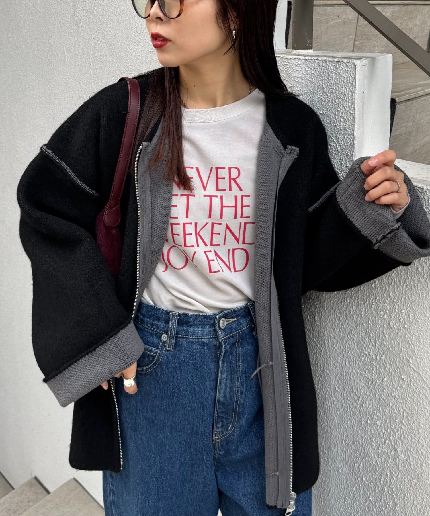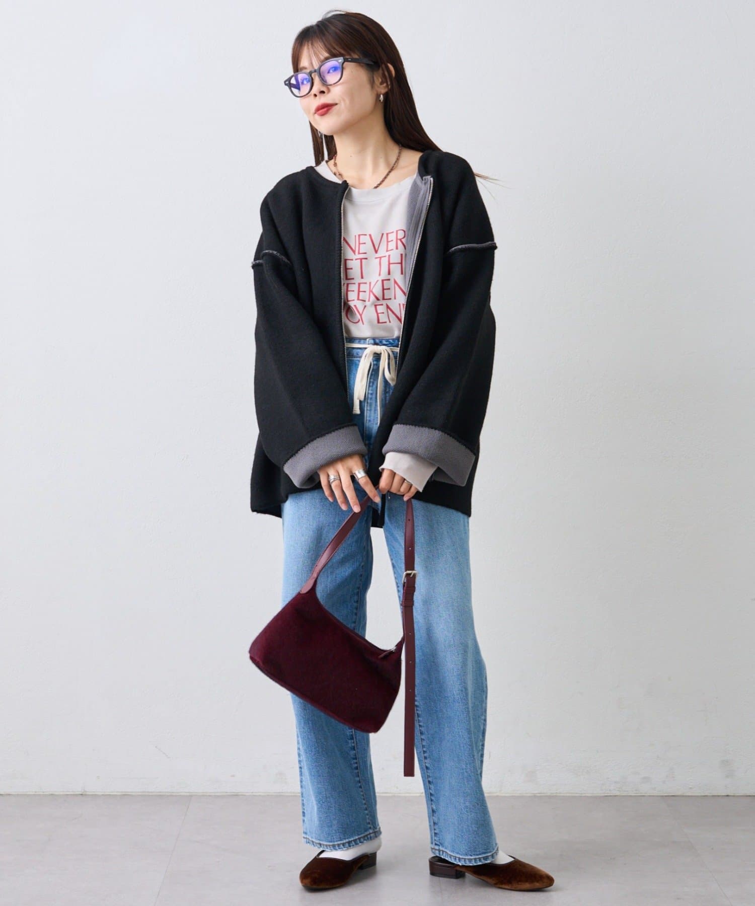 ジップを閉めてコンパクトにまとめればきれいめカジュアルに、