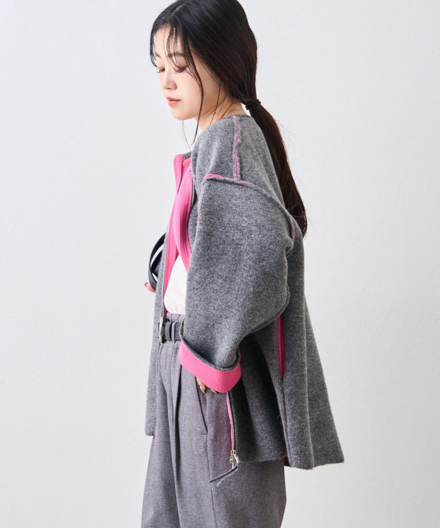 両サイドにポケットも付いており、実用性も兼ね備えたニットジャケット!