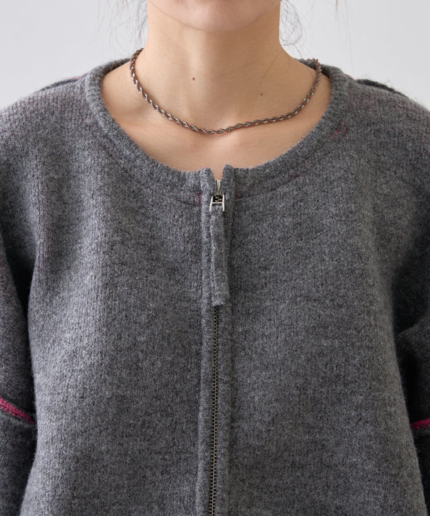 ダブルジップ配色ヤクライクニットジャケット