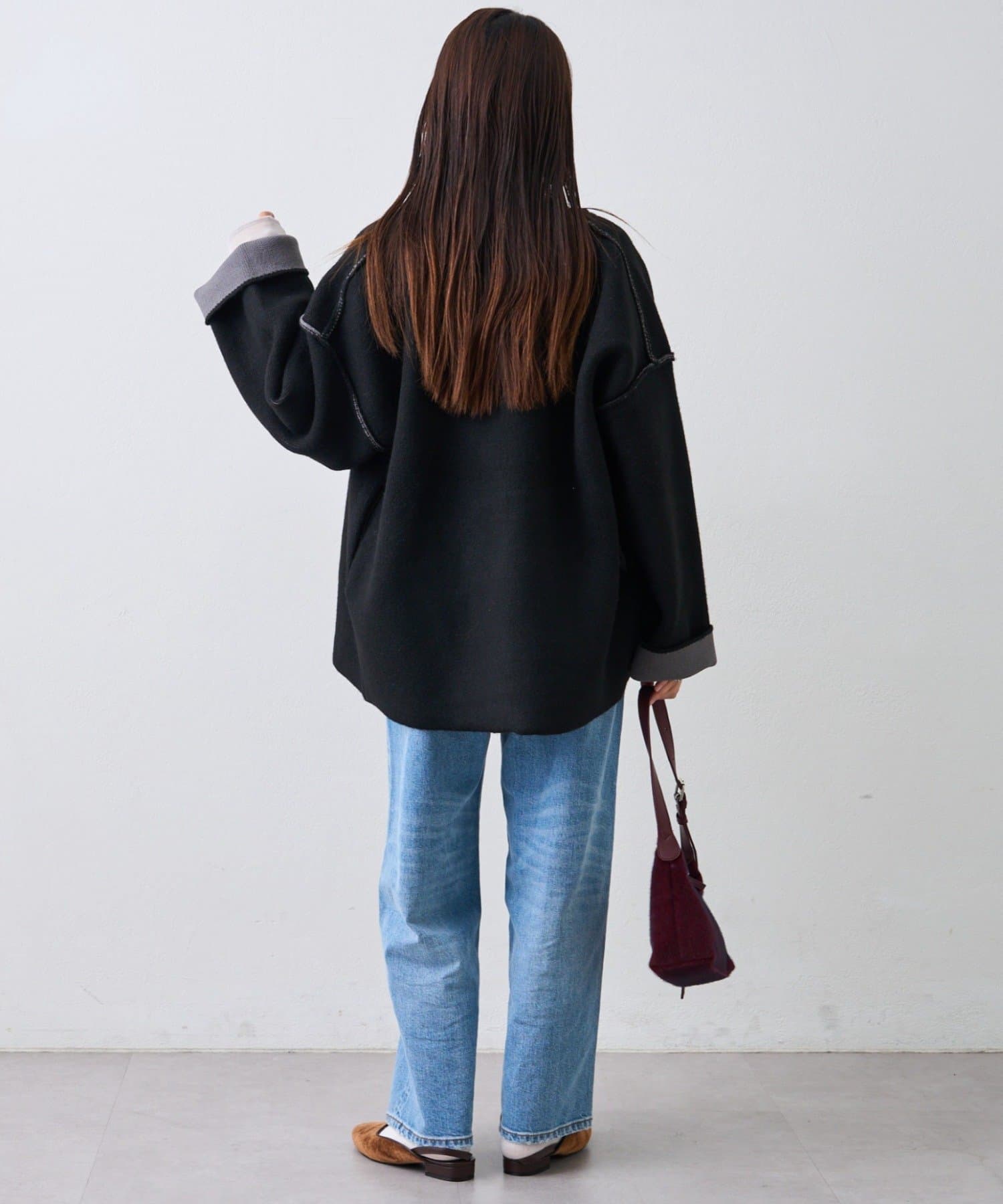 肩を落としたゆるめのシルエットと、おしりにかかるほどの絶妙な丈感で、