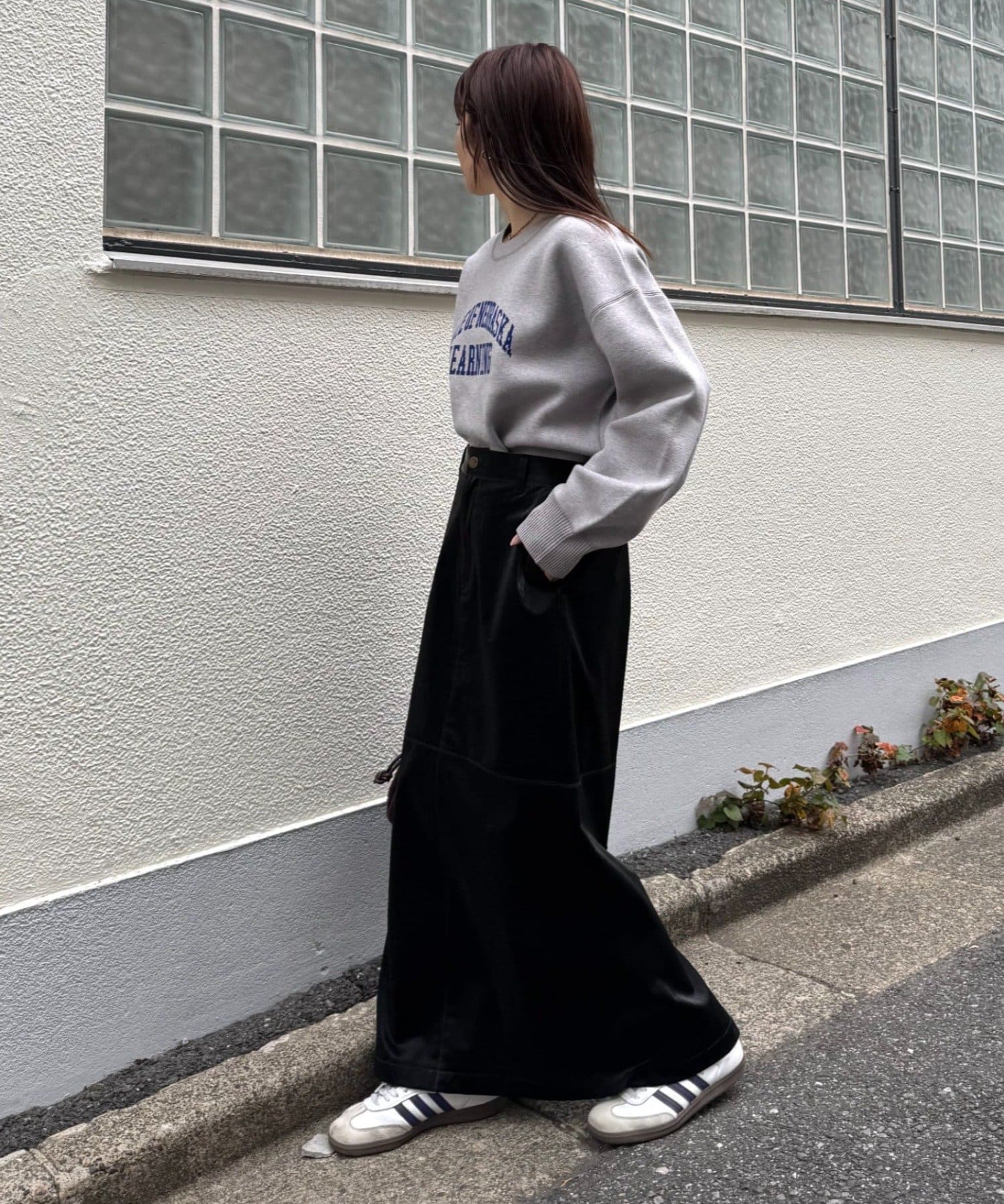 スウェットのデザインを落とし込み程よいカジュアルさをMIX!